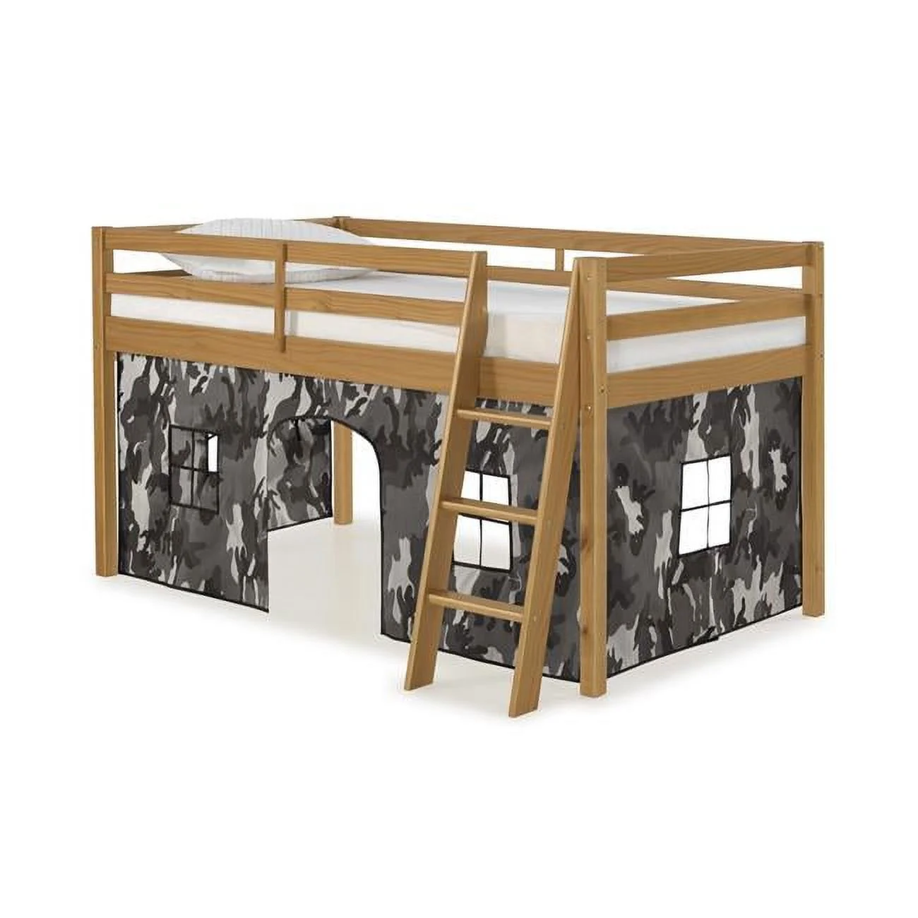 Roxy Twin Wood Junior Loft Bed with Cinnamon with Gray Camo Bottom Tent
