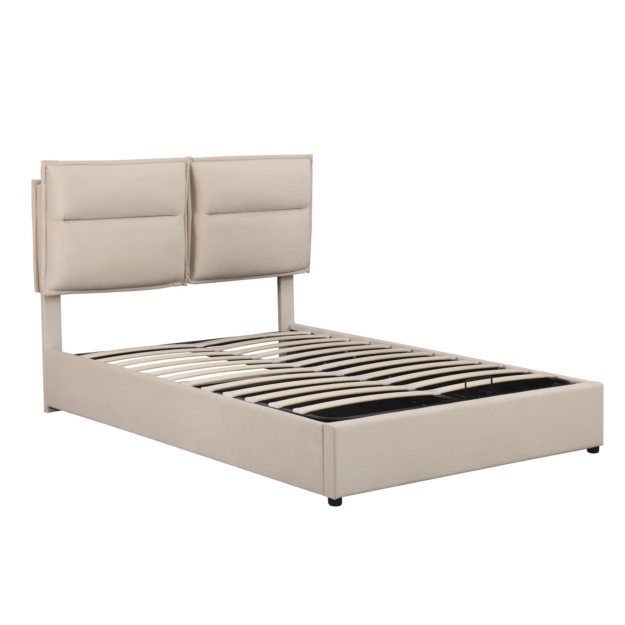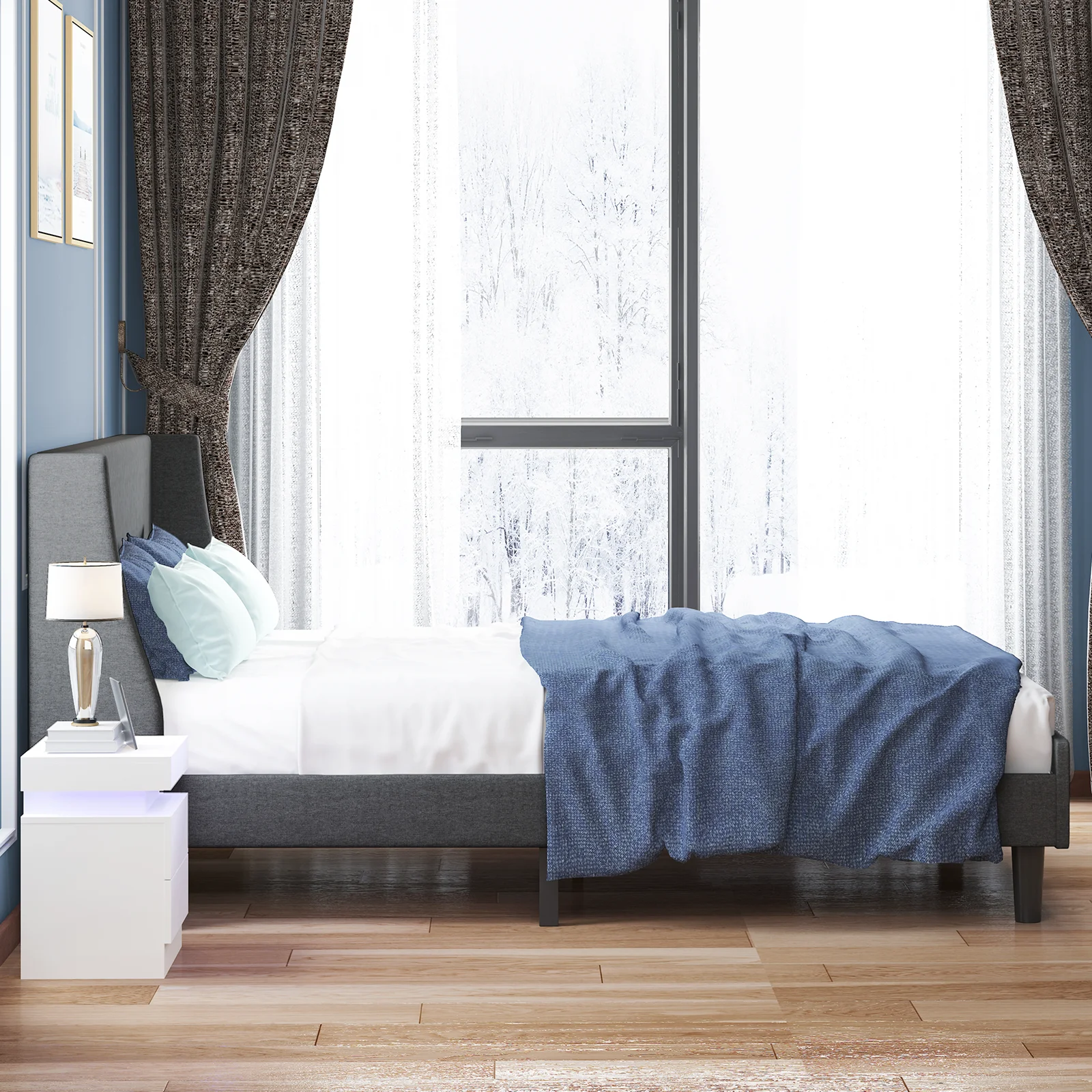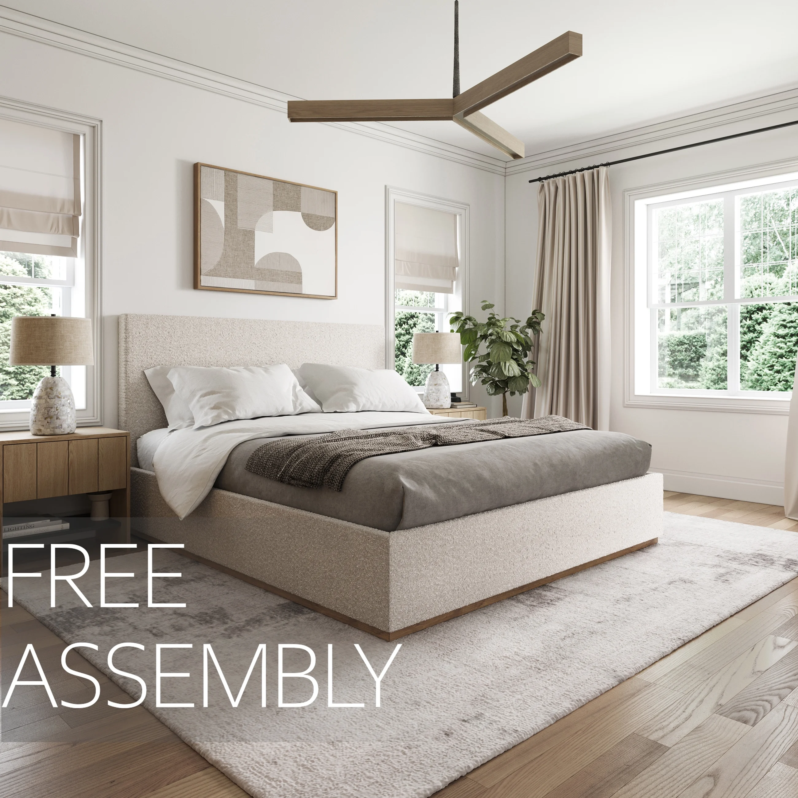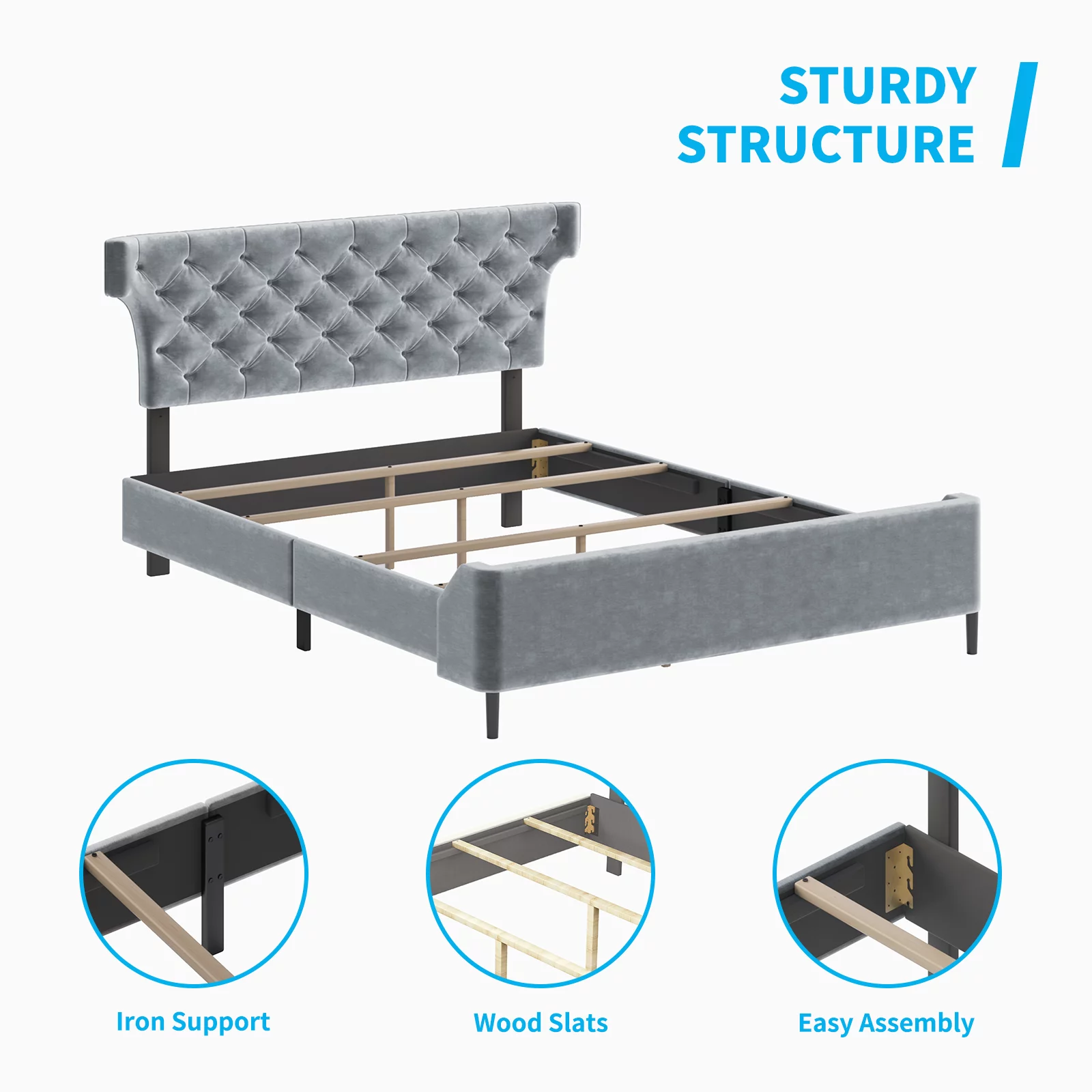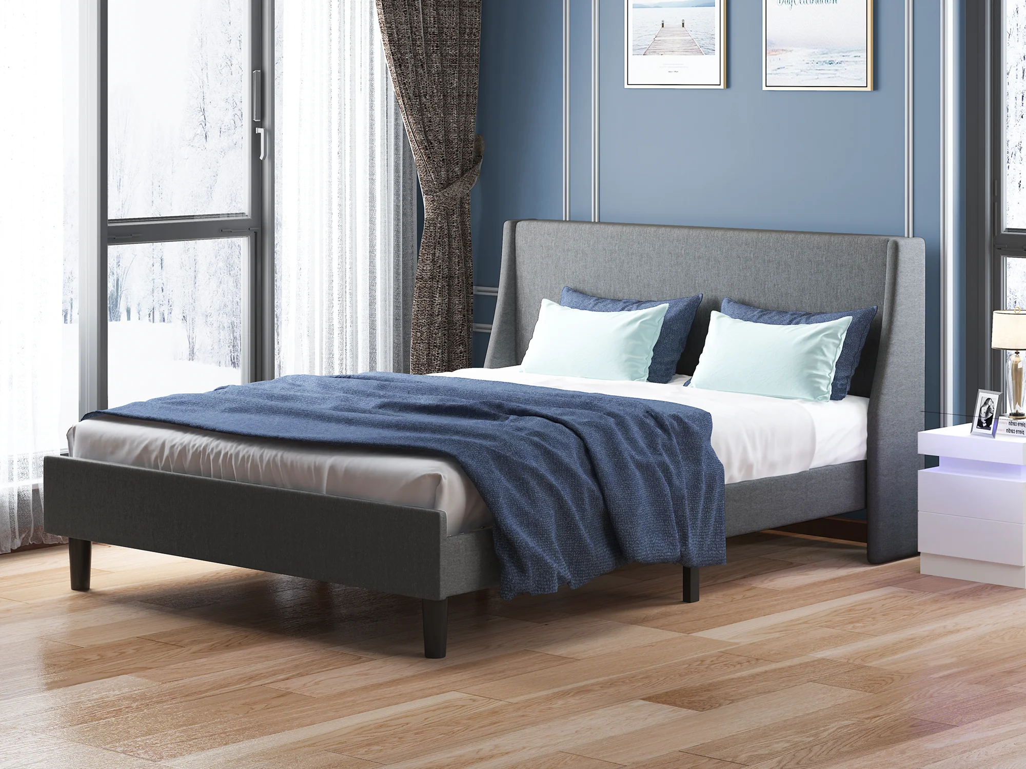 Kallabe King Upholstered Modern Wingback Platform Bed Frame with Headboard, Beige