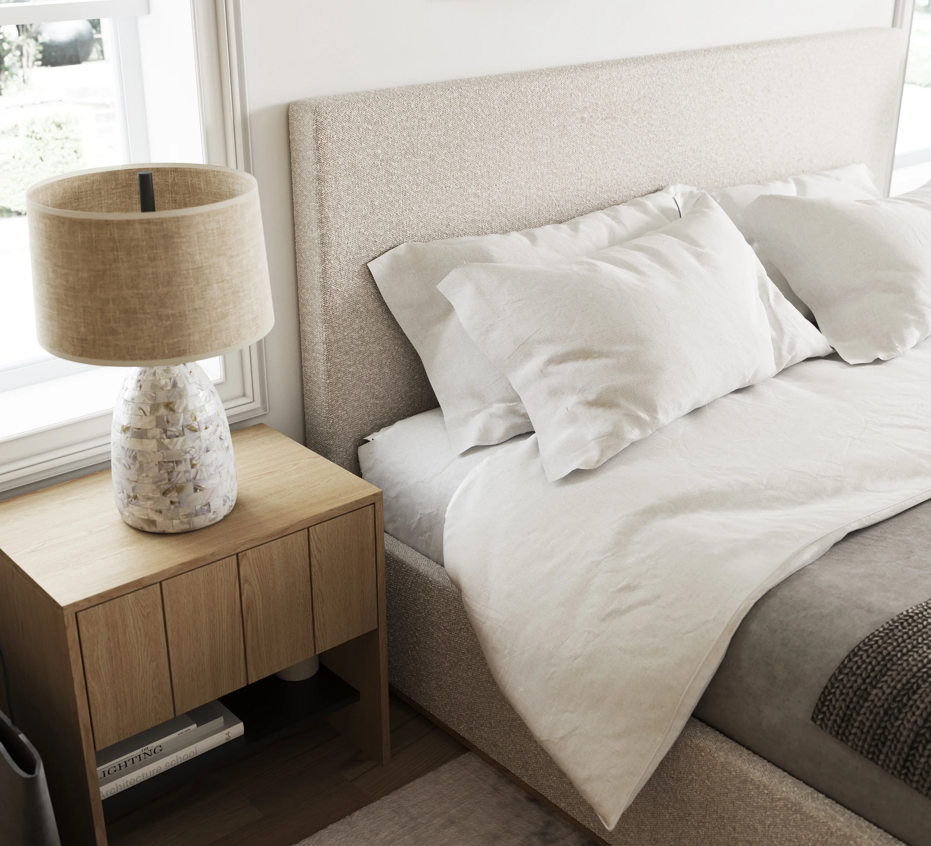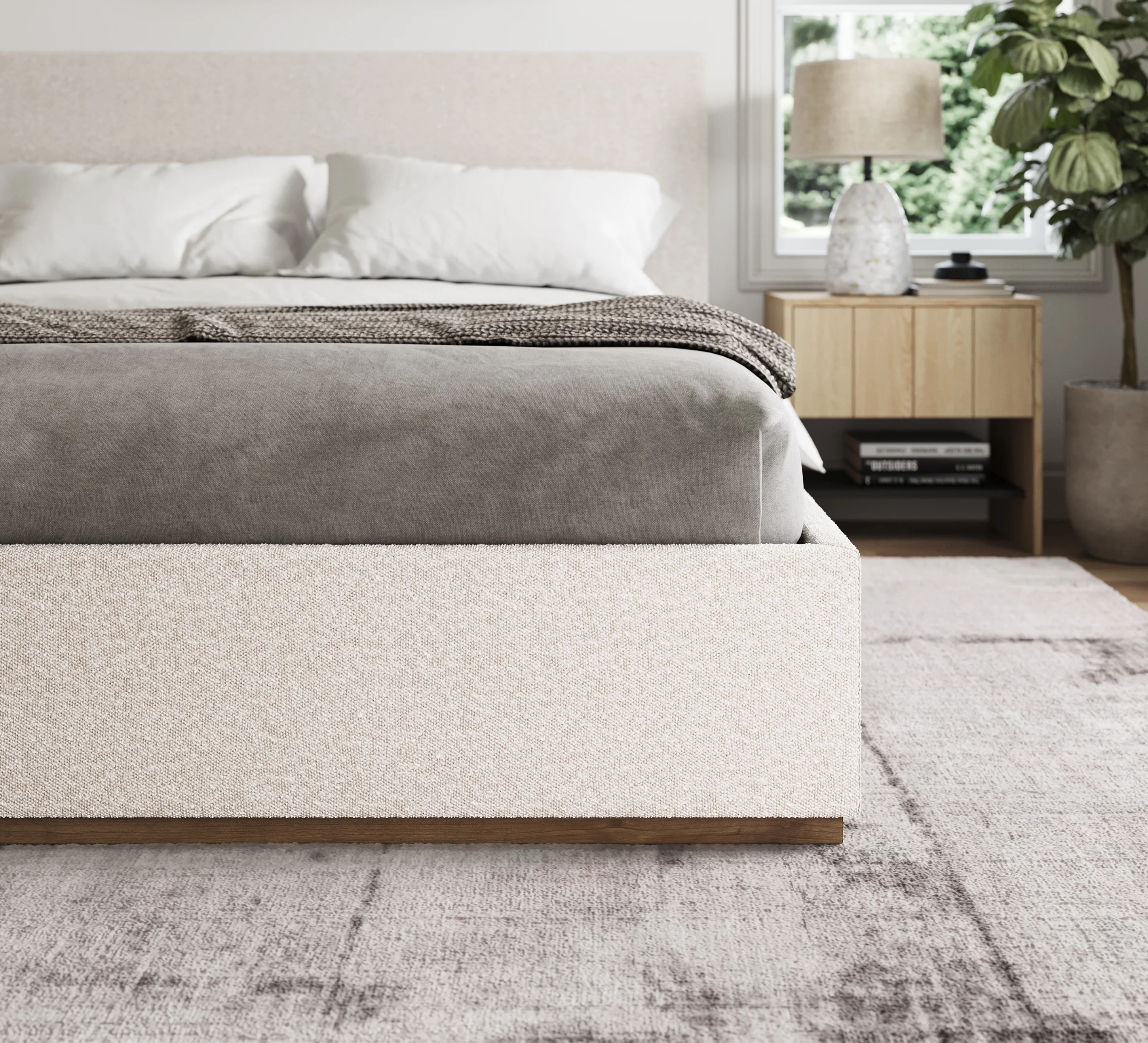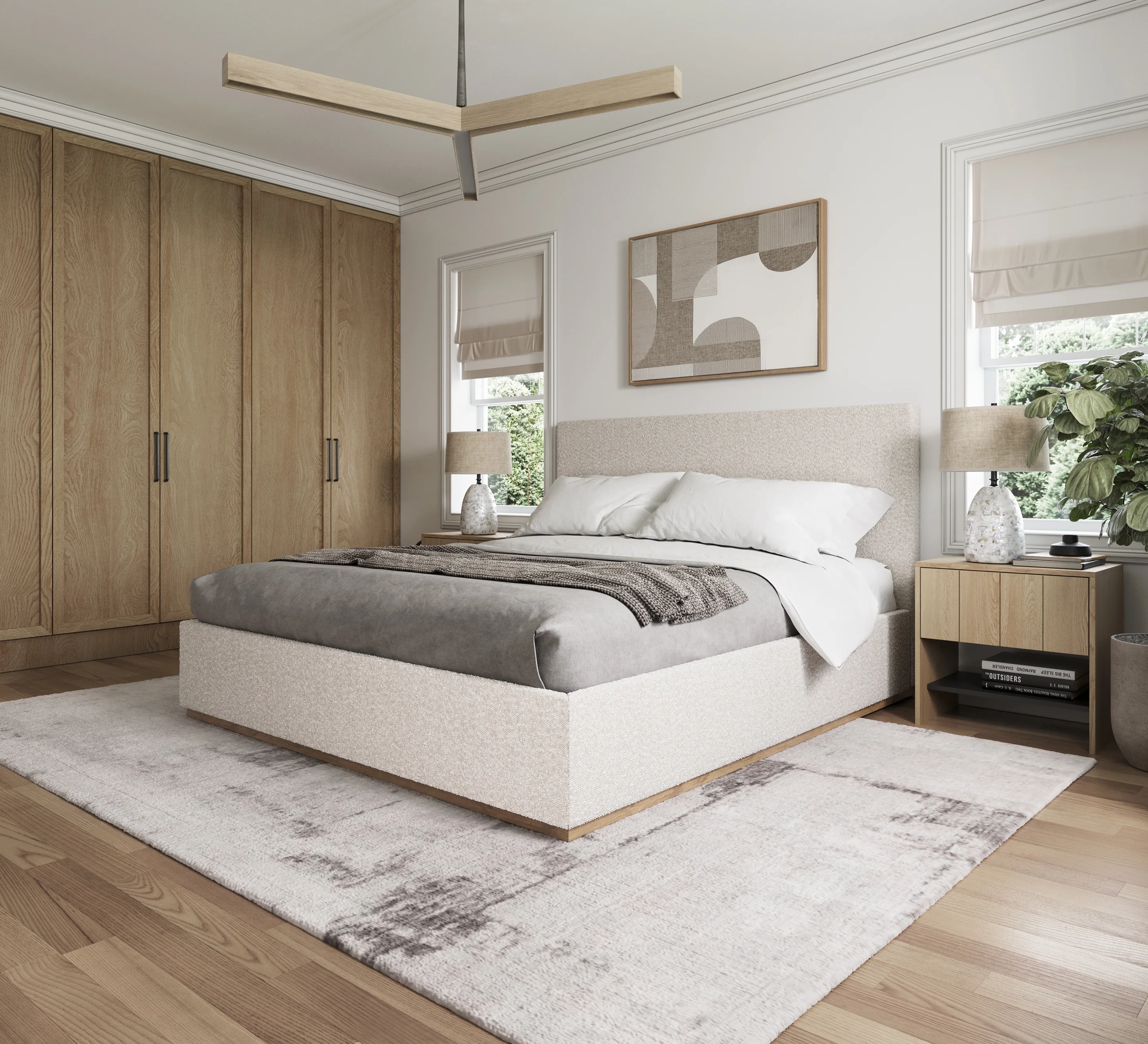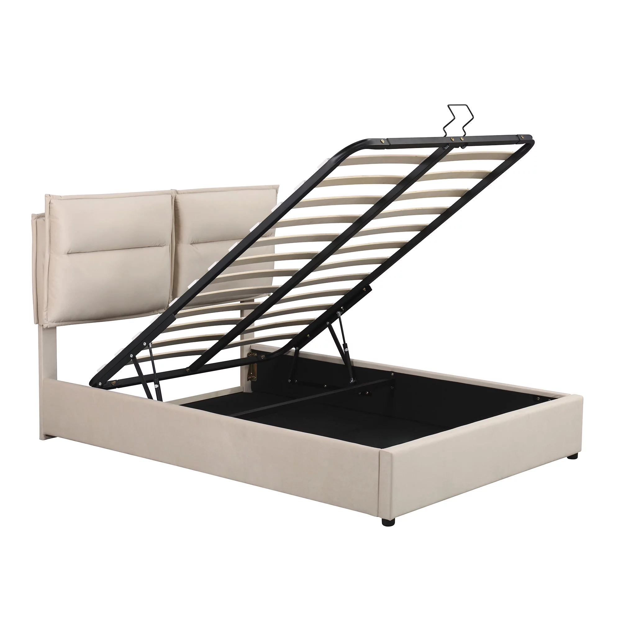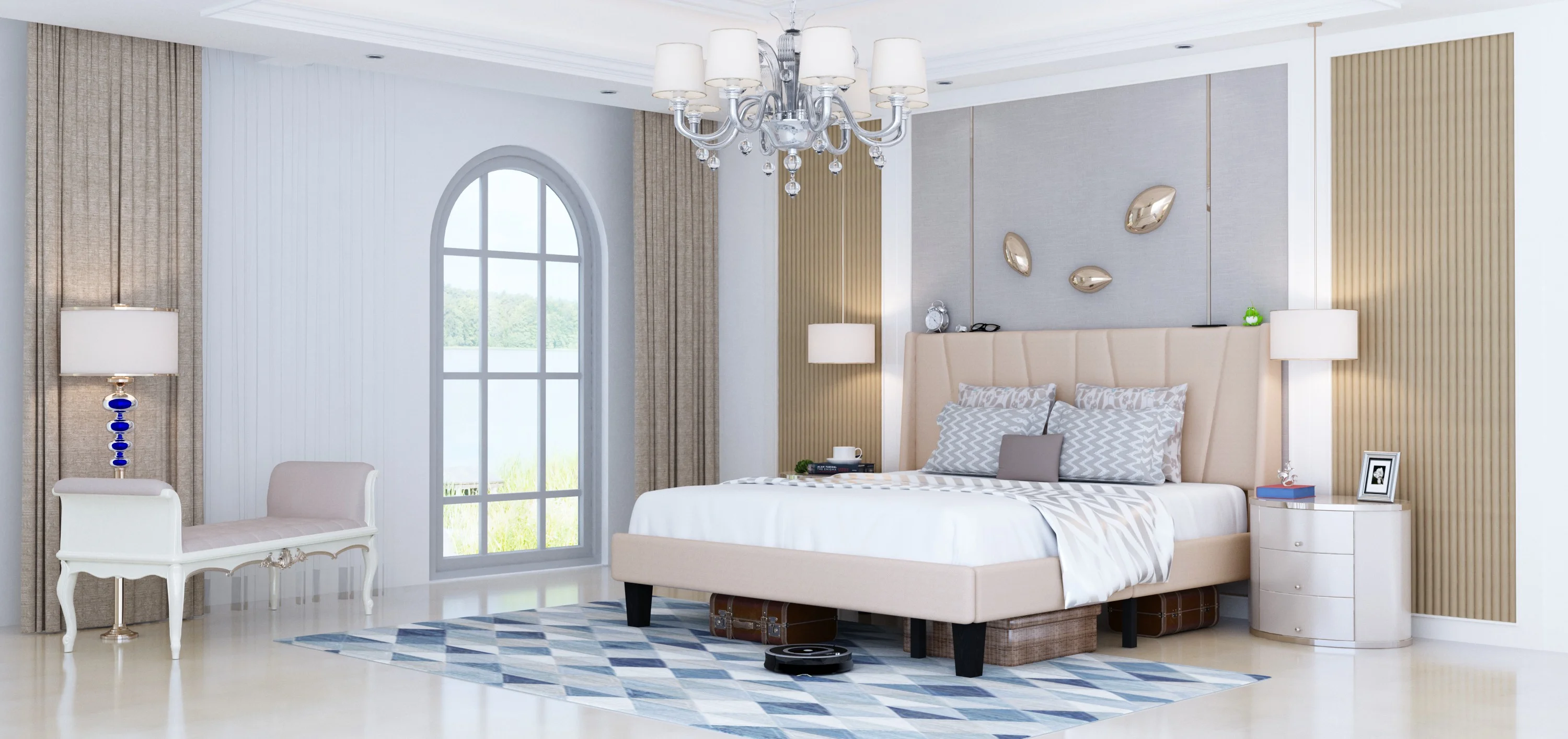Kallabe King Upholstered Modern Wingback Platform Bed Frame with Headboard, Beige