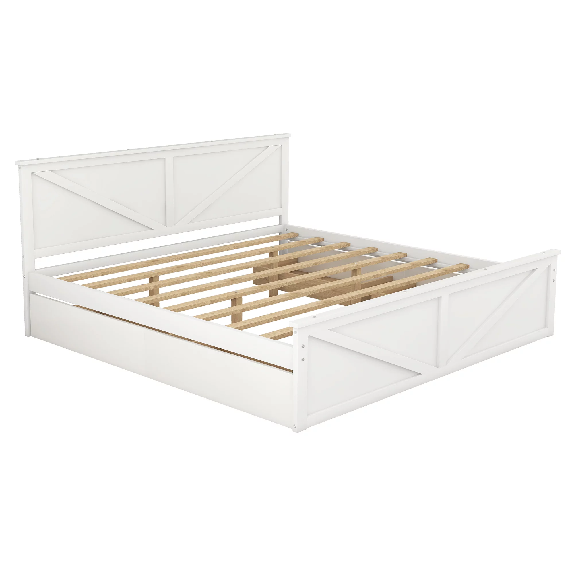 Sea Wood King Size Bed with Woven Cane Design, Open Panel & 4 Slats, Brown