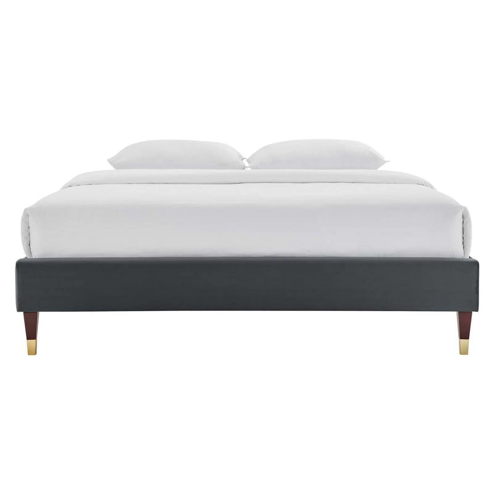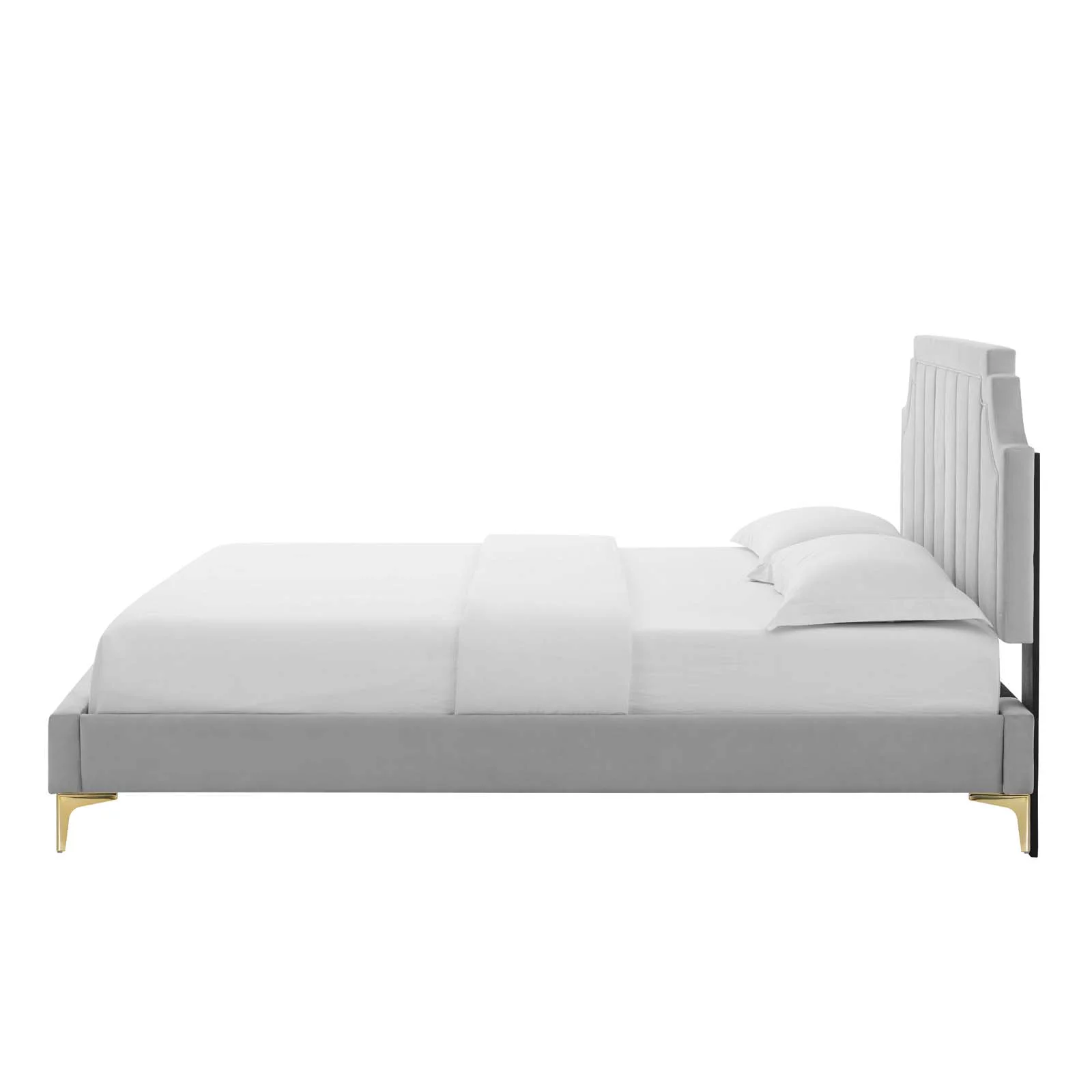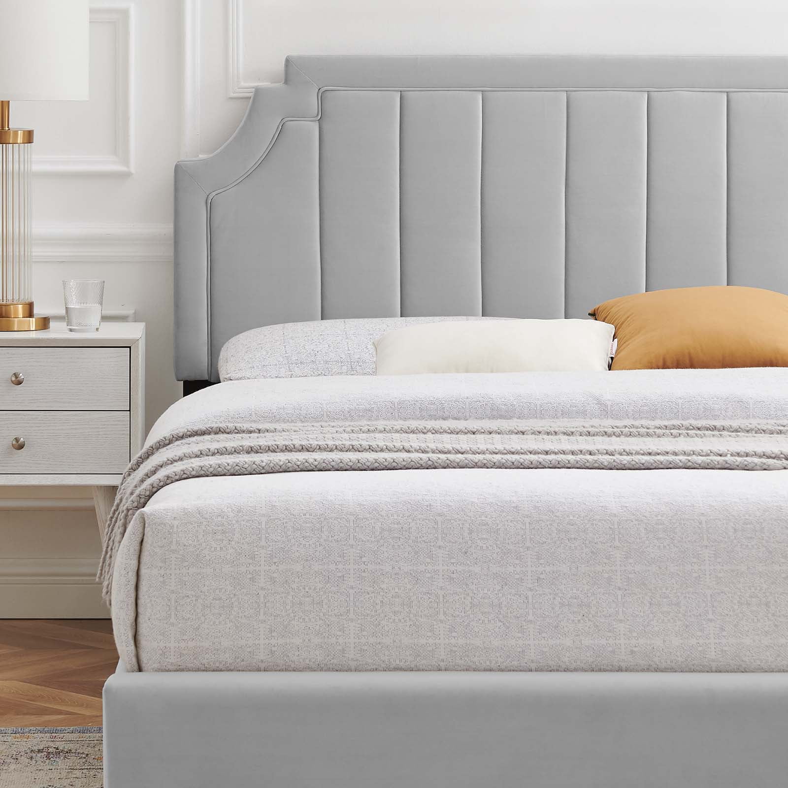 Platform Bed Frame, King Size, Velvet, Light Grey Gray, Modern Contemporary Urban Design, Bedroom Master Guest Suite