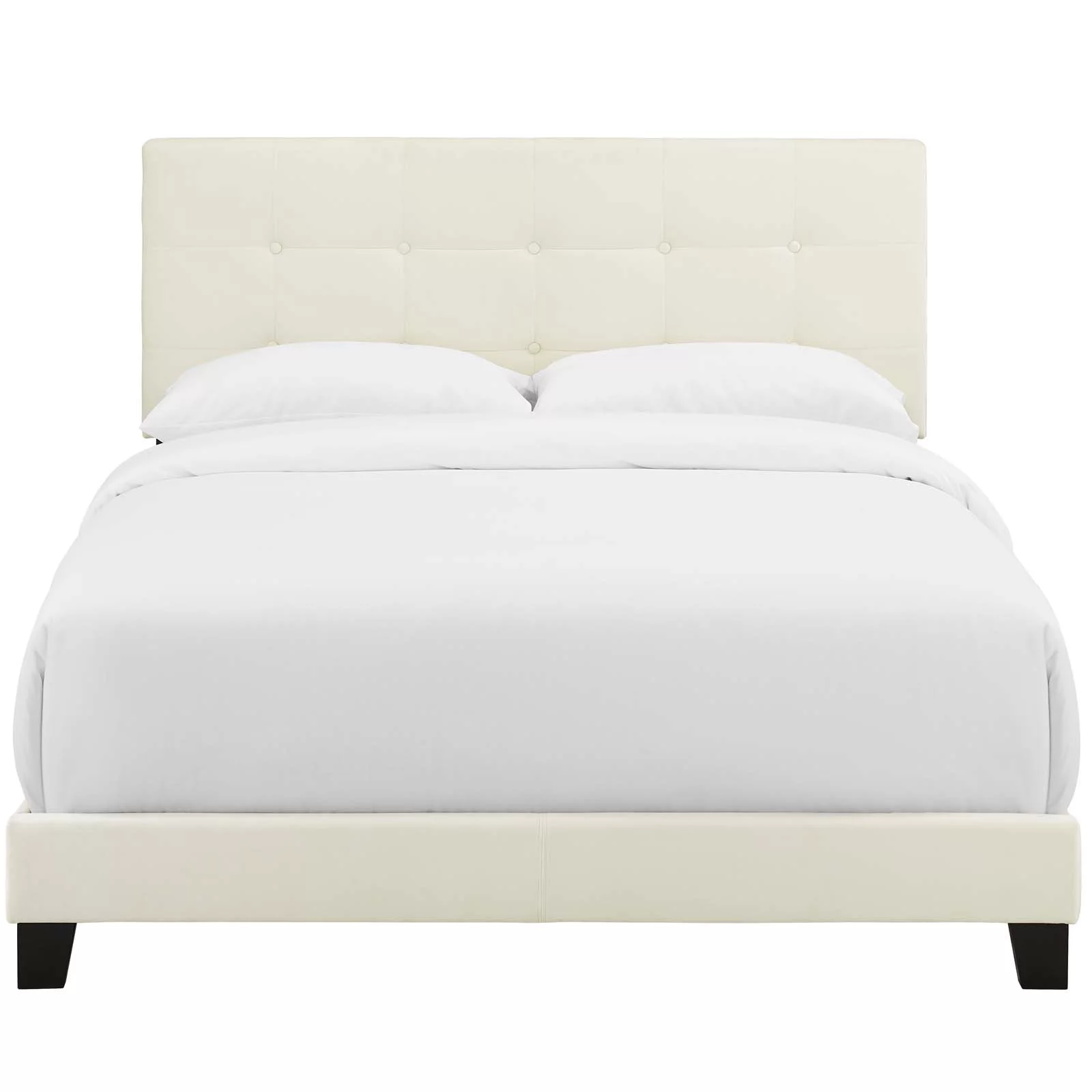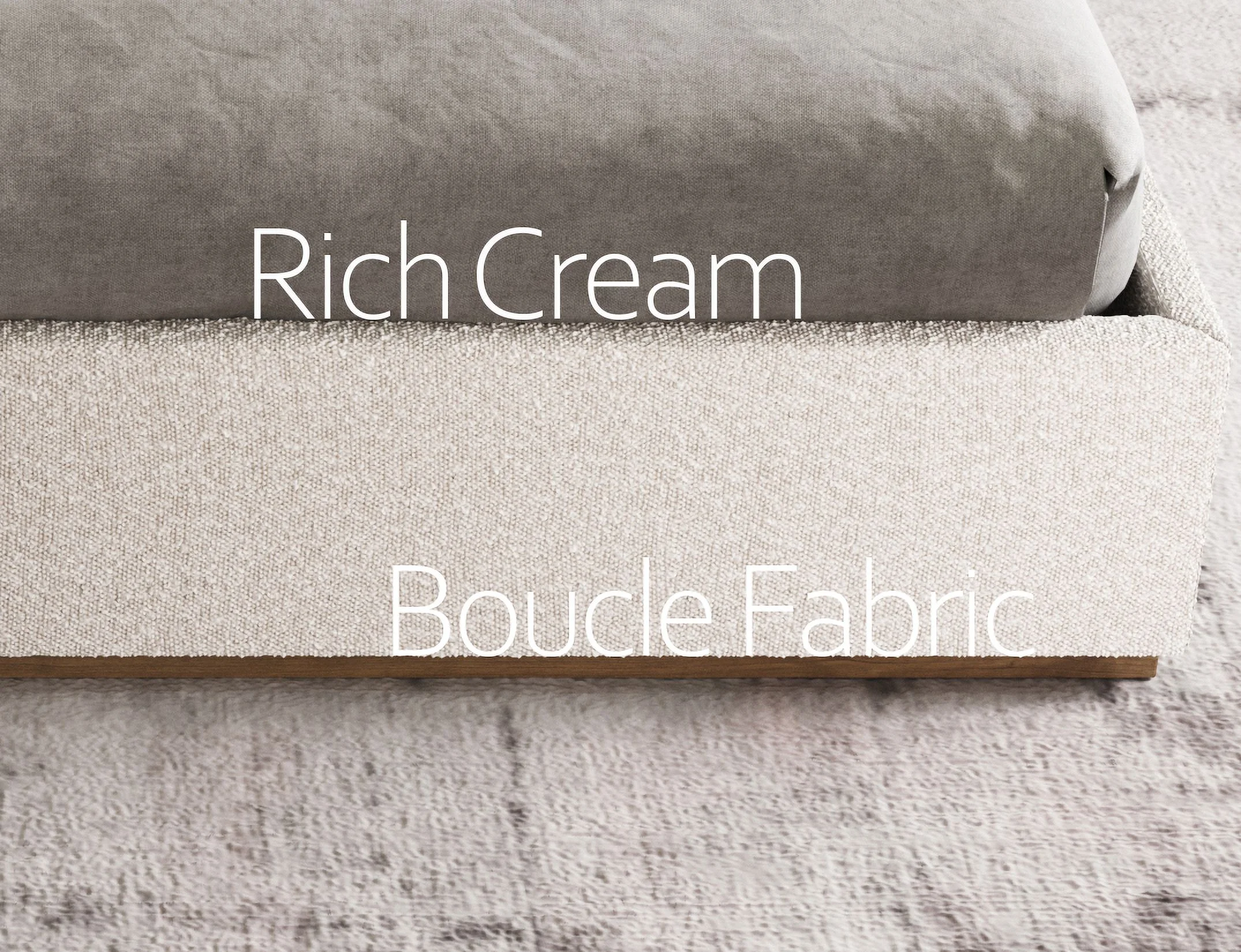 Modern Contemporary Urban Design Bedroom King Size Bed Frame, Velvet Fabric, Ivory White, Box Spring Required