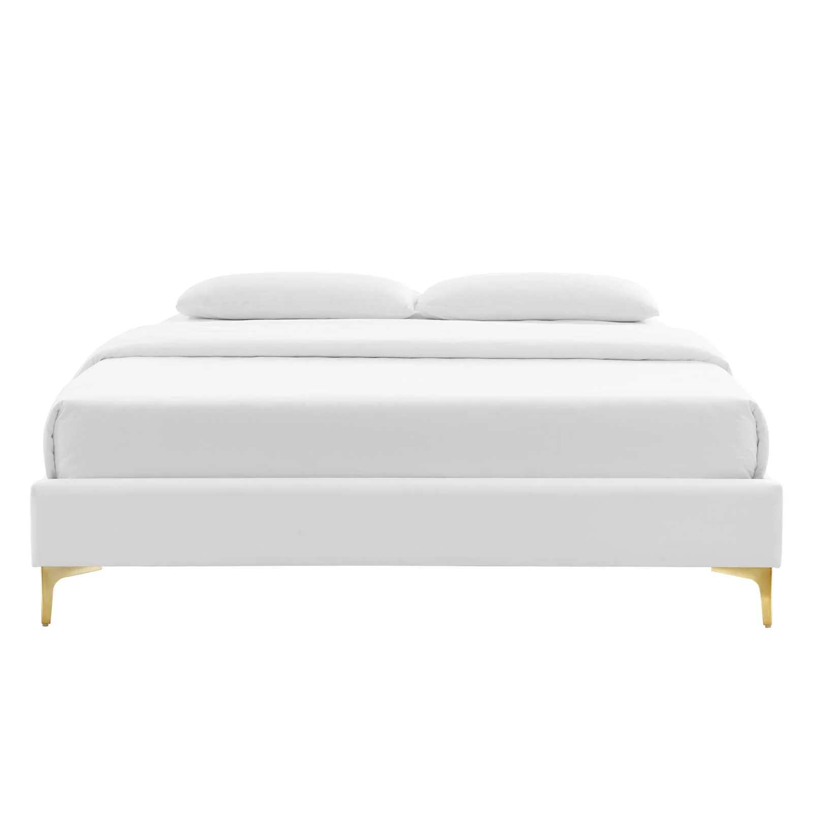 Platform Bed Frame, King Size, Velvet, White, Modern Contemporary Urban Design, Bedroom Master Guest Suite