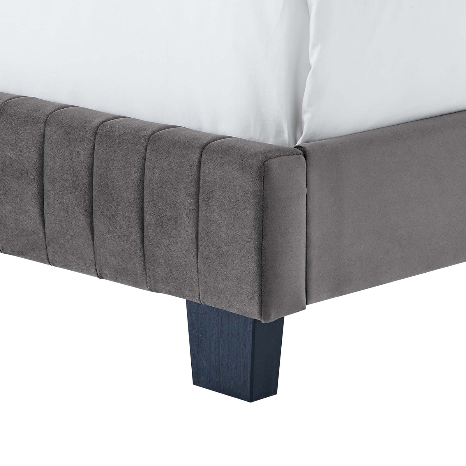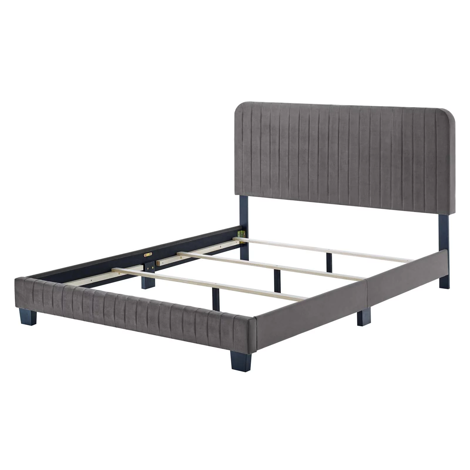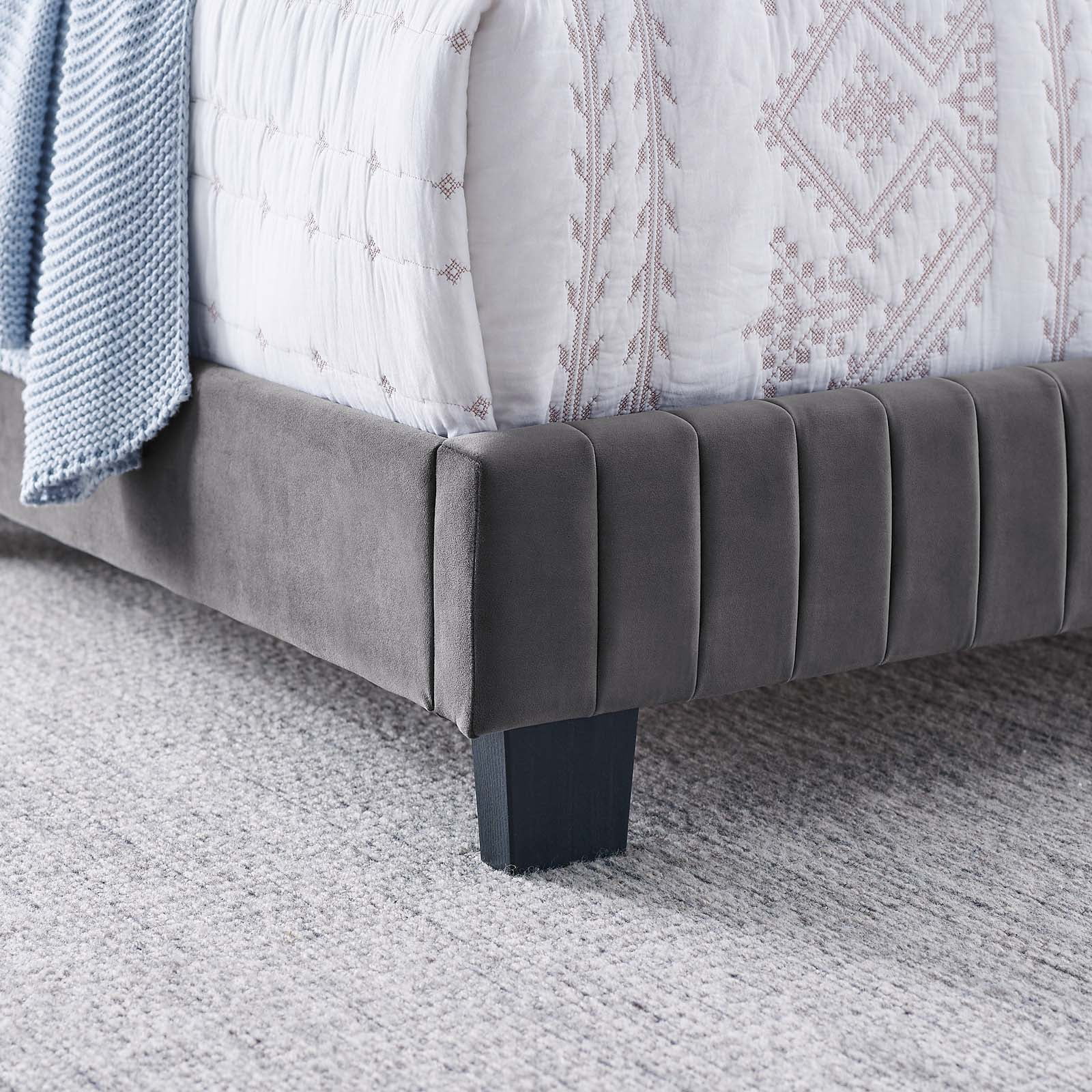 Pemberly Row Modern Performance Velvet King Platform Bed Frame in Charcoal