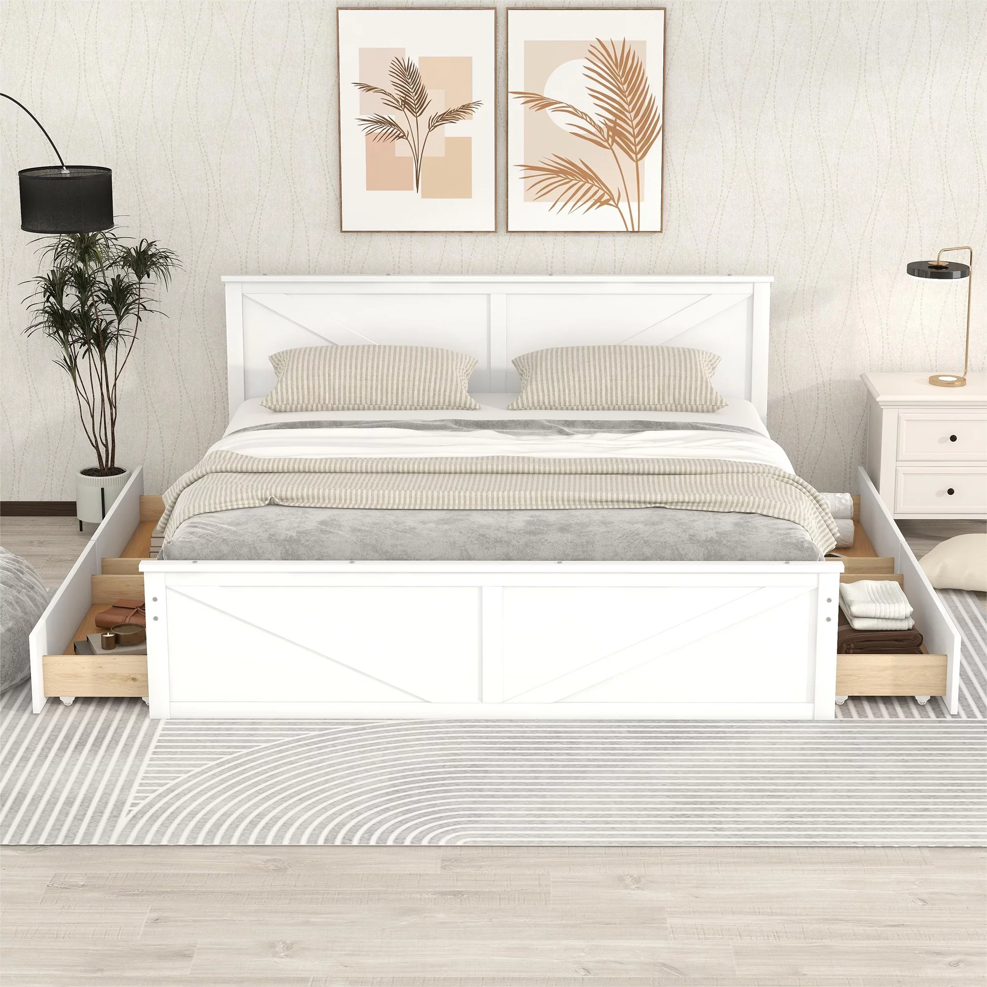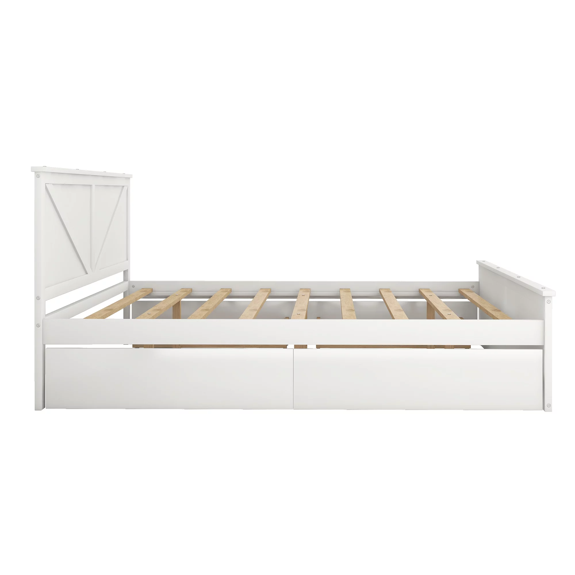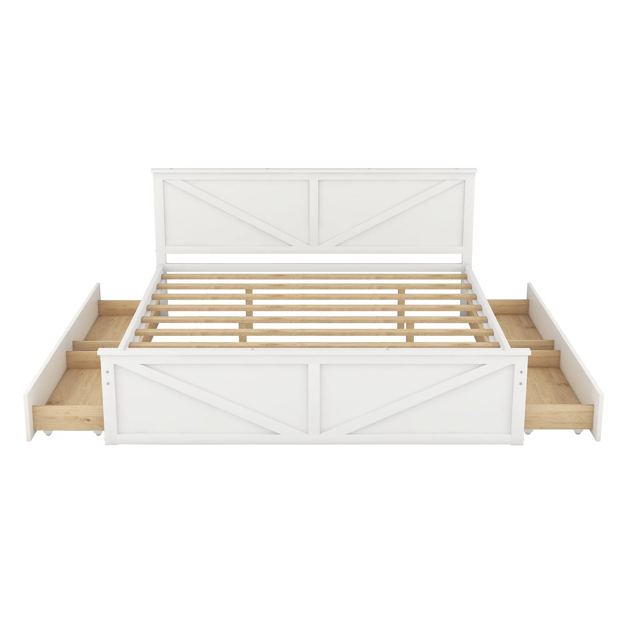 Sea Wood Queen Size Bed with Woven Cane Design, Open Panel & 4 Slats, Brown