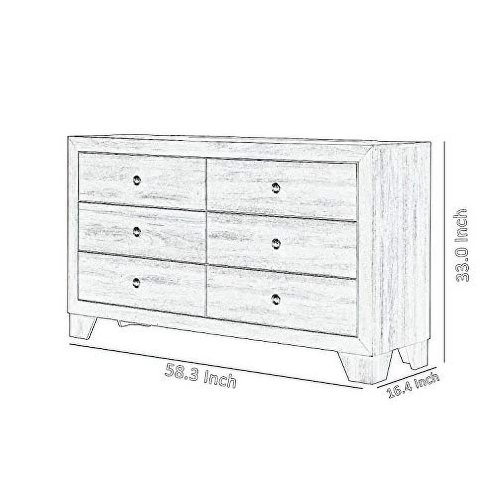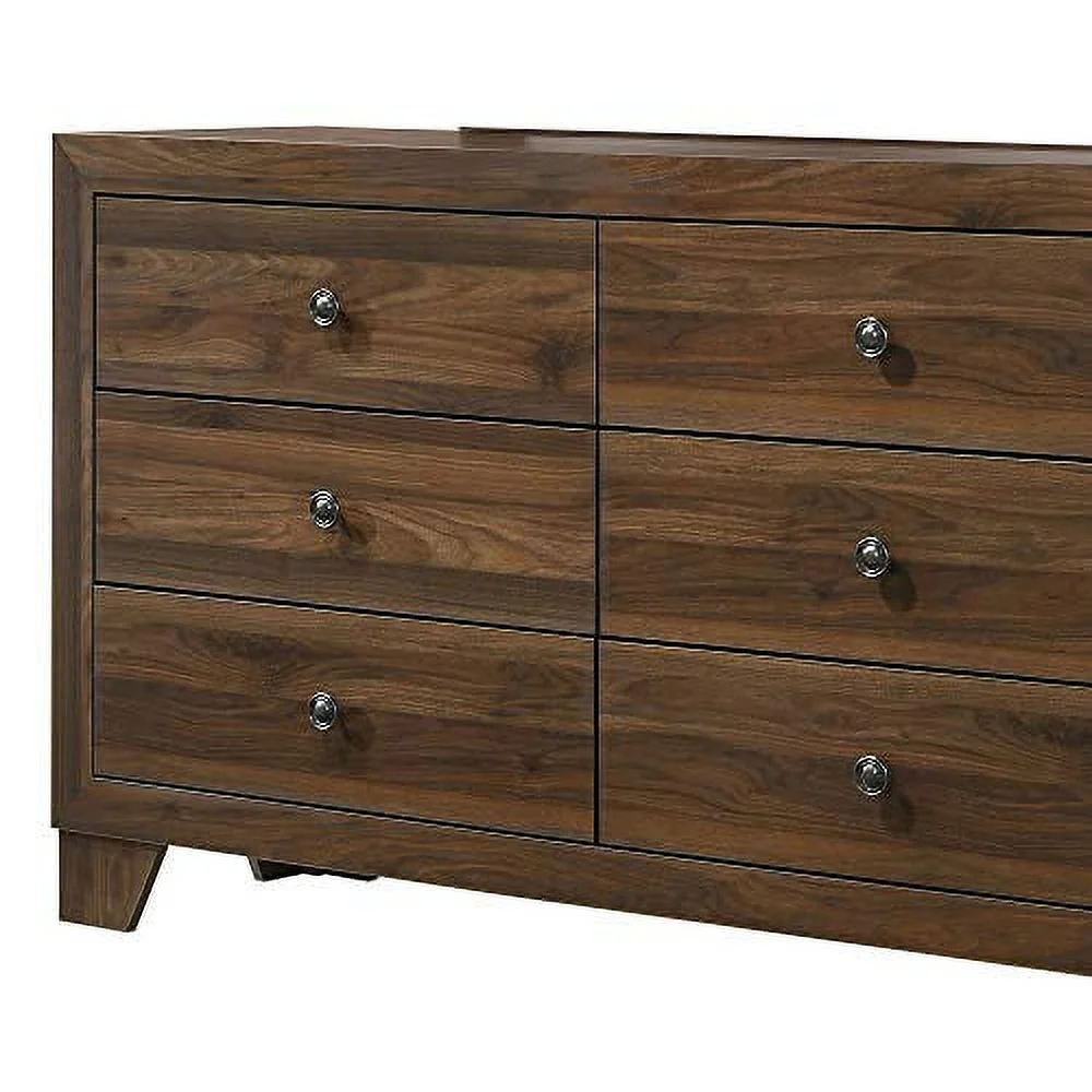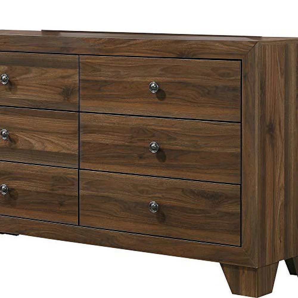 Benzara 6 Drawer Wooden Dresser with Round Knobs and Tapered Legs, Brown