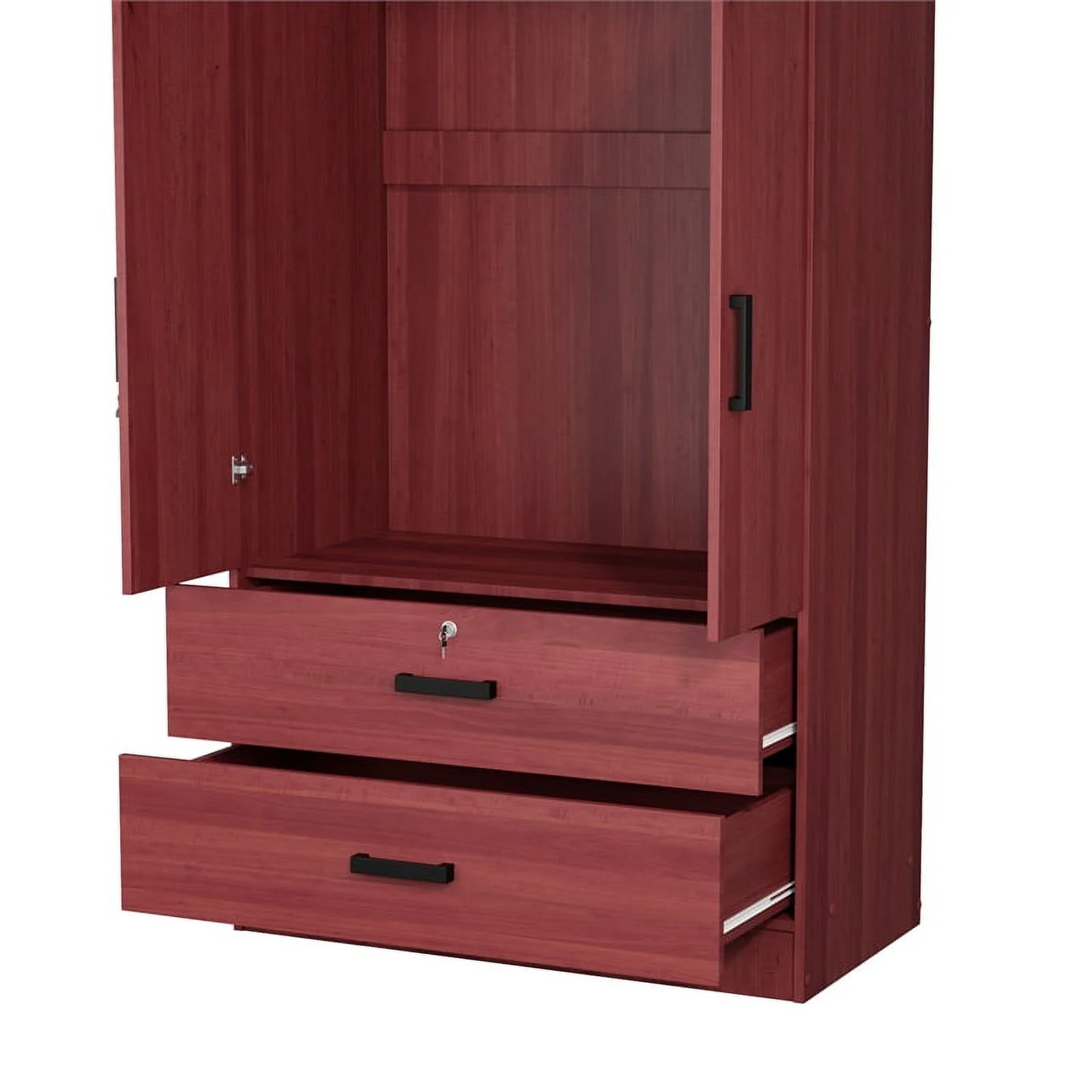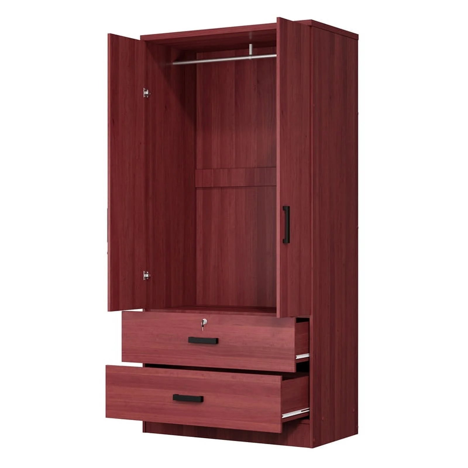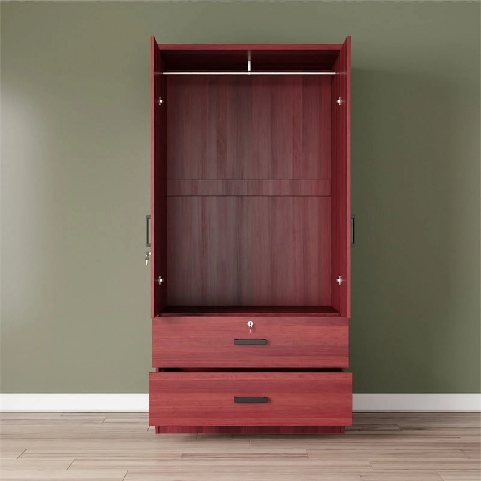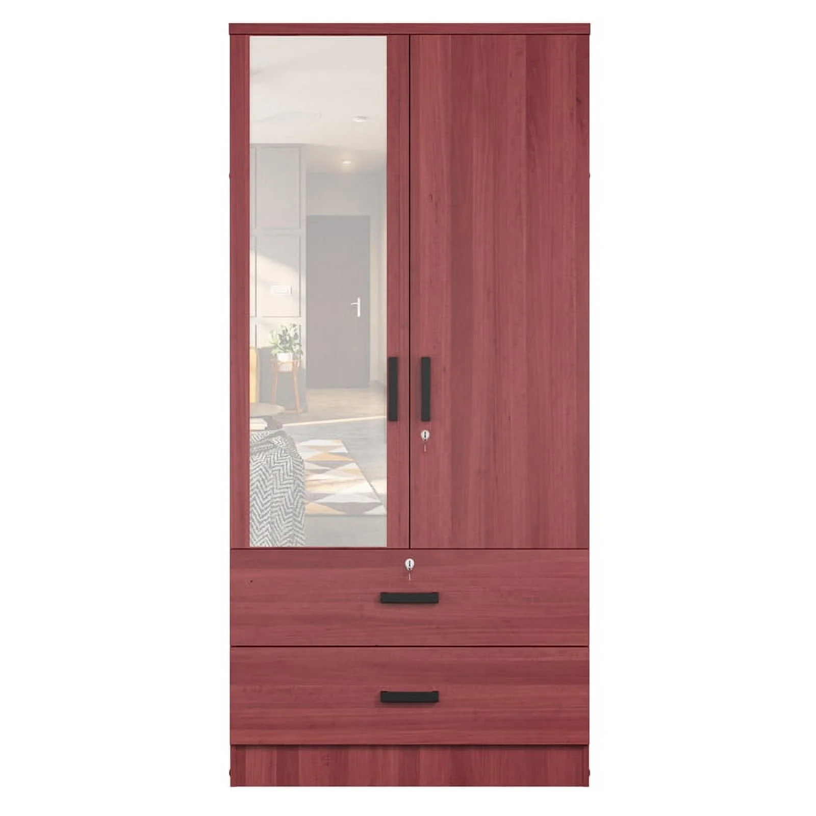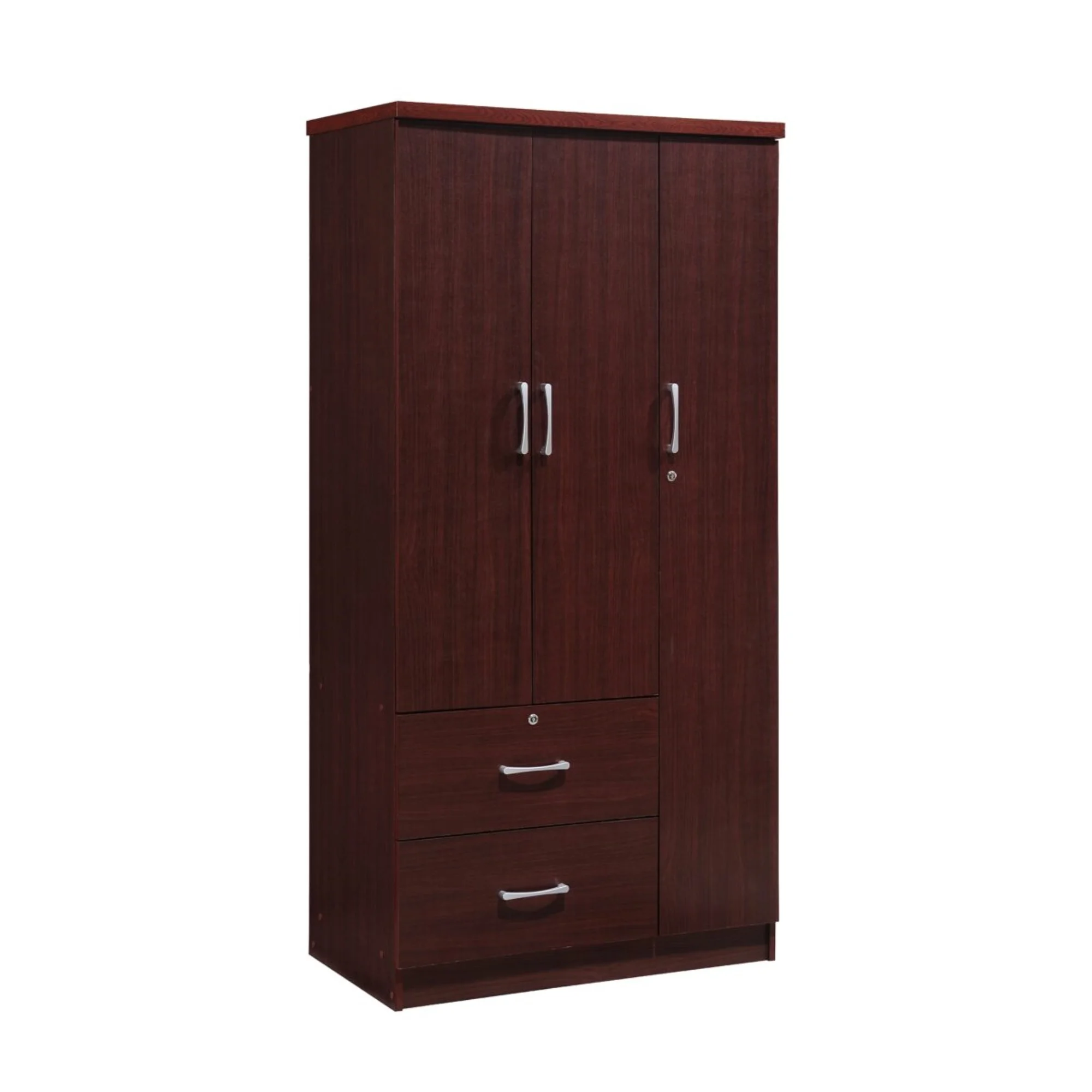 Hodedah 2 Door Armoire with 2 Drawers Clothing Rod and Mirror in Mahogany Wood