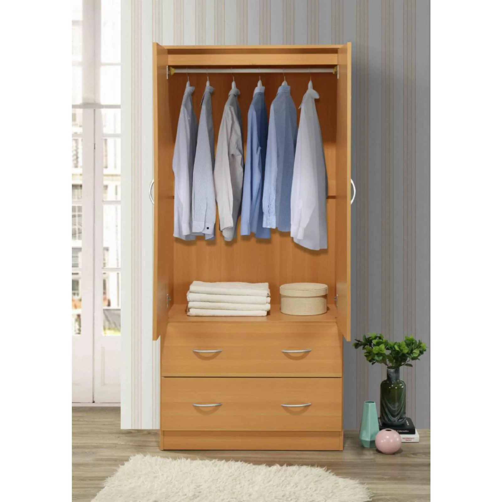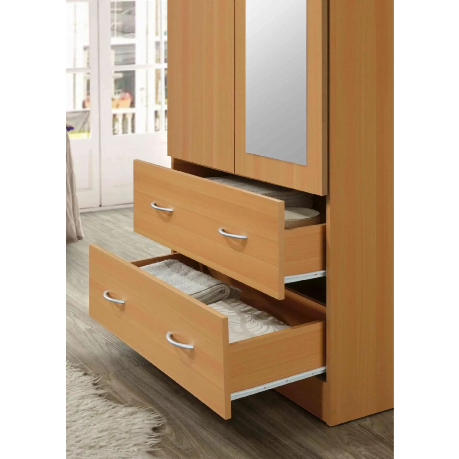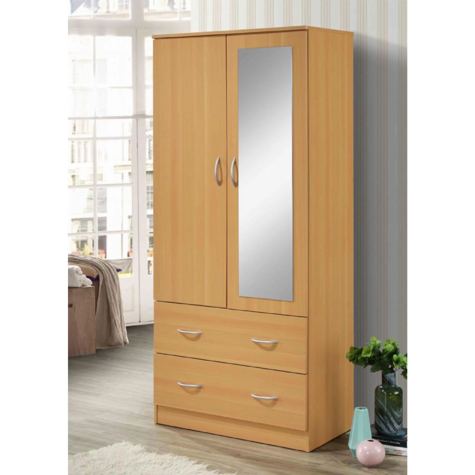 Better Home Products Grace Armoire Wardrobe with Mirror & Drawers Beech (Maple)
