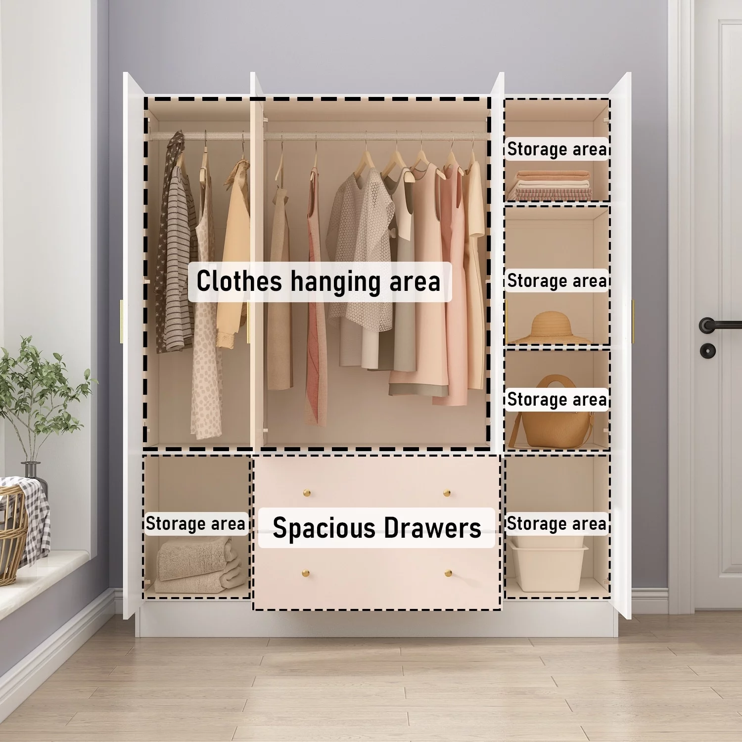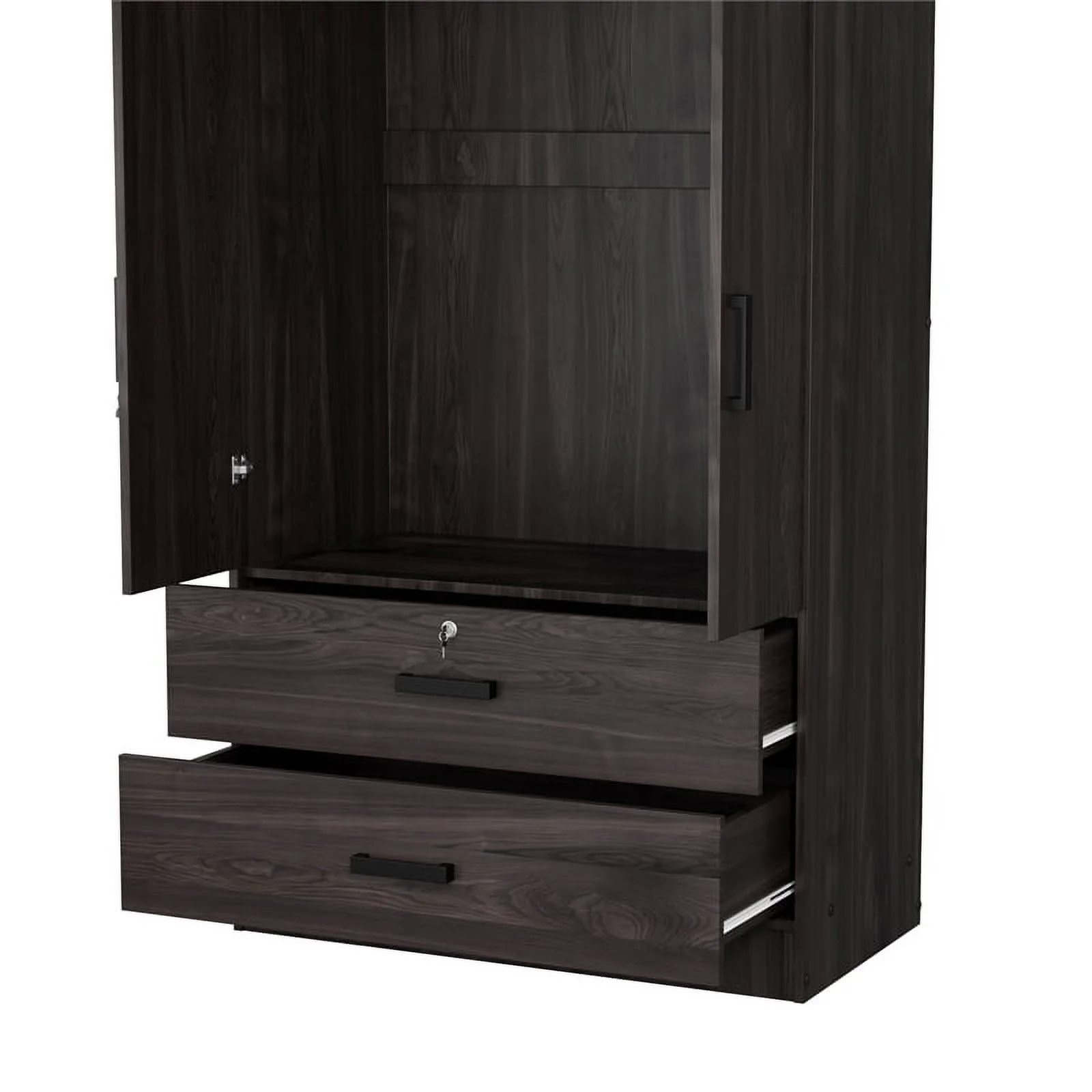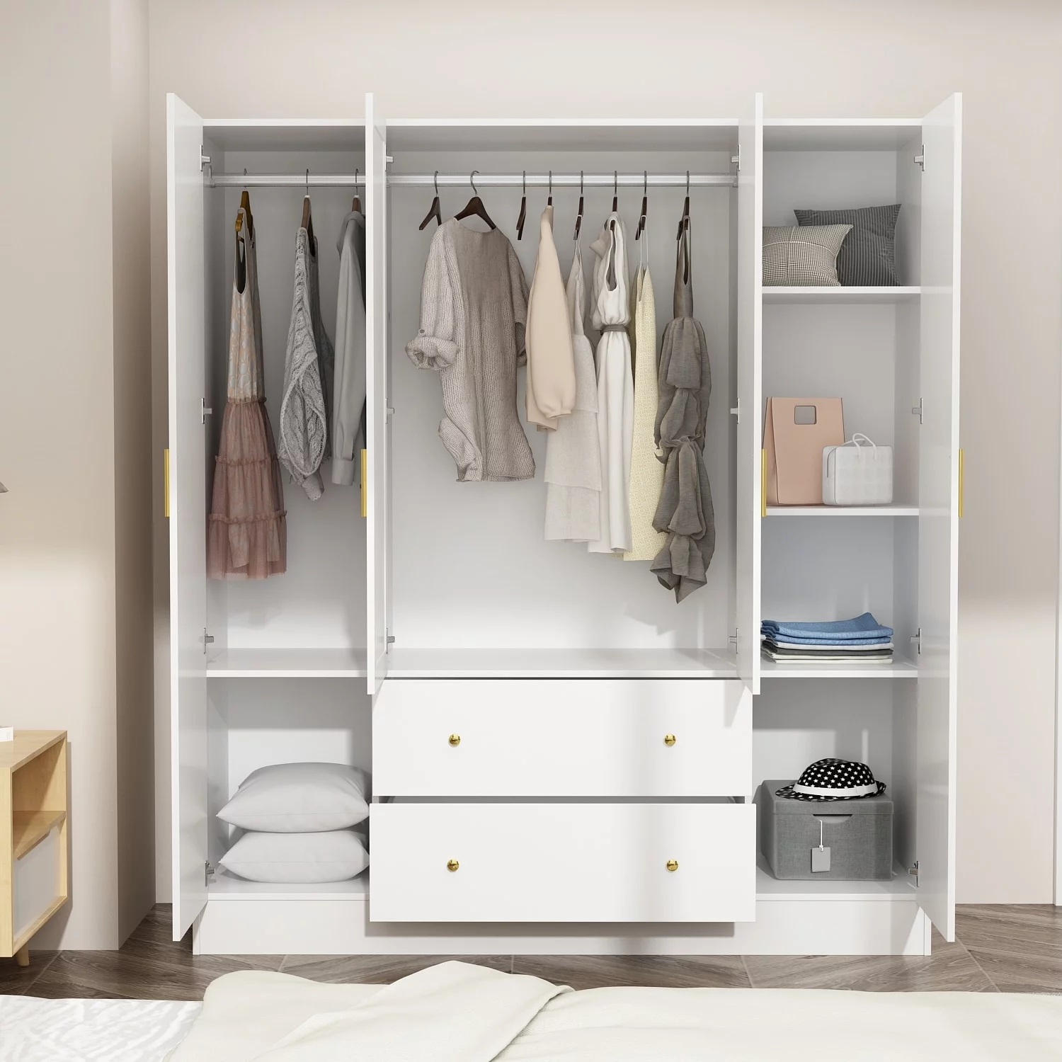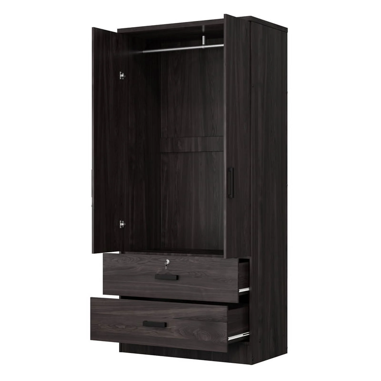 Wardrobe with Hanging Rod Armoire 3 Doors and 2 Drawers Armoire Closet White