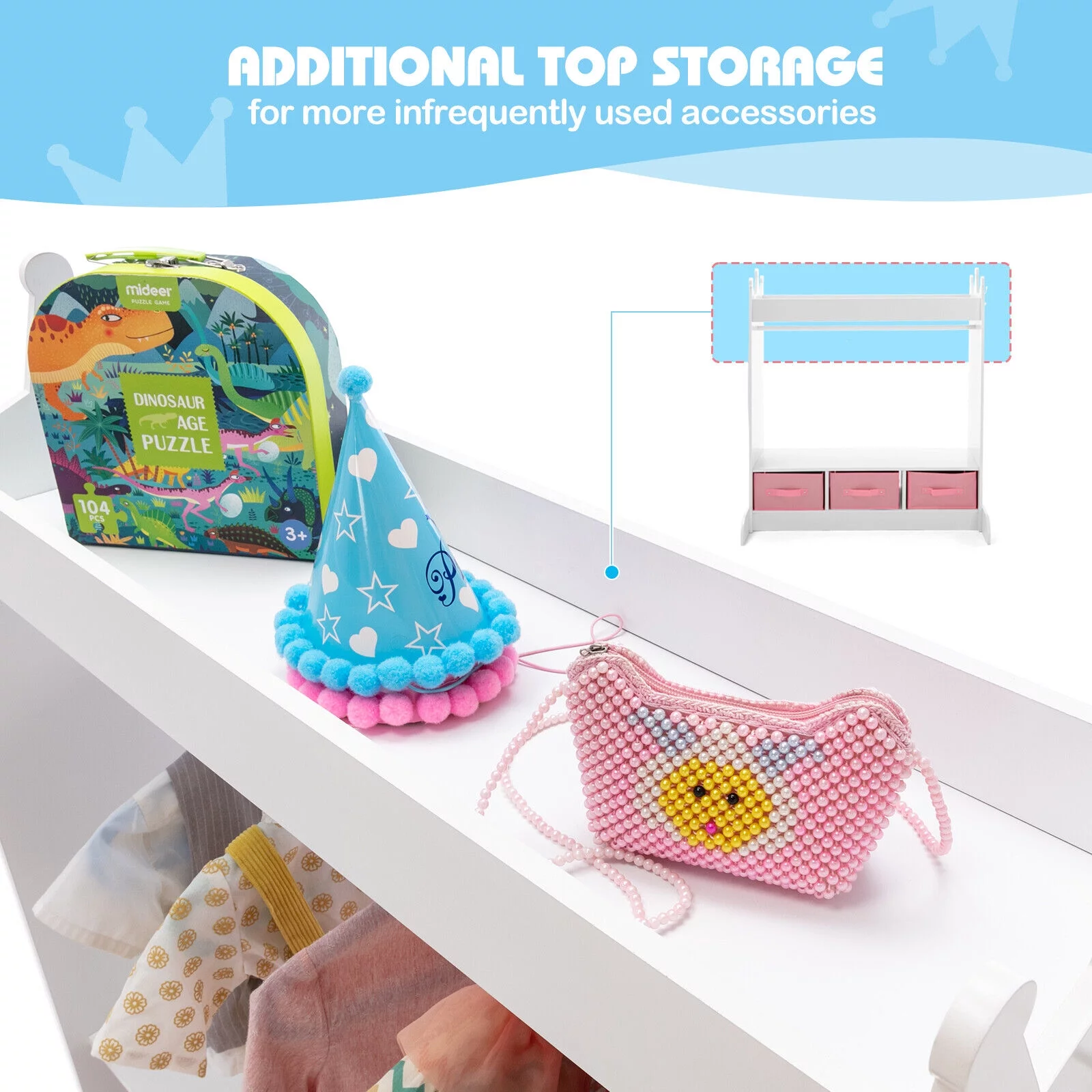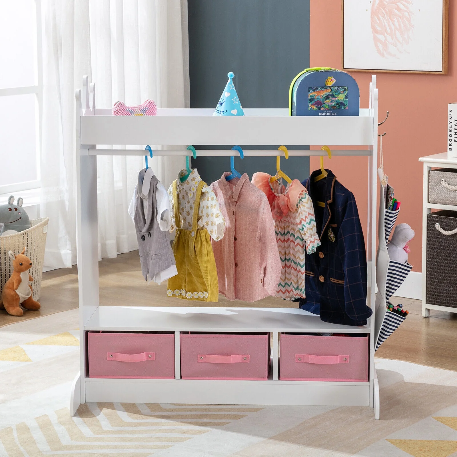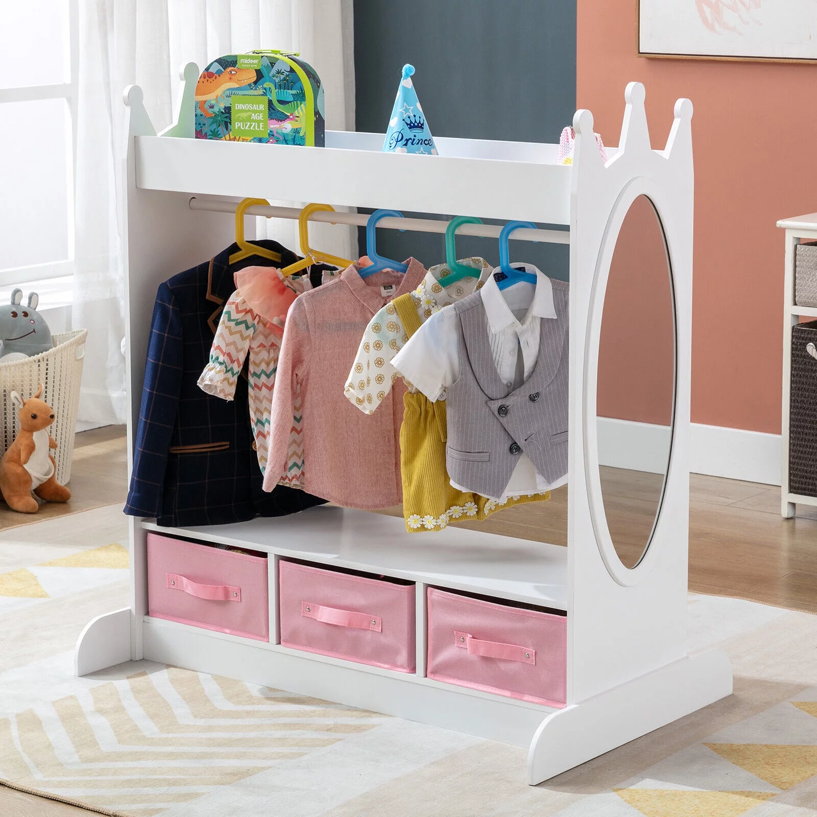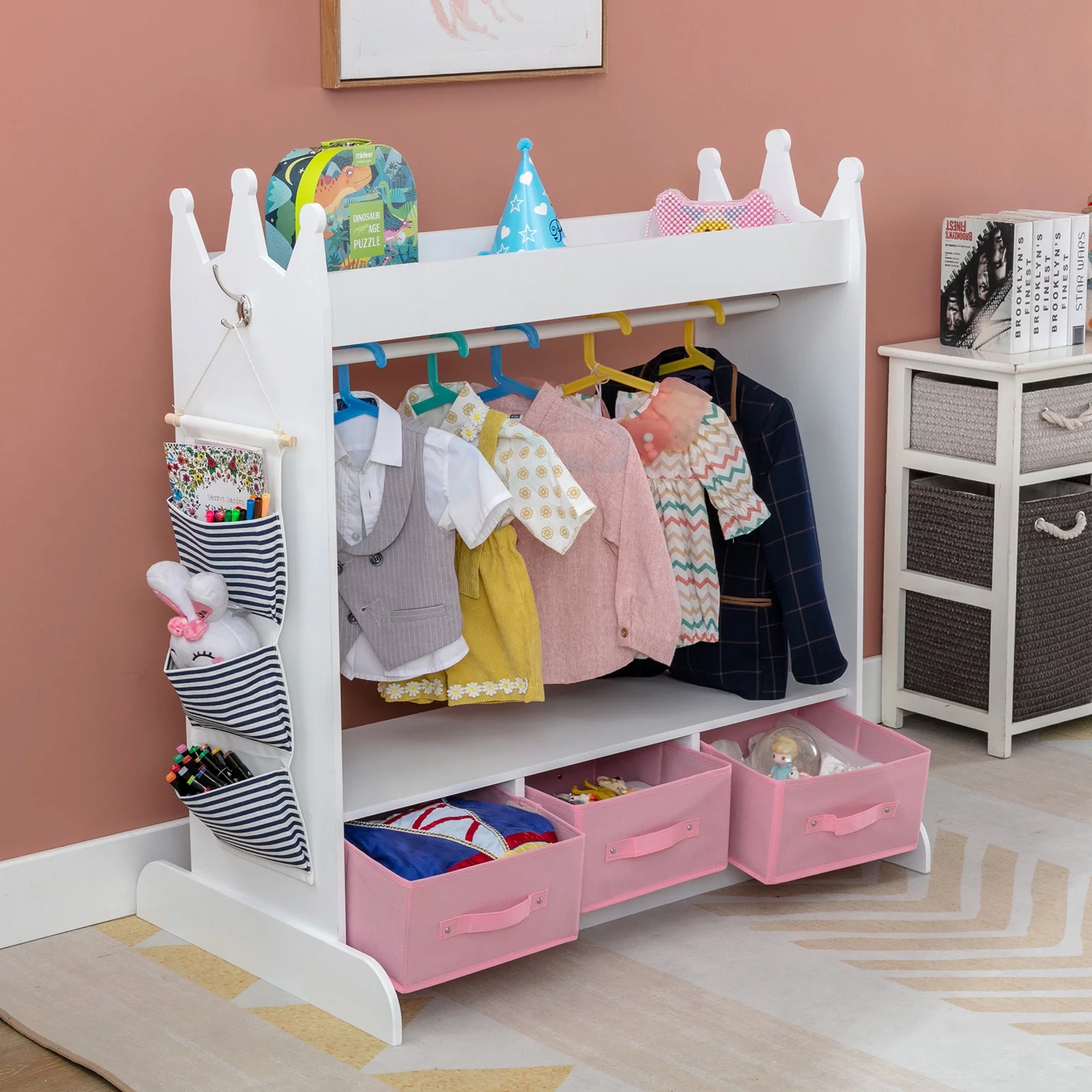 Wardrobe with Hanging Rod Armoire 3 Doors and 2 Drawers Armoire Closet White