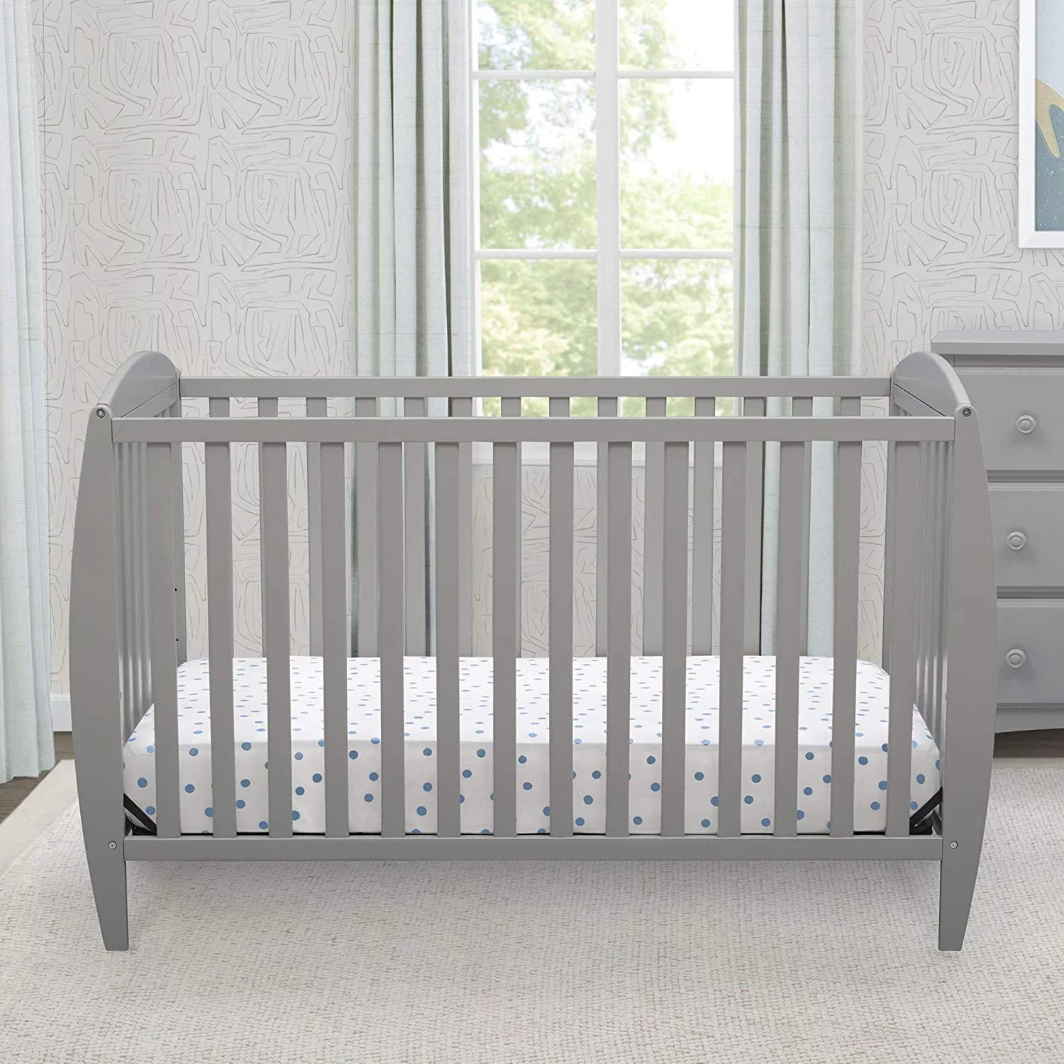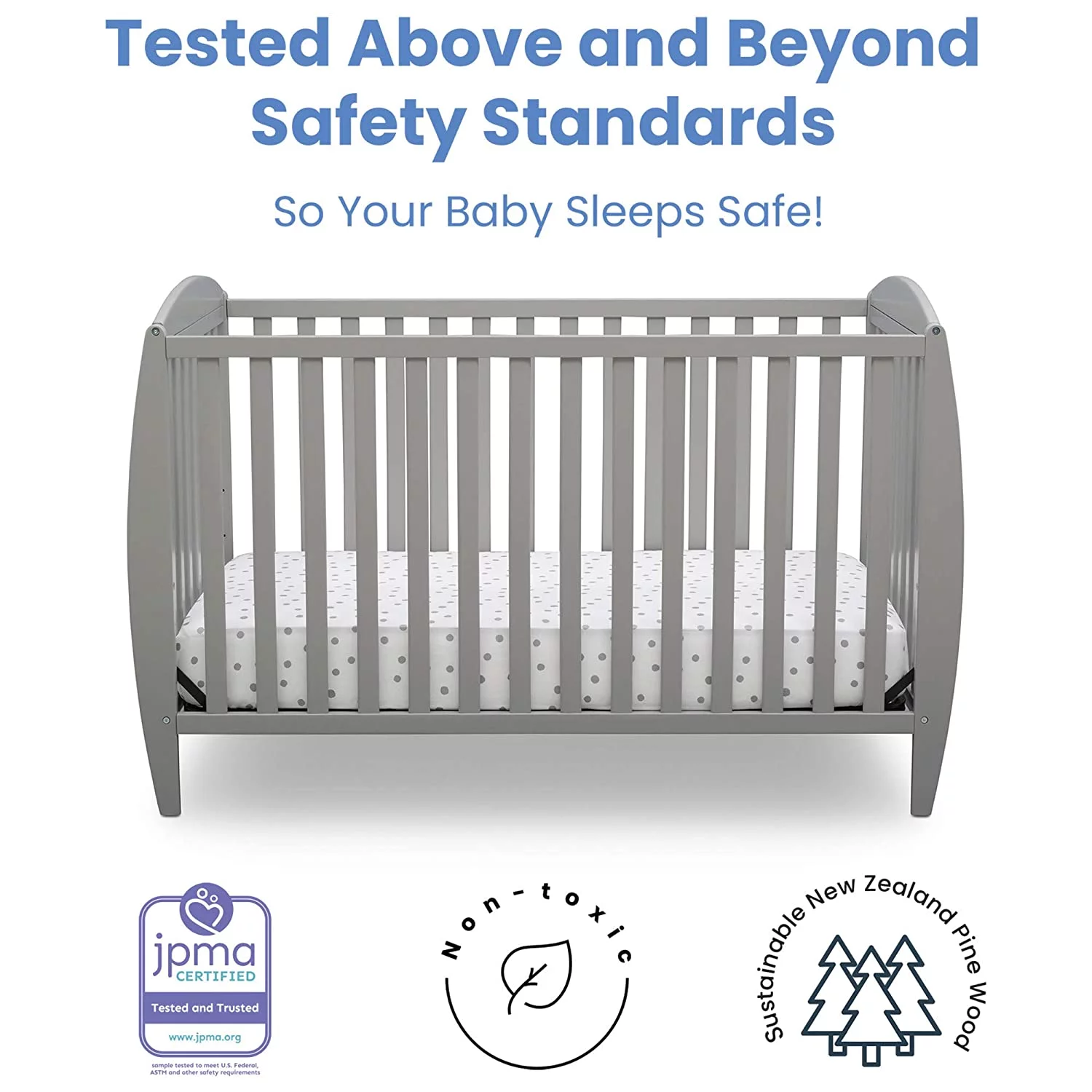 Delta Children Twinkle 4 in 1 Convertible Baby Crib Easy to Assemble Sustainable New Zealand Wood Grey