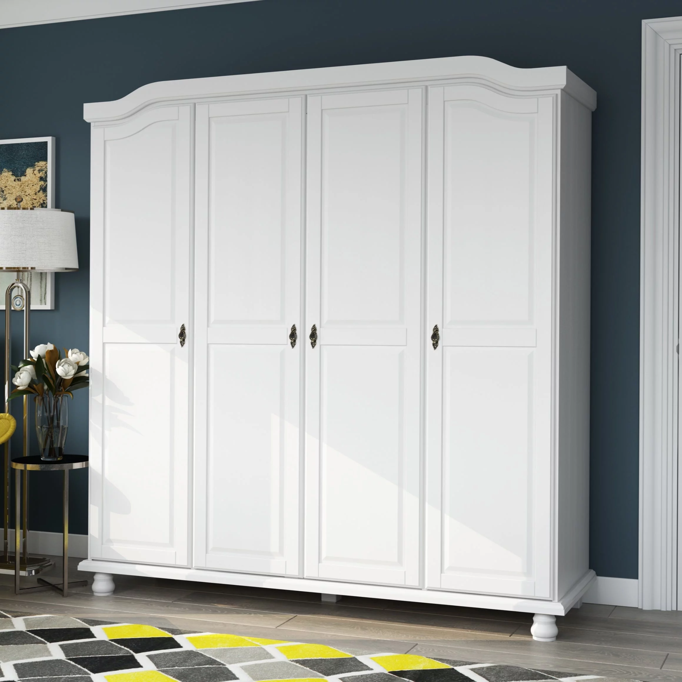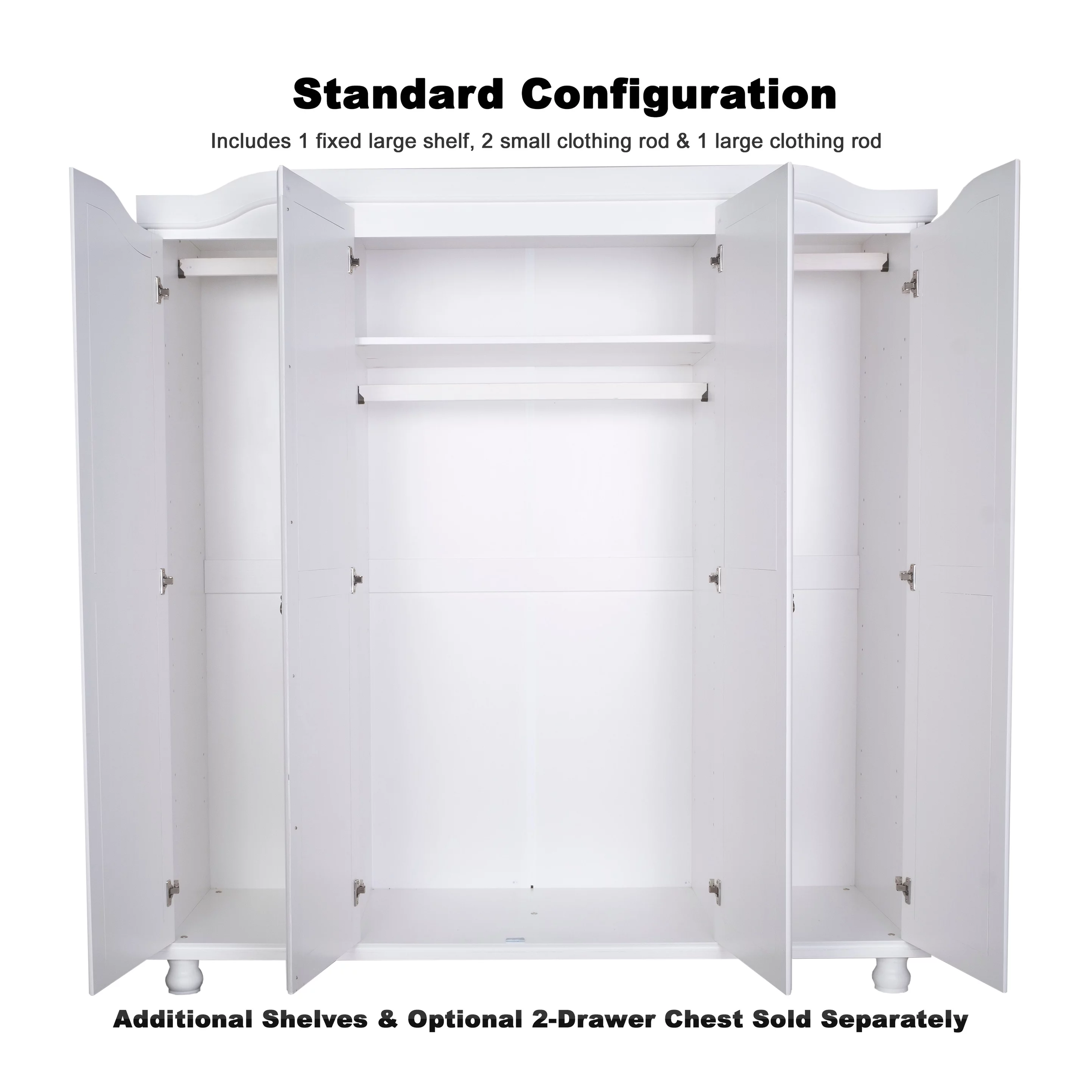 Palace Imports, Inc. Palace Imports 100% Solid Wood Kyle 4-Door Wardrobe Armoire with Solid Wood or Mirrored Doors White