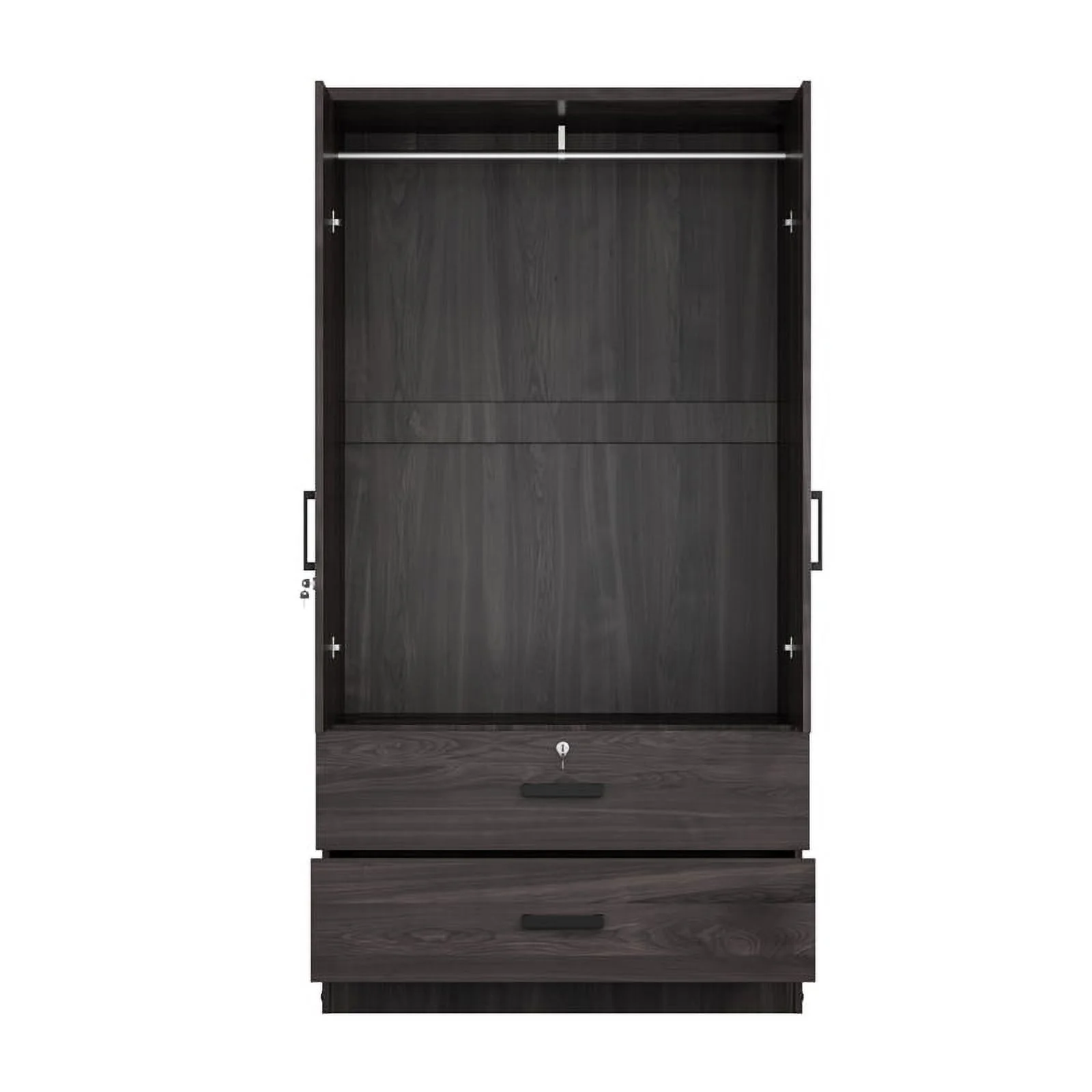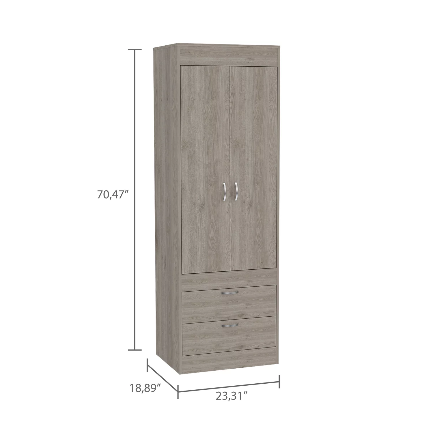 TUHOME Lisboa Armoire, Rod, Two-Door Armoire, Two Drawers, Metal Handles, Light Grey, For Bedroom