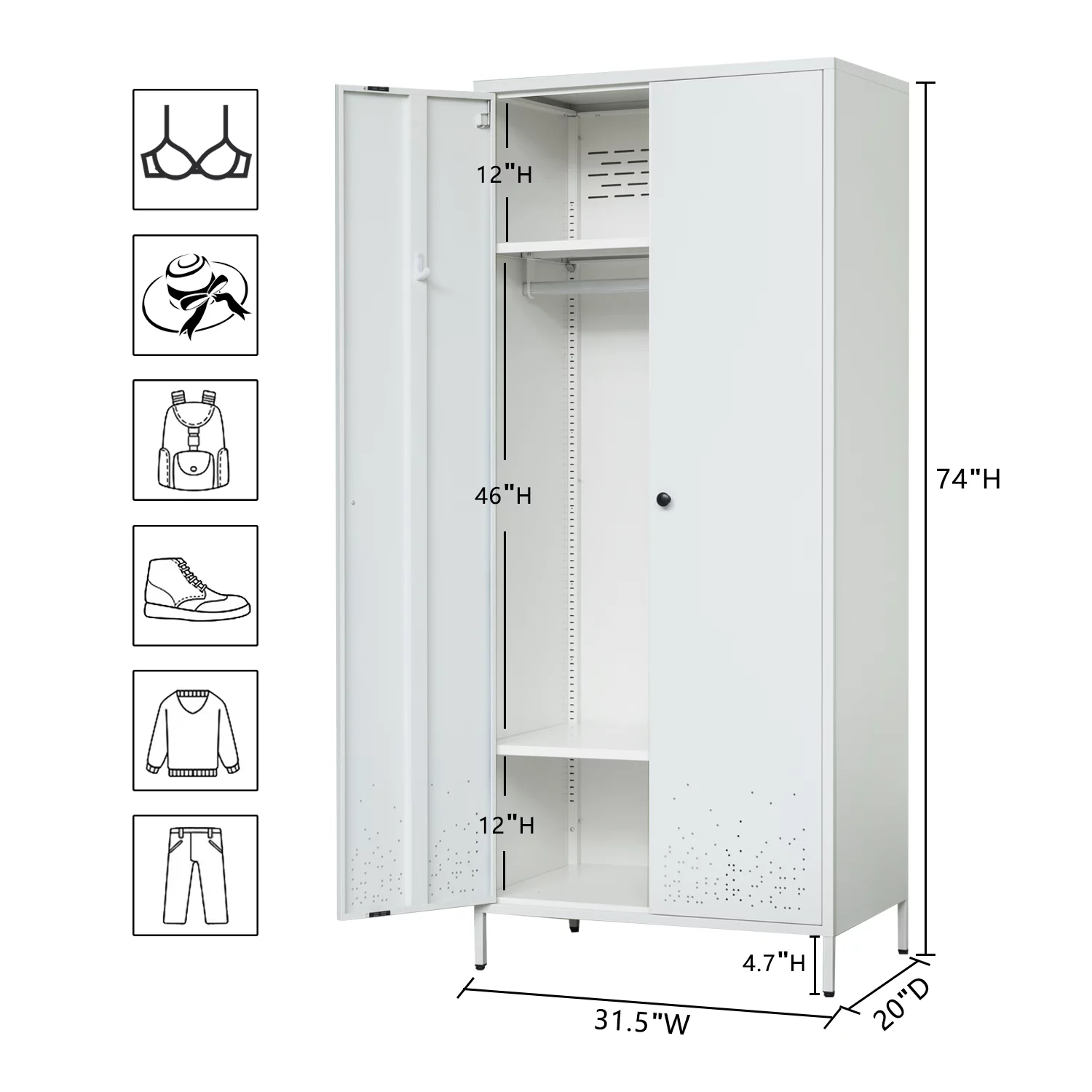 Storage Cabinet, Metal Wardrobe Armoire Closet with Hanging Rod for Bedroom, Laundry Room(White)