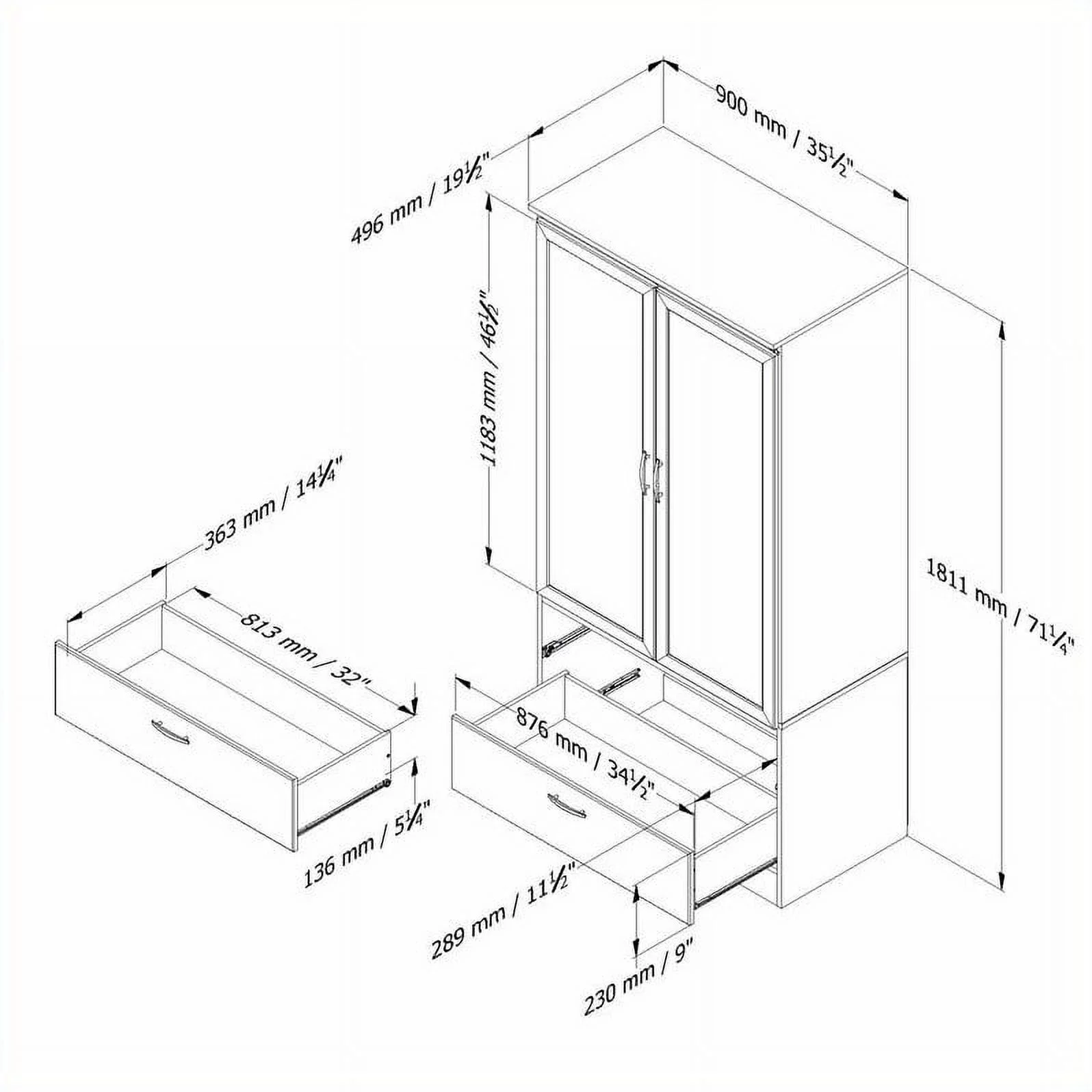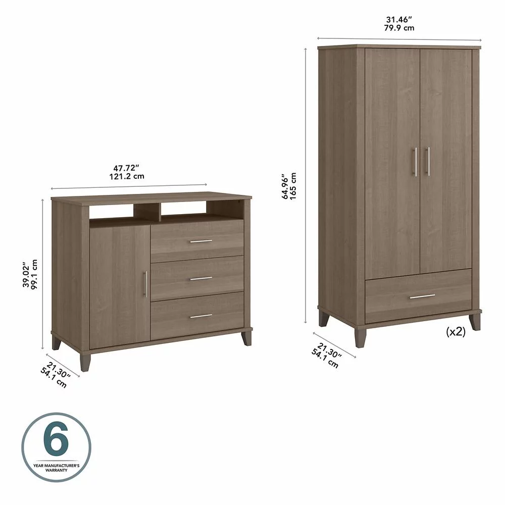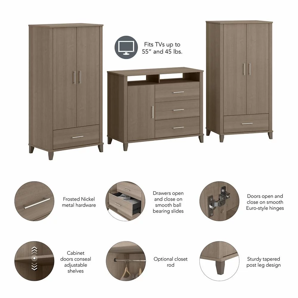 Somerset Armoire Cabinets & Dresser TV Stand in Ash Gray - Engineered Wood