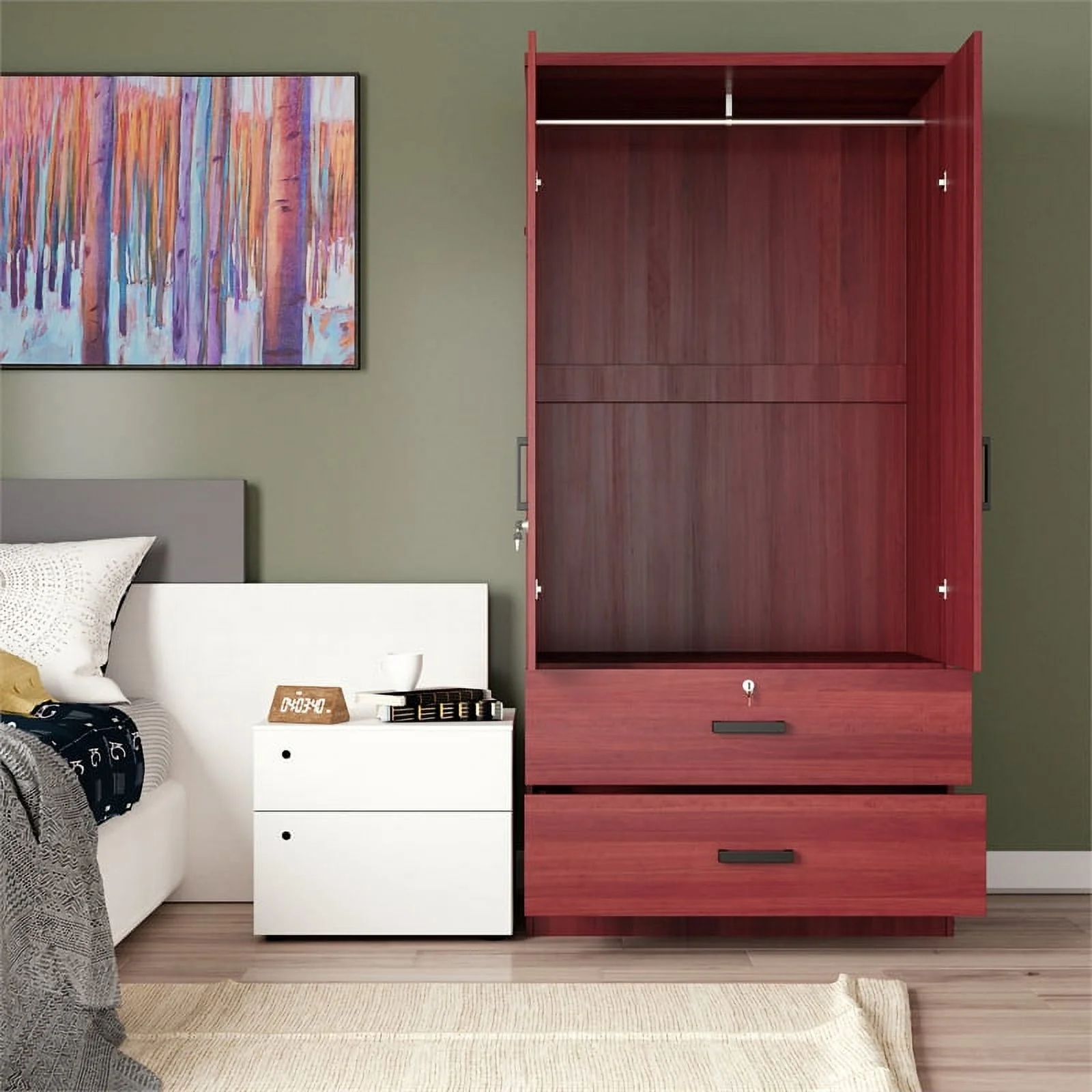 Boahaus Jena Bedroom Armoire for Adults, 2-Doors, White, Manufactured Wood, for Bedroom