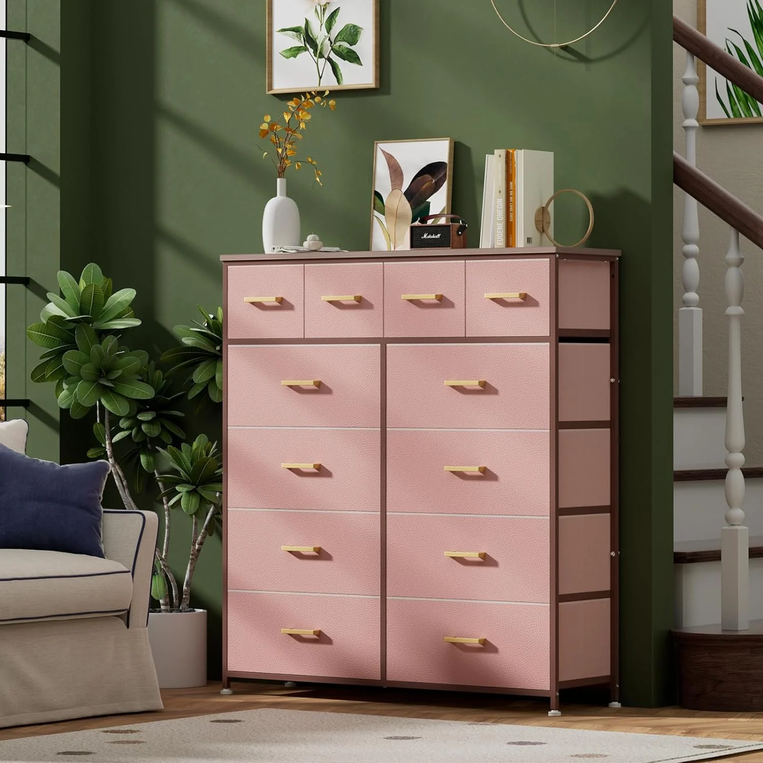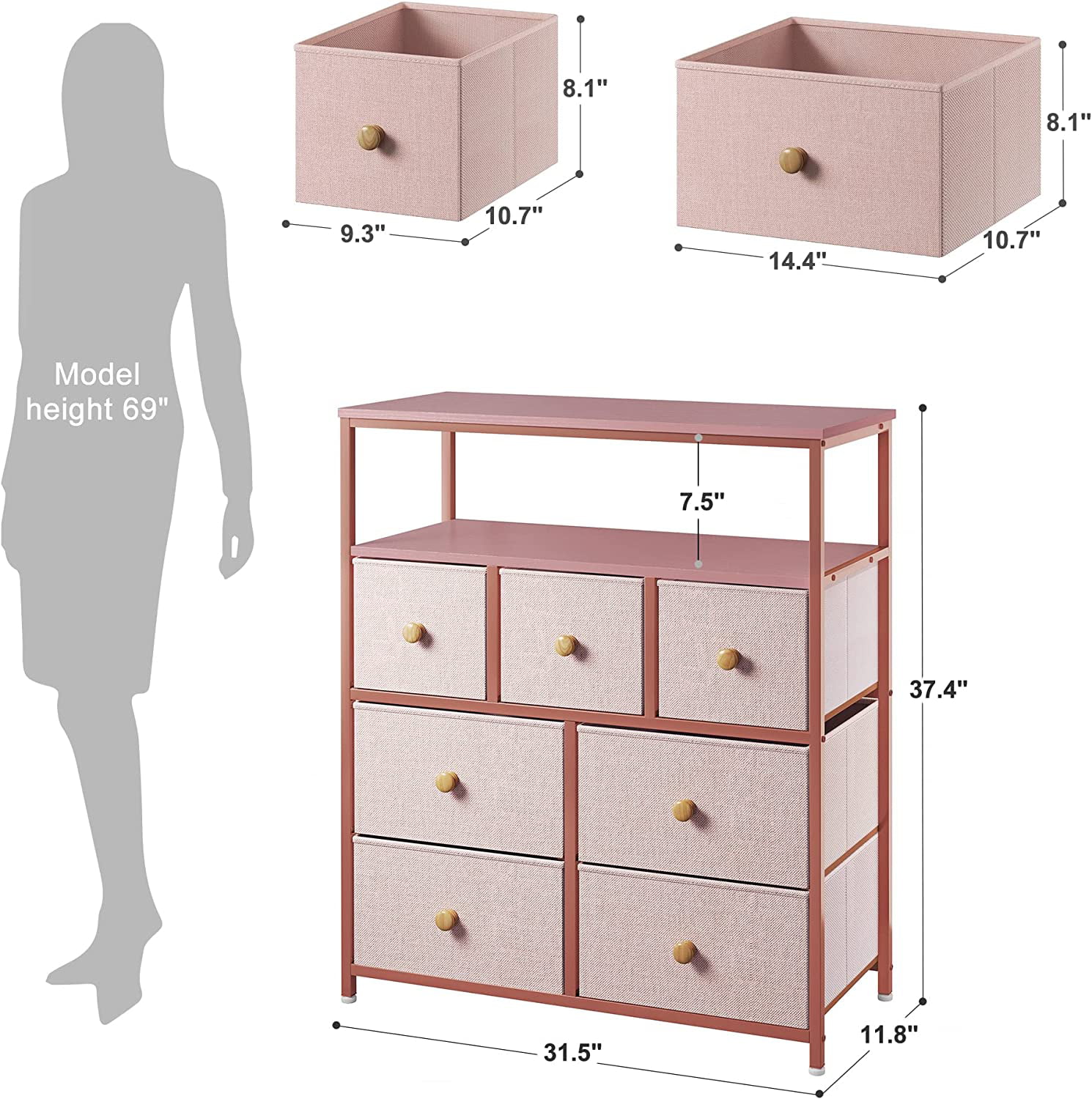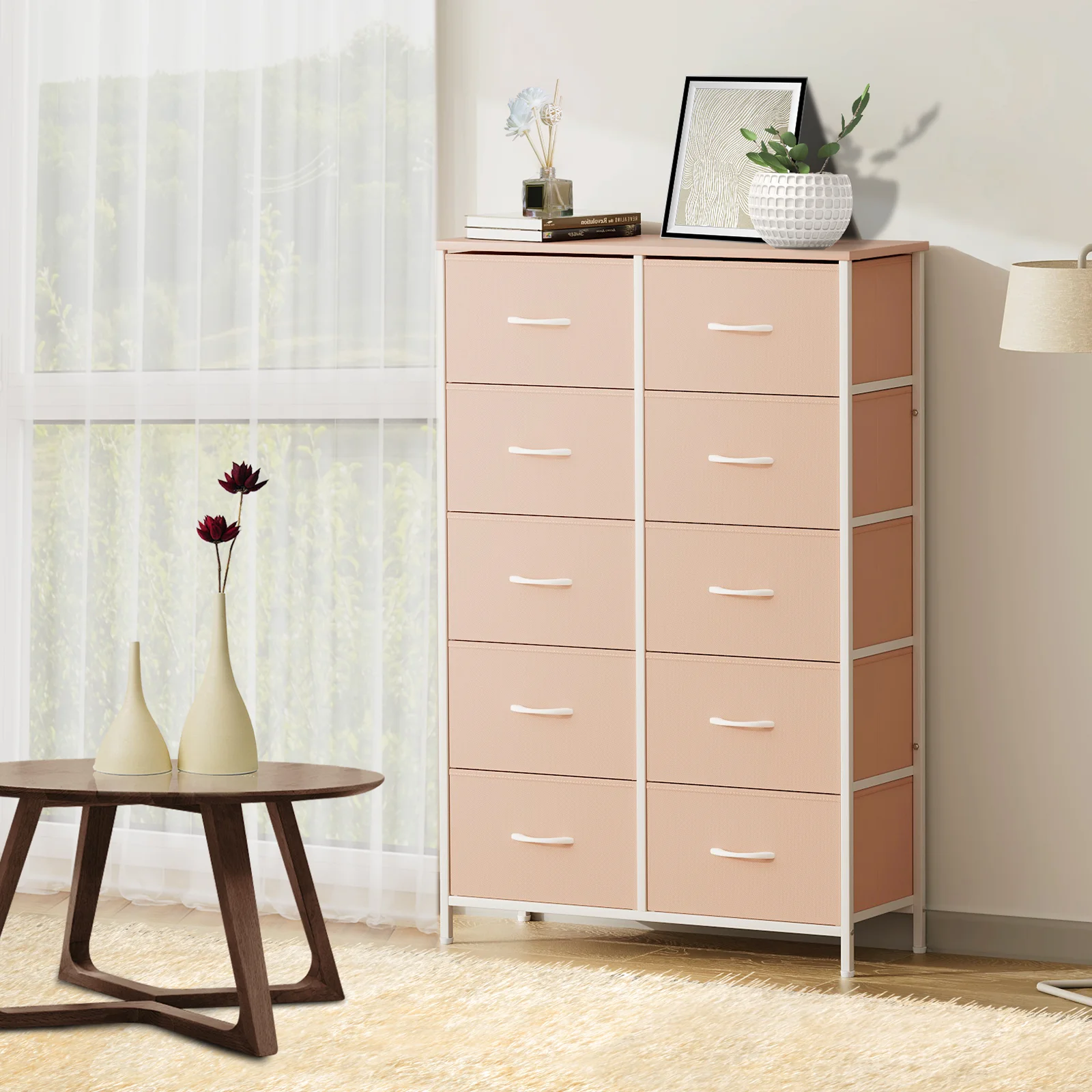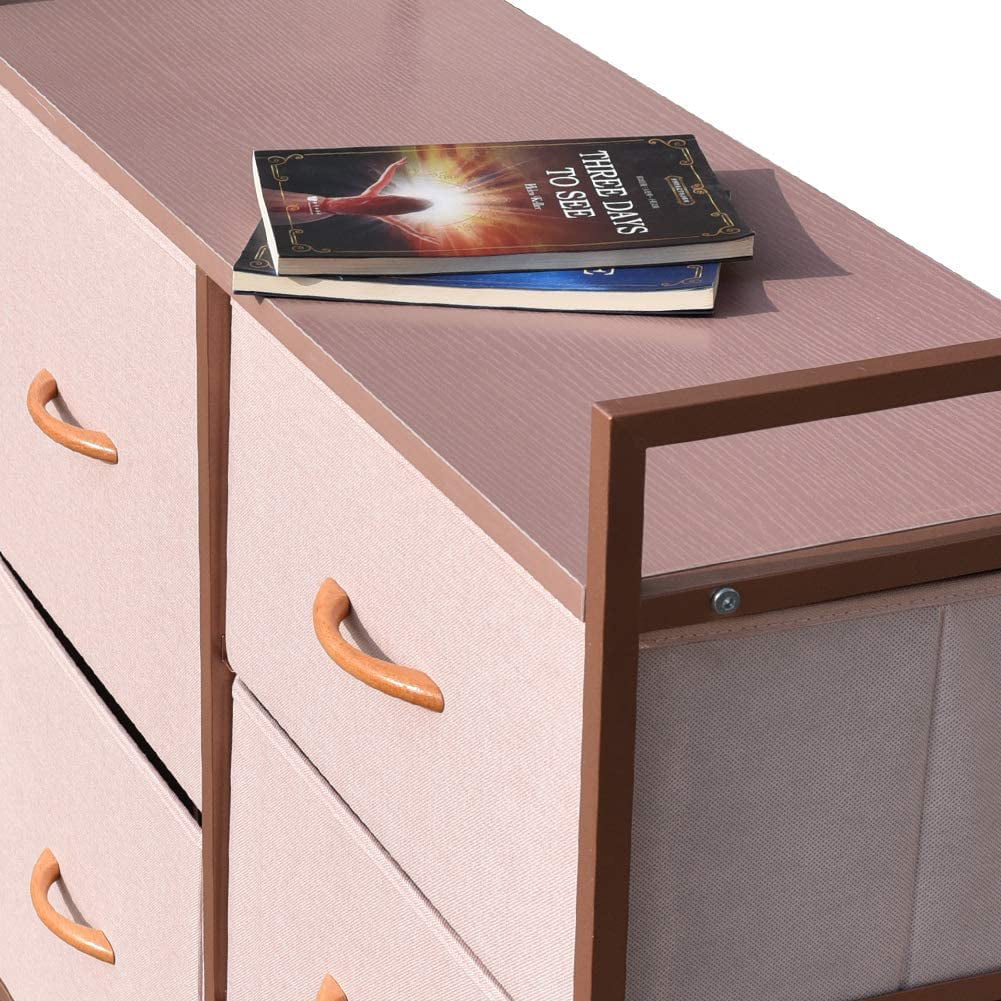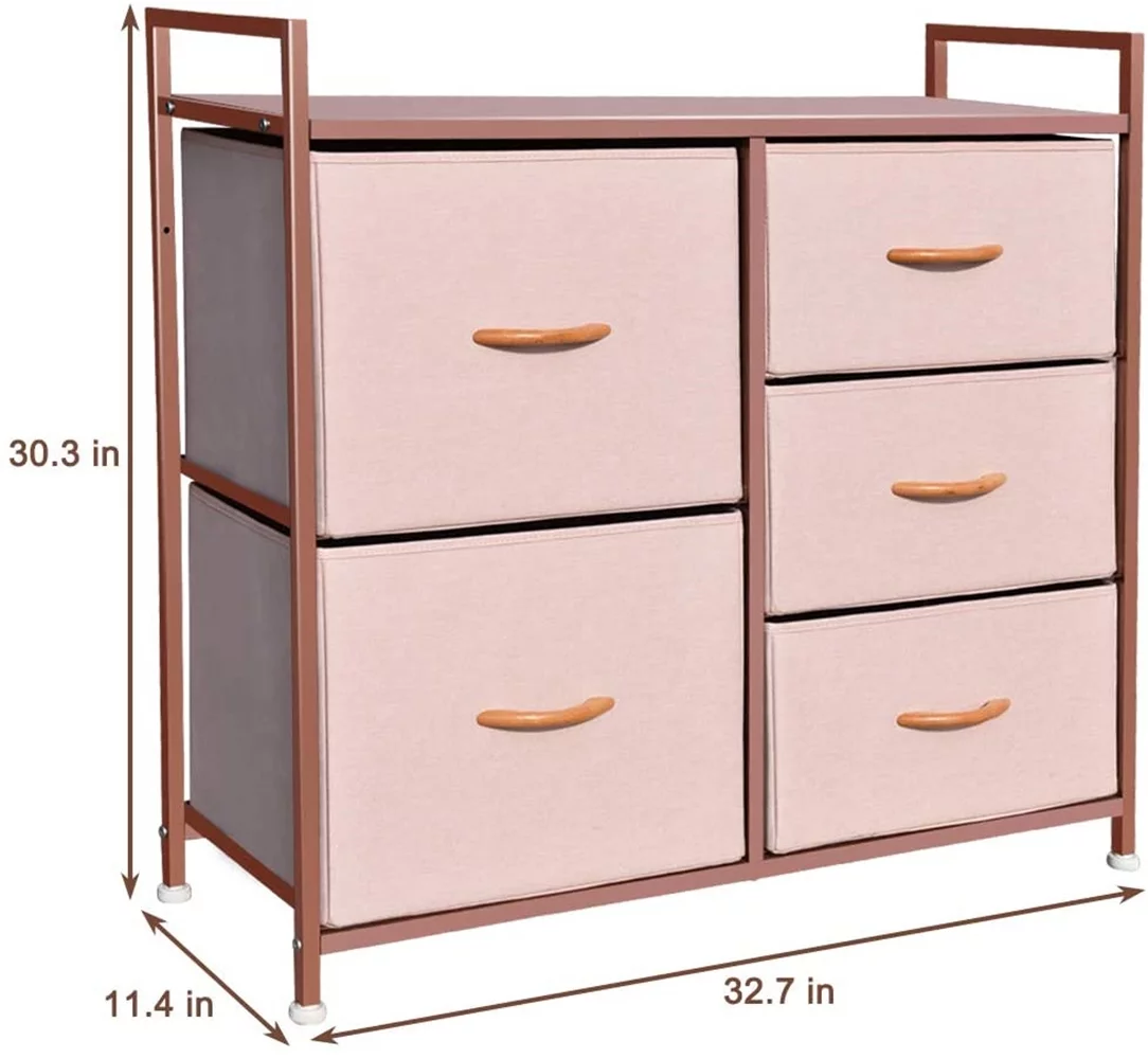YILQQPER 5 Drawer Dresser for Bedroom Fabric Dressers with Steel Frame Wooden Top Chest of Drawers Closets Storage Pink