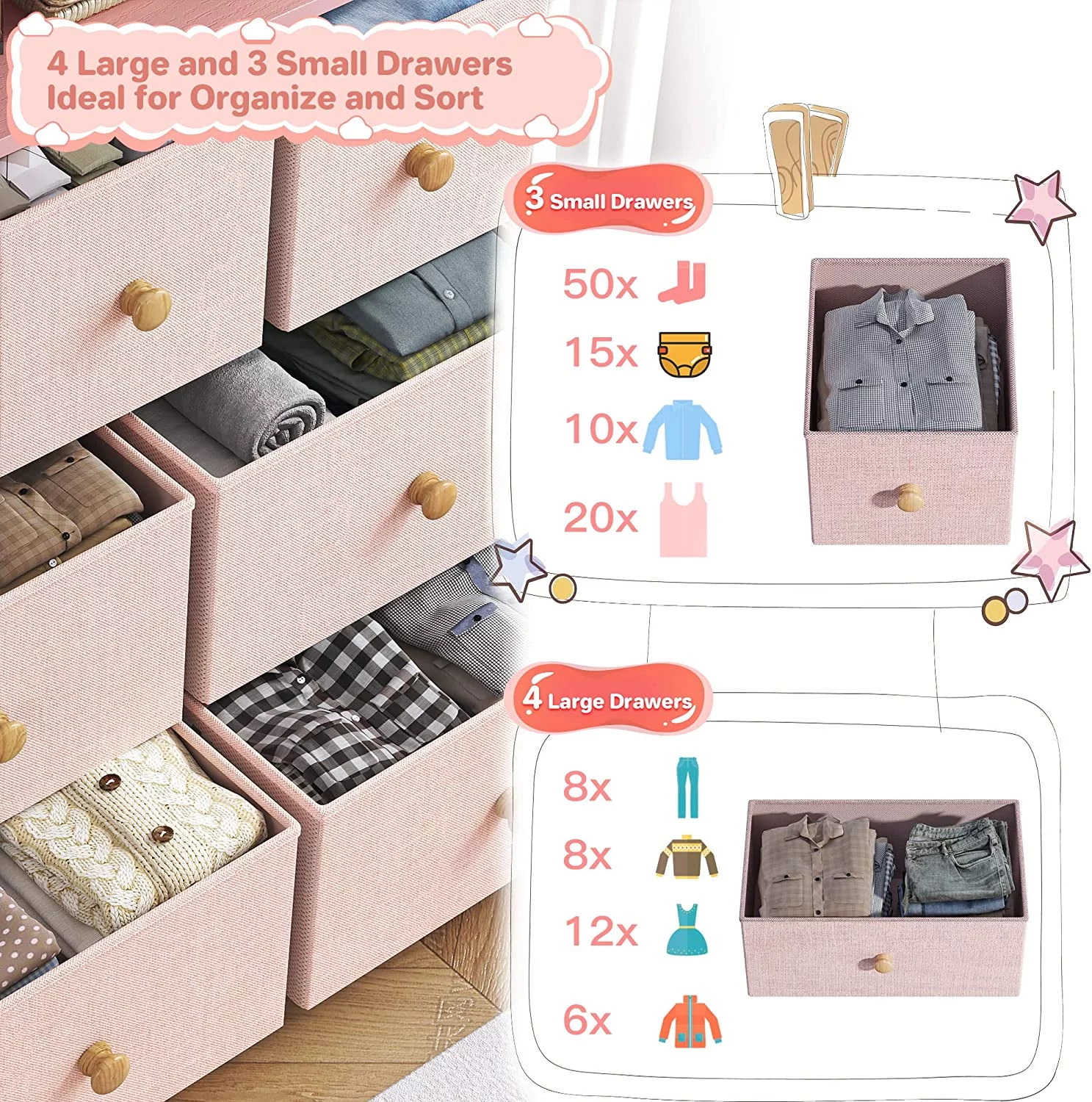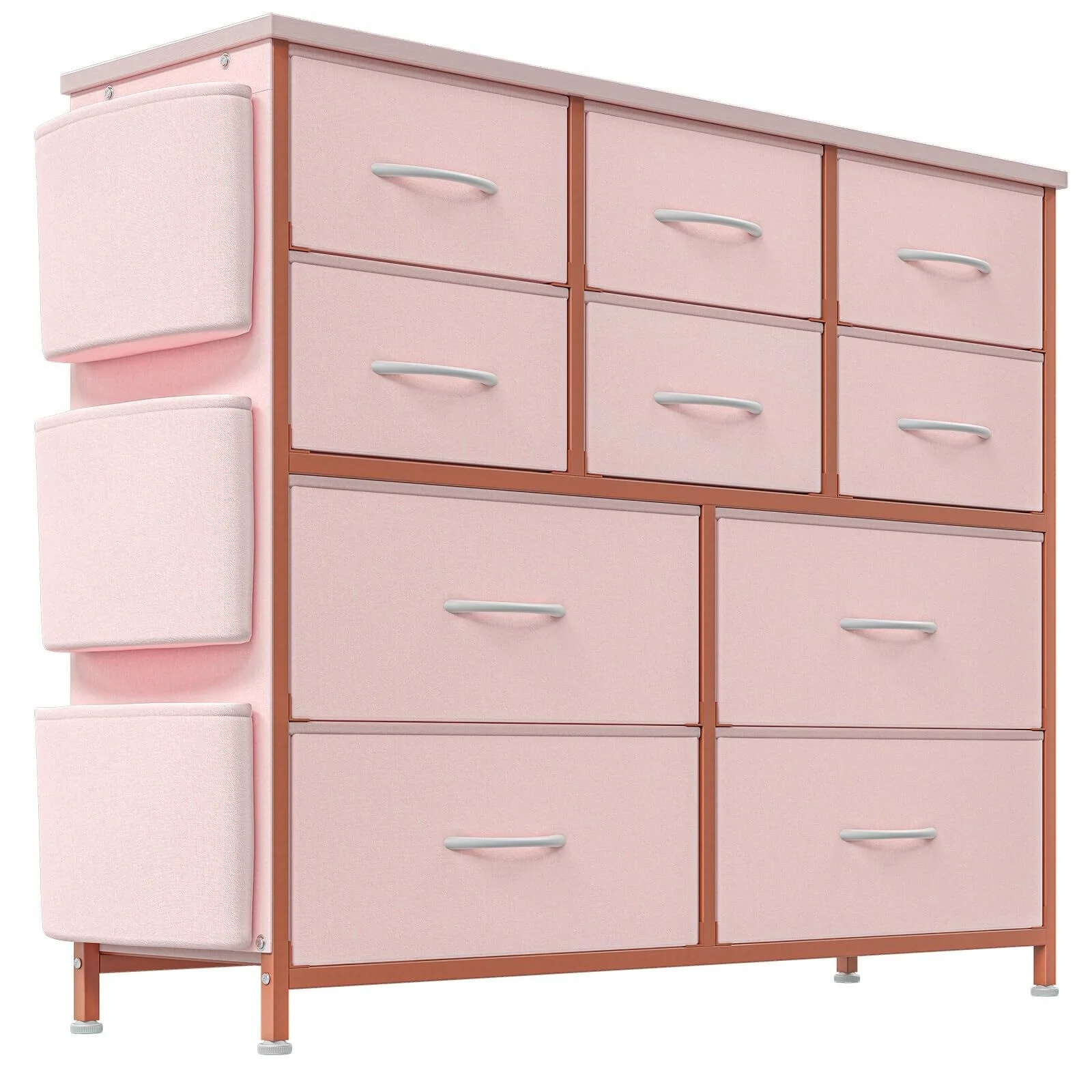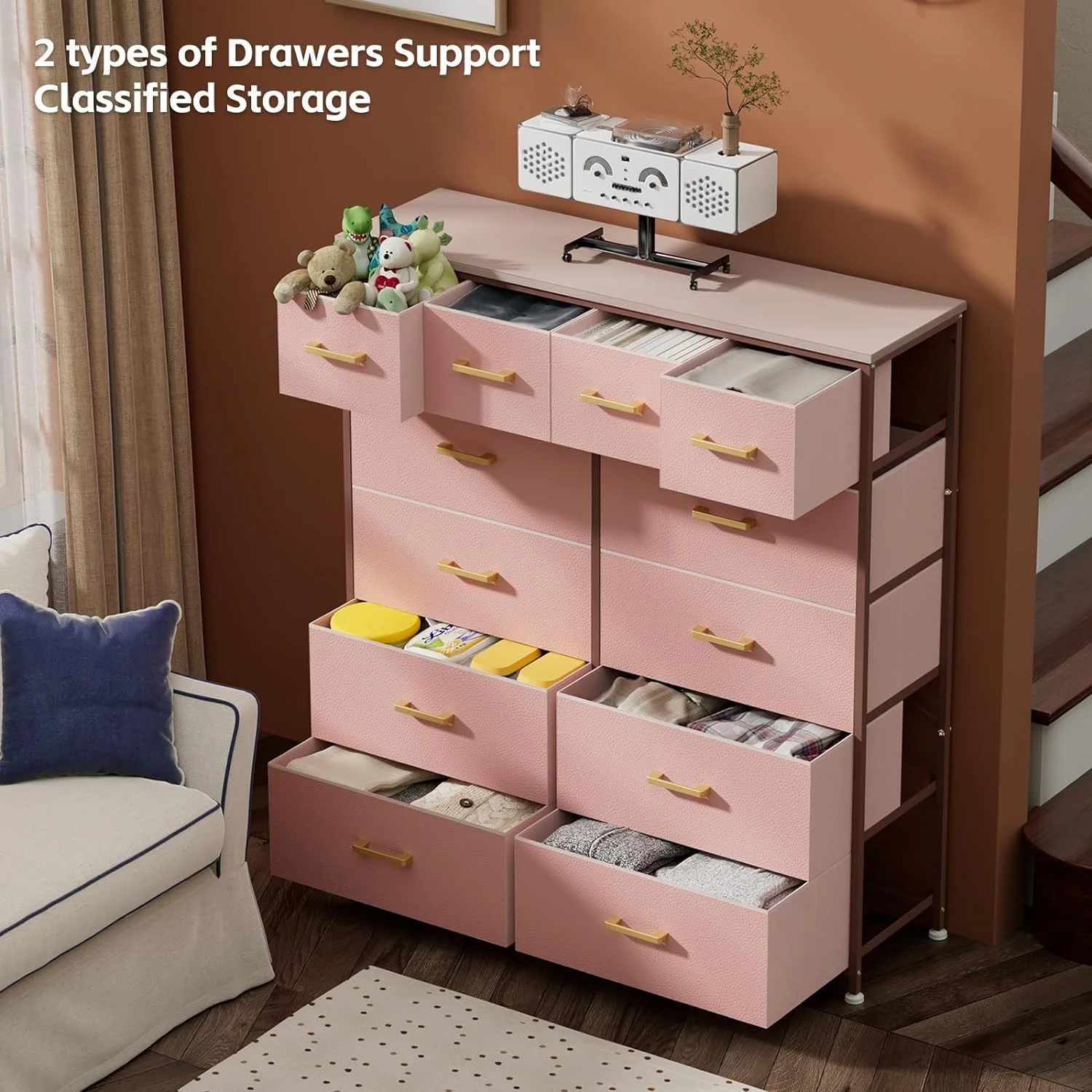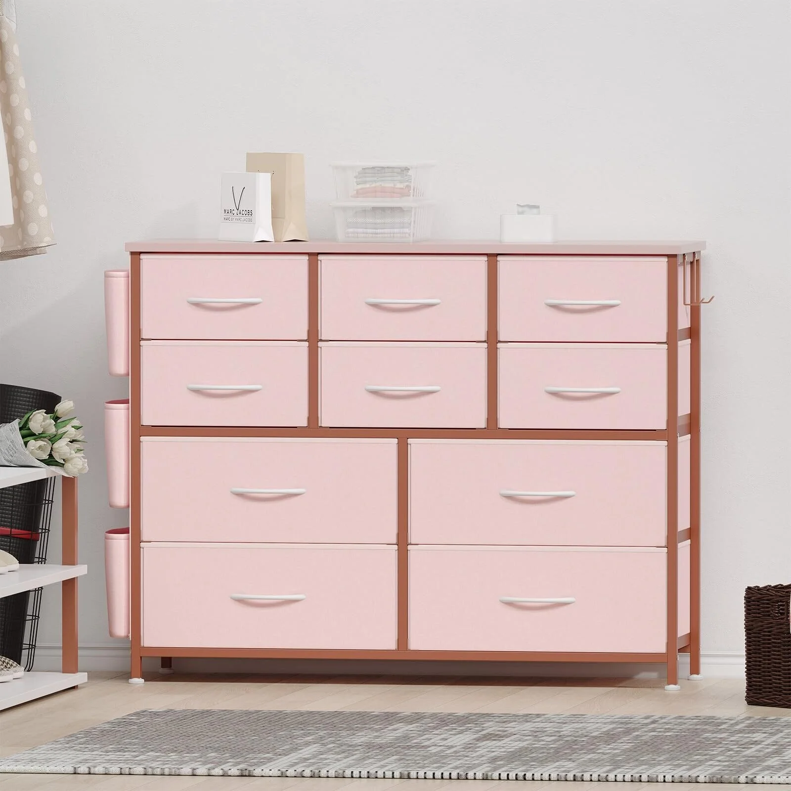 YILQQPER 5 Drawer Dresser for Bedroom Fabric Dressers with Steel Frame Wooden Top Chest of Drawers Closets Storage Pink