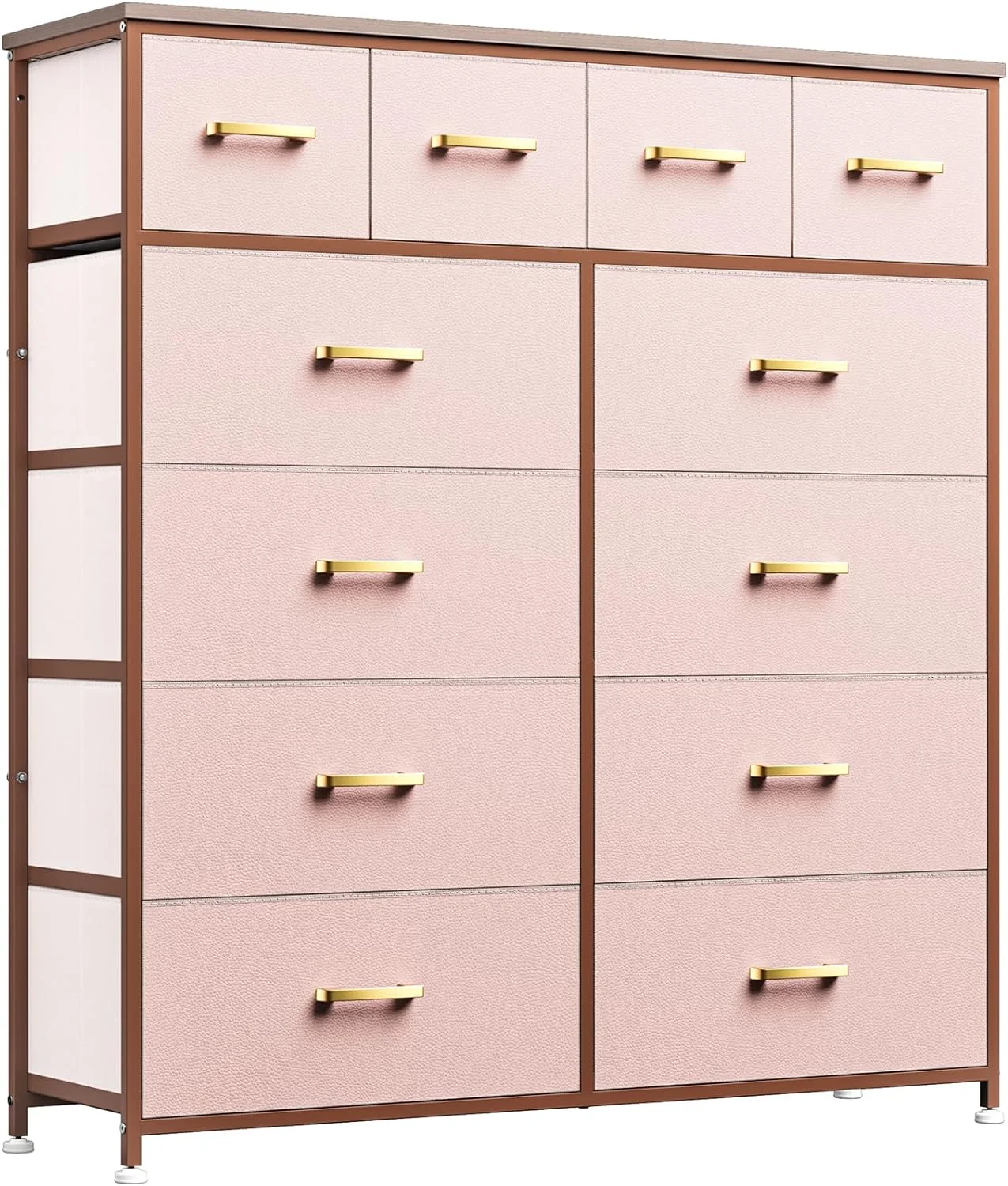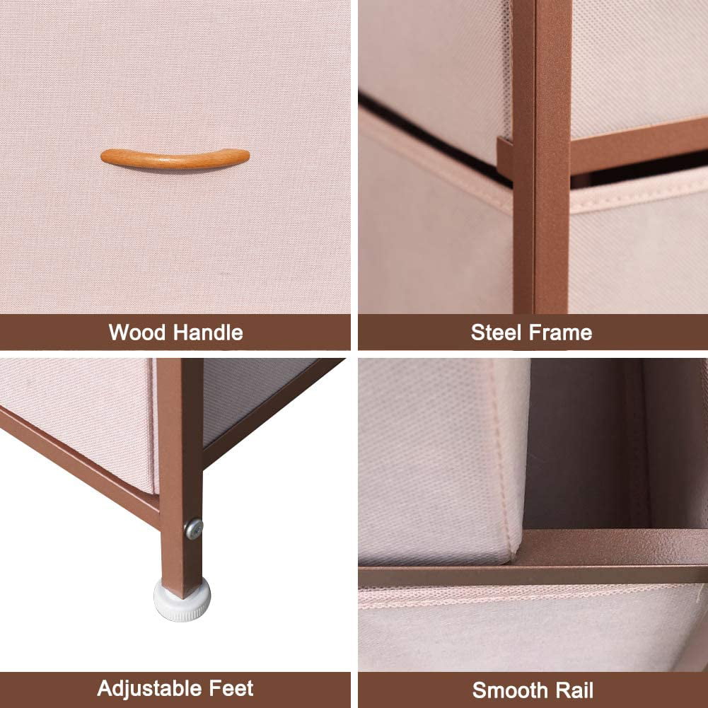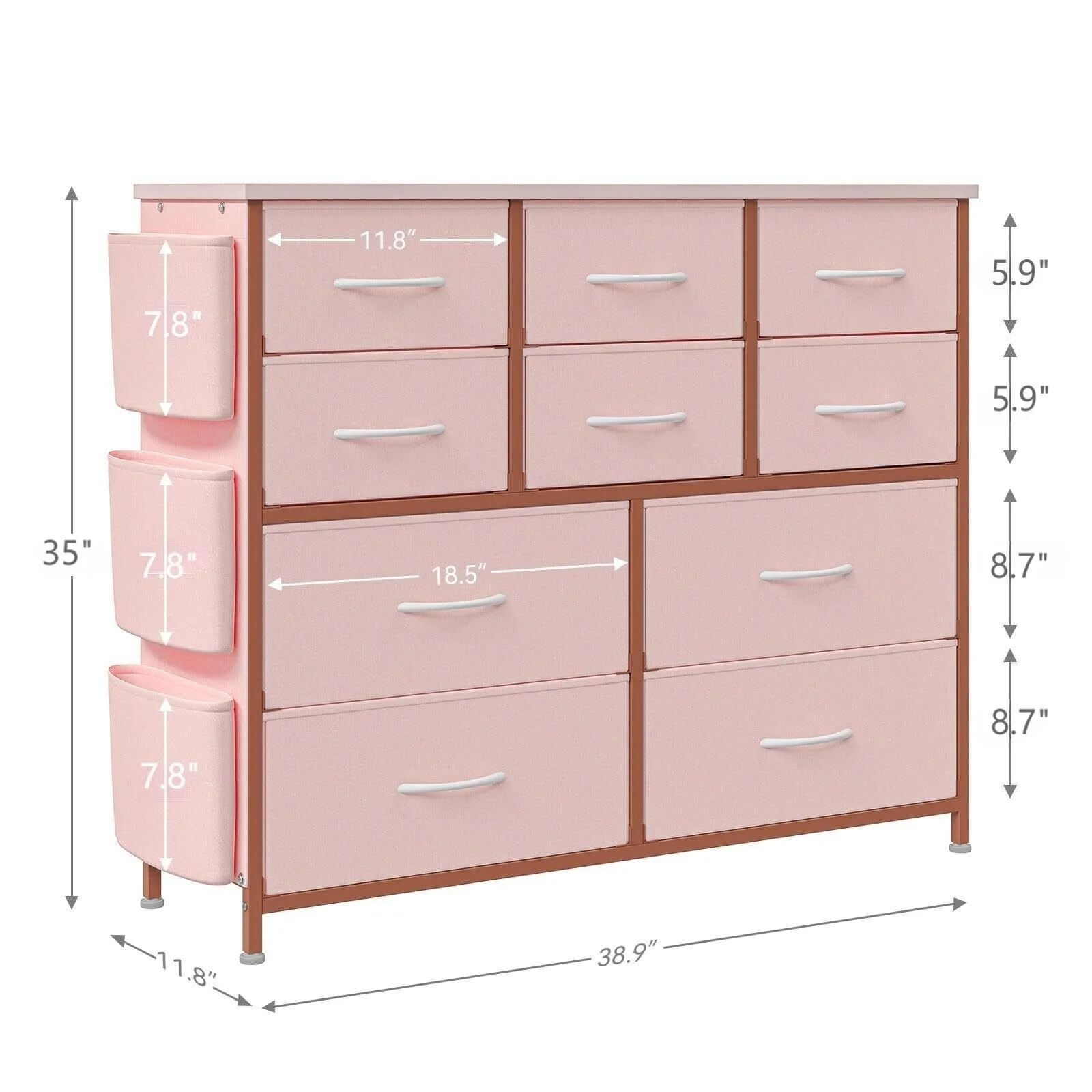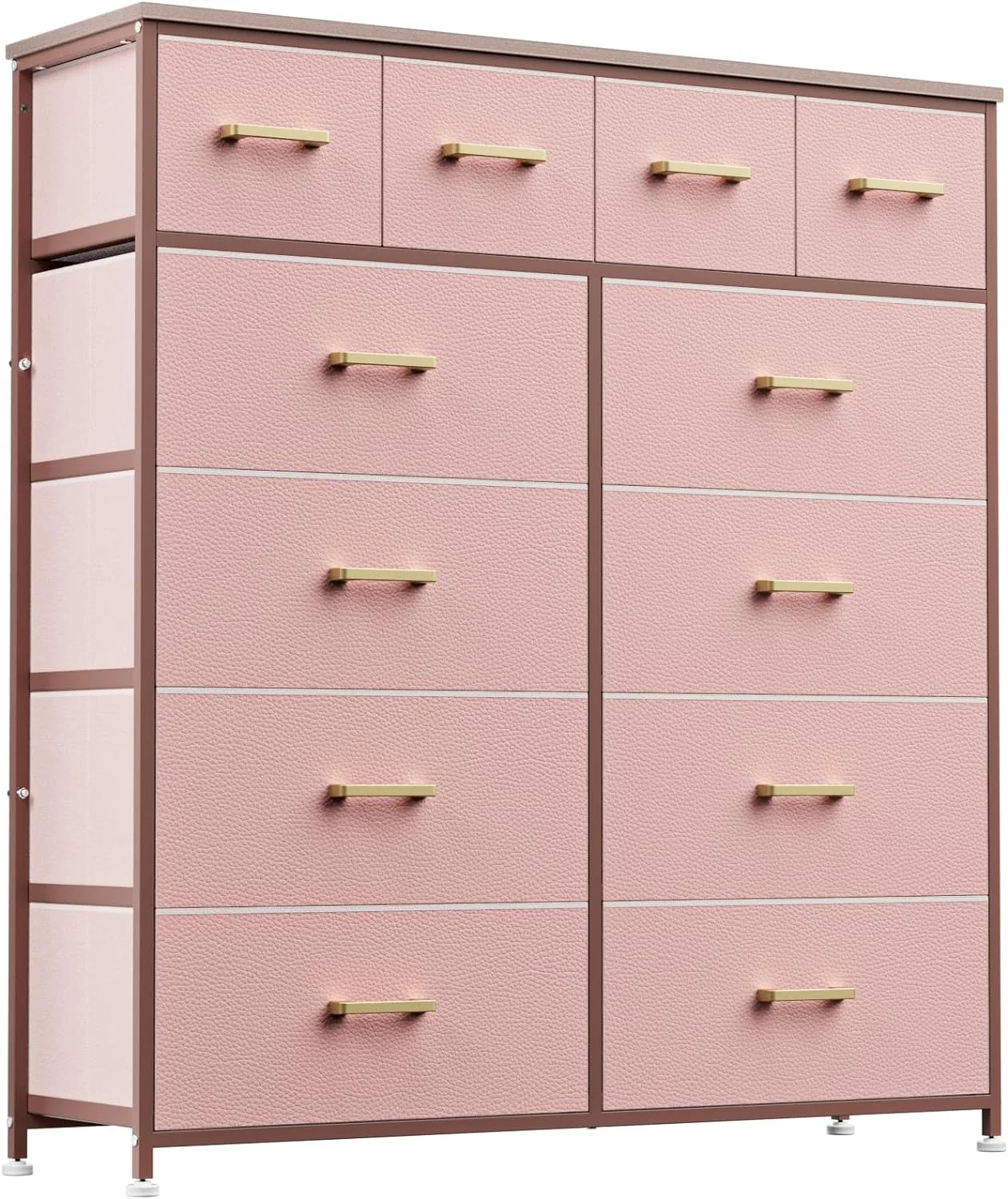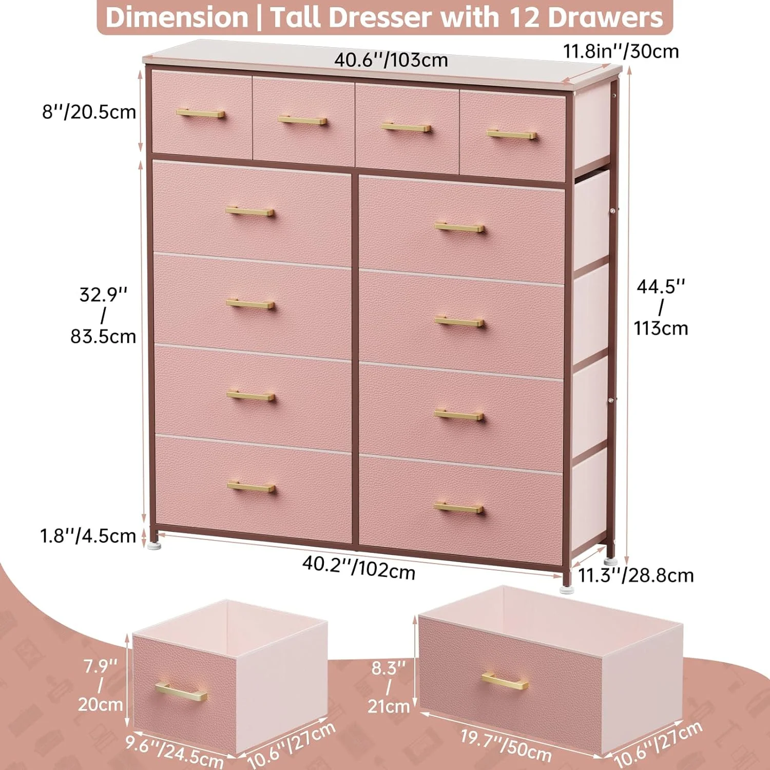 YILQQPER 5 Drawer Dresser for Bedroom Fabric Dressers with Steel Frame Wooden Top Chest of Drawers Closets Storage Pink