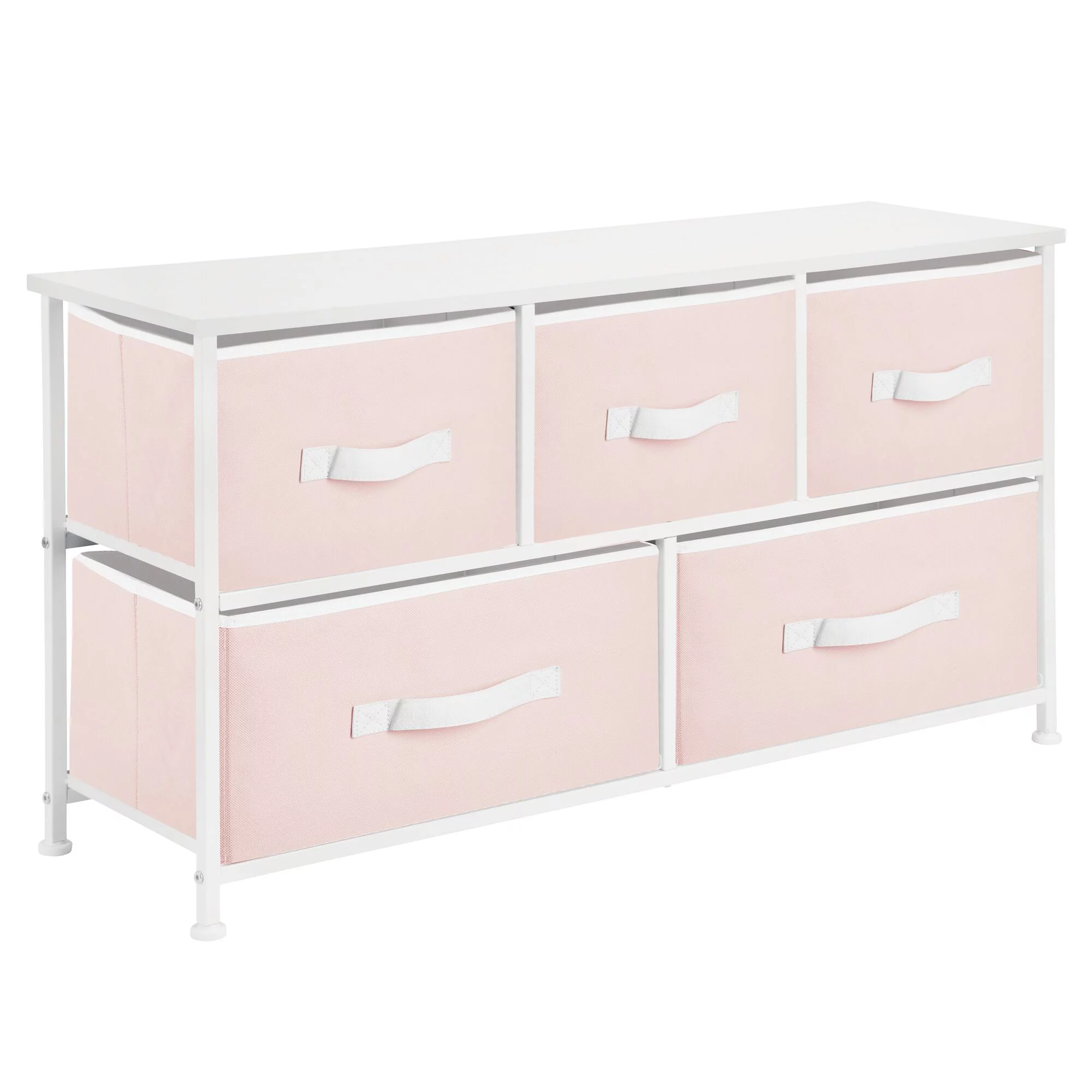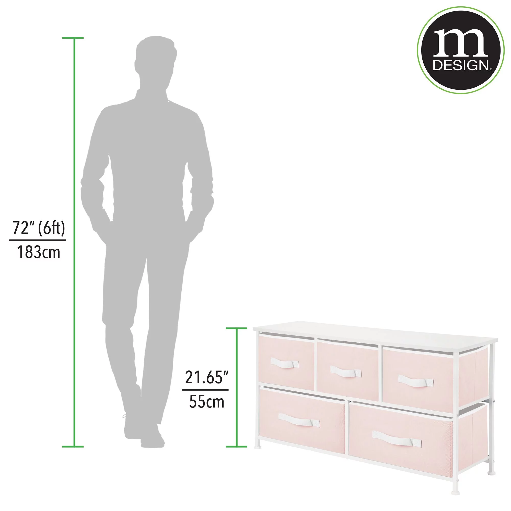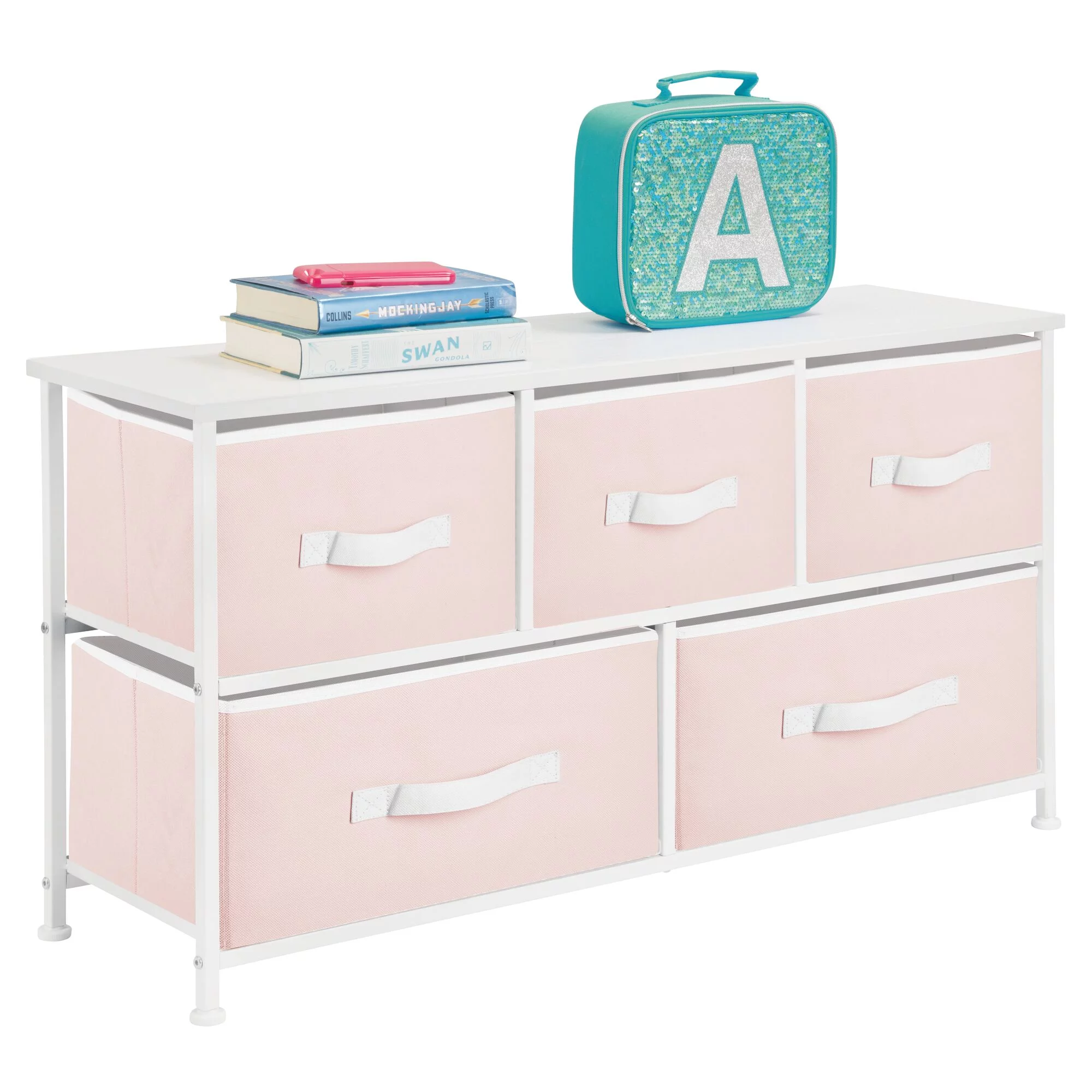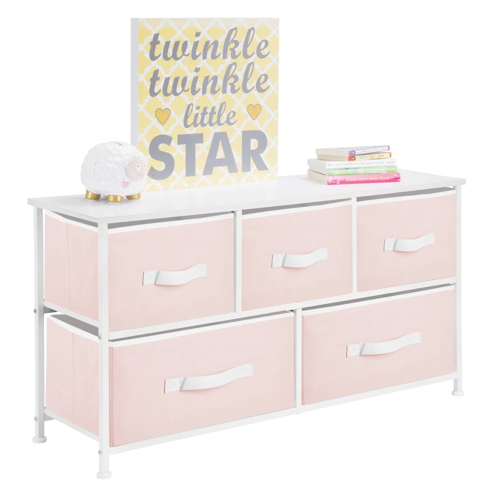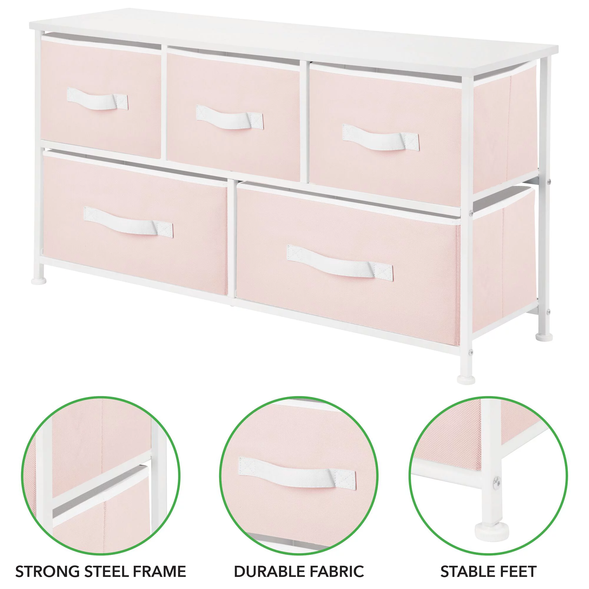 mDesign Baby + Kids Wide Storage Dresser with 5 Removable Drawers, Pink/White