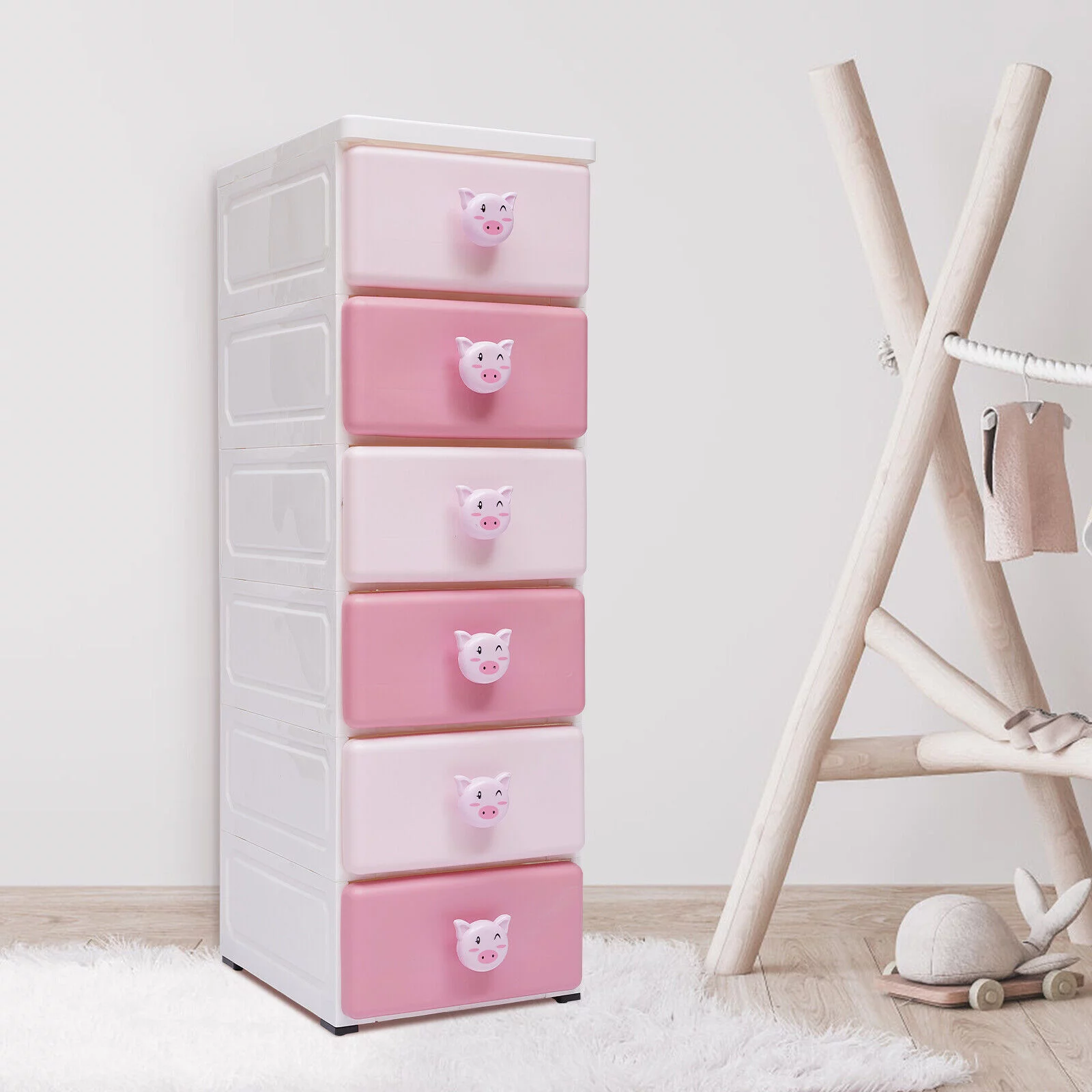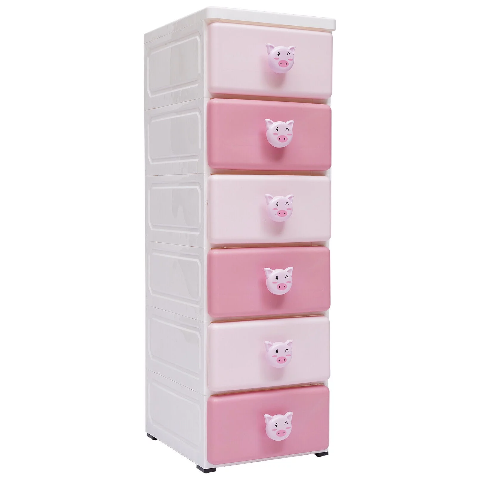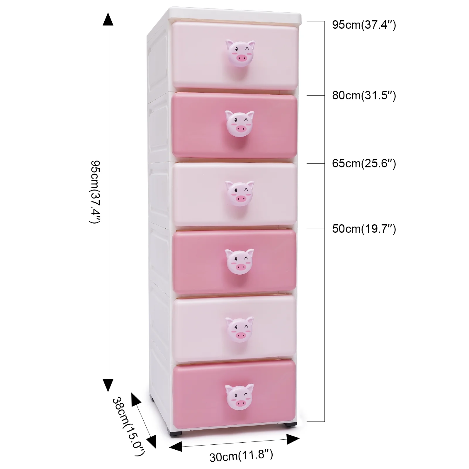 DENEST 5 Layers 6 Drawers Dressing Table Storage Cabinet Chest Organizer with Wheels Plastic Waterproof(Pink)
