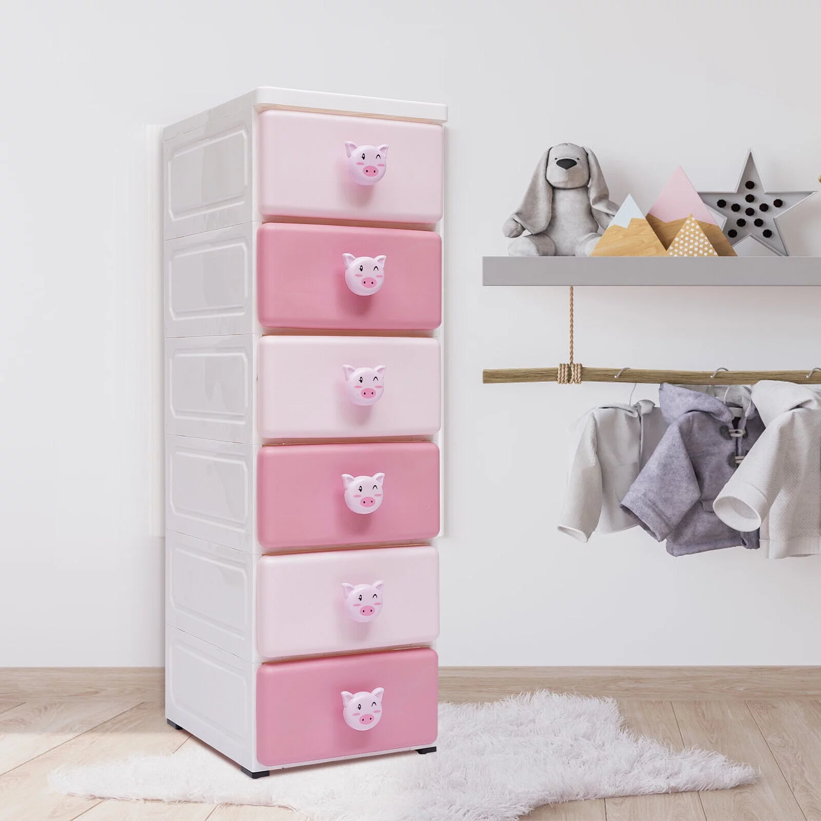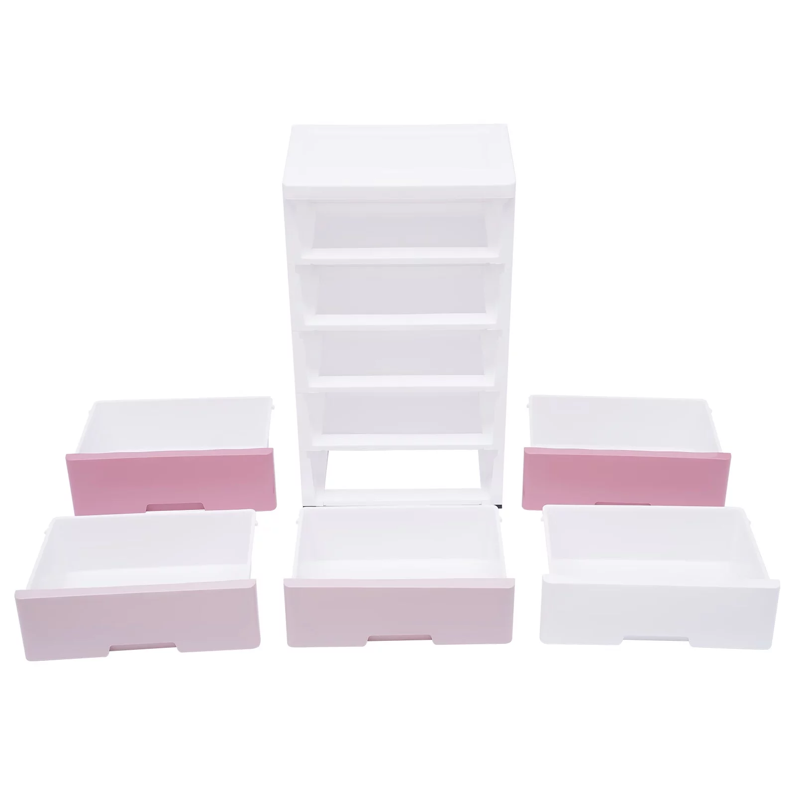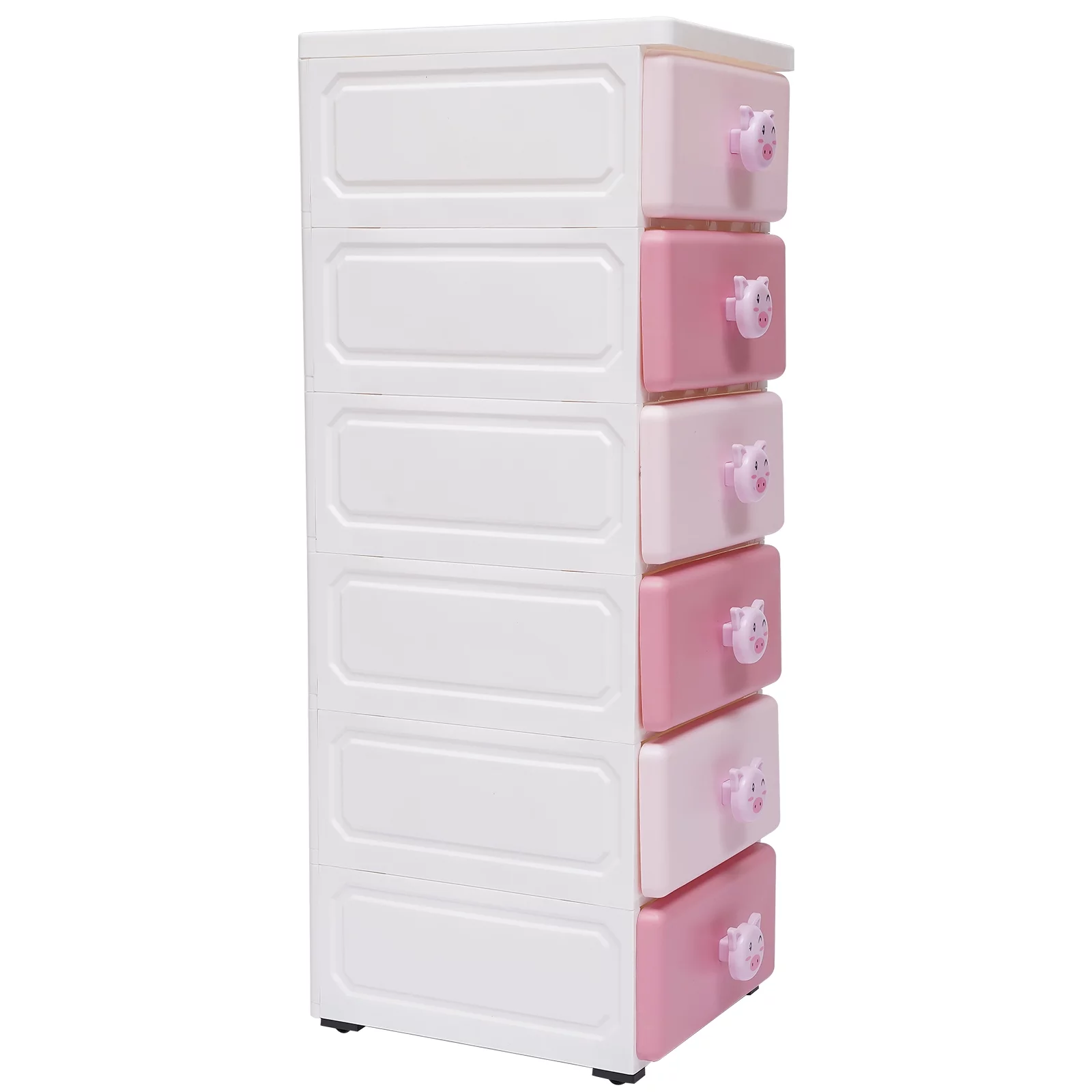 DENEST 5 Layers 6 Drawers Dressing Table Storage Cabinet Chest Organizer with Wheels Plastic Waterproof(Pink)