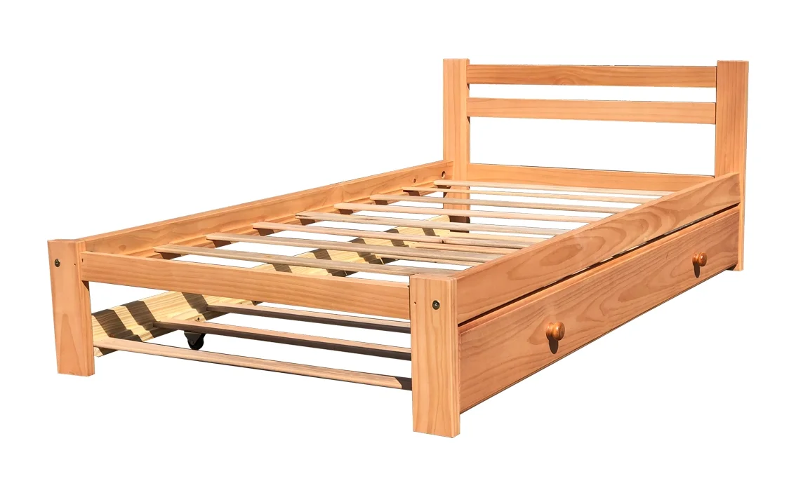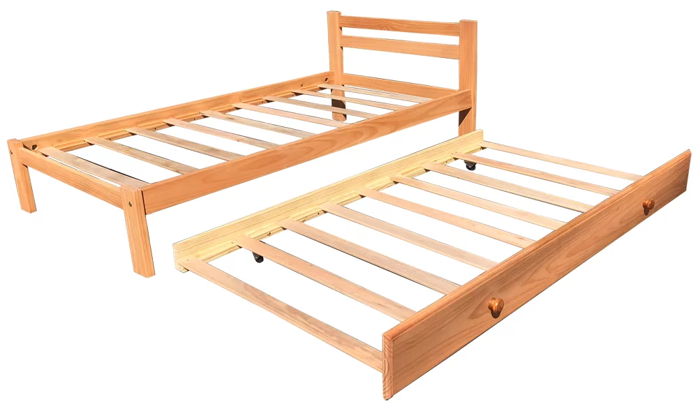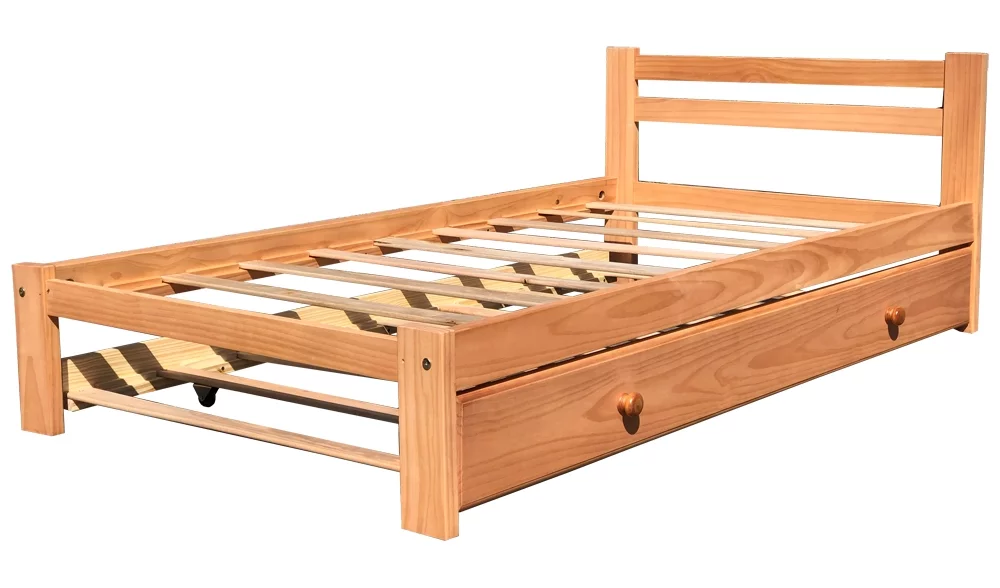 Amazonas Twin Bed & Trundle Solid Pine Wood Honey Pine Finish with Trundle Bed