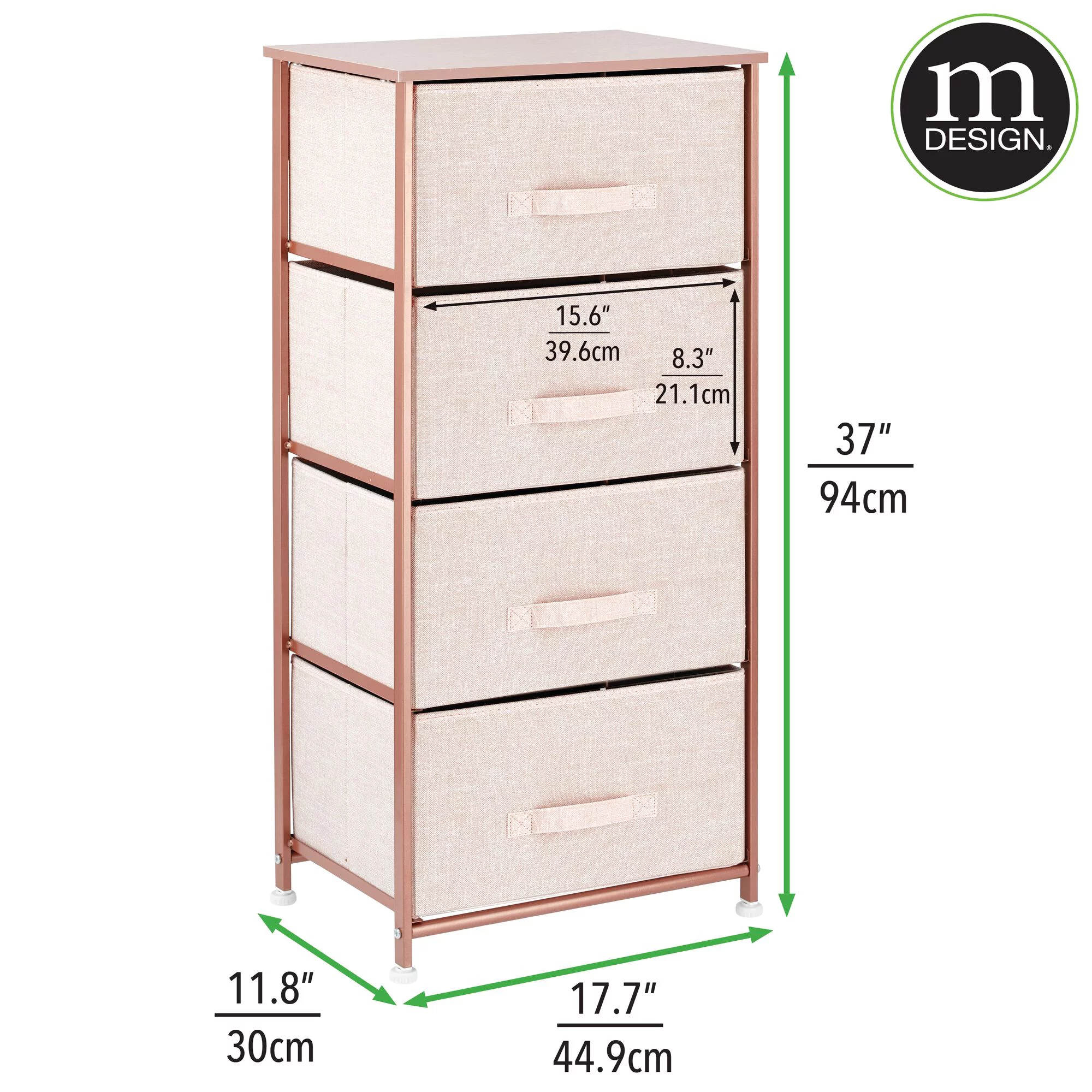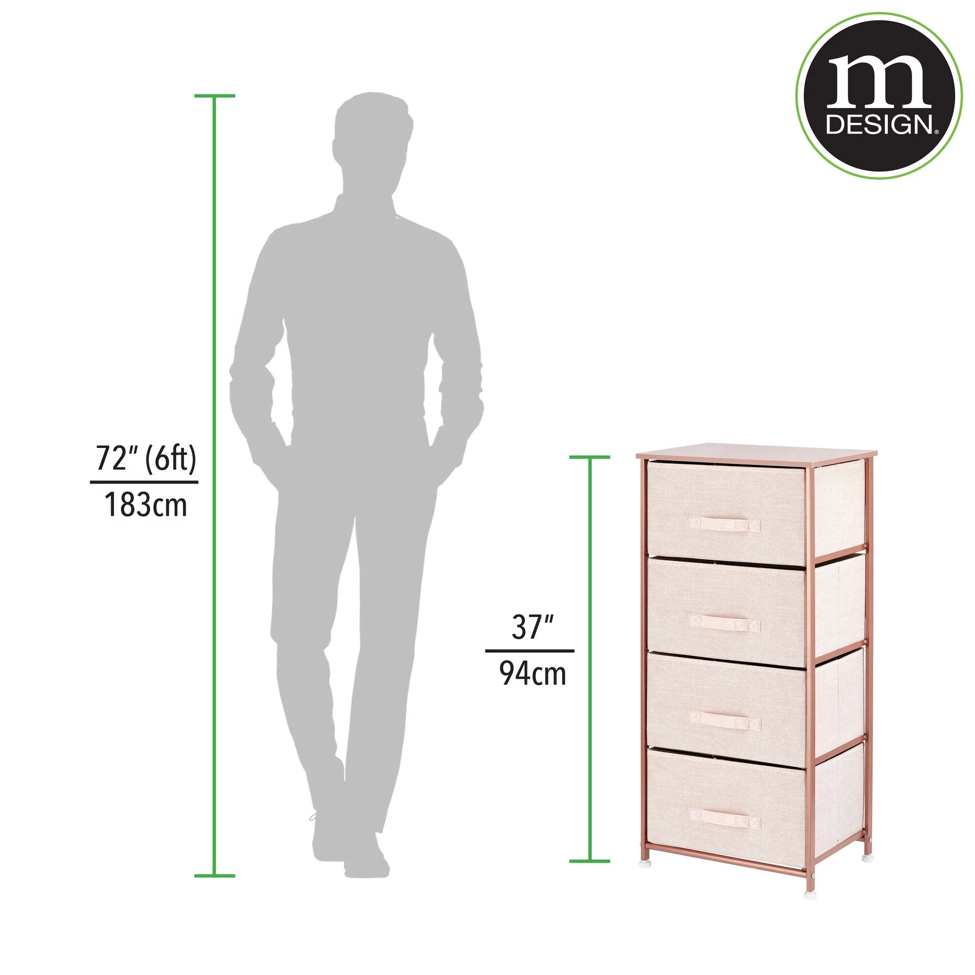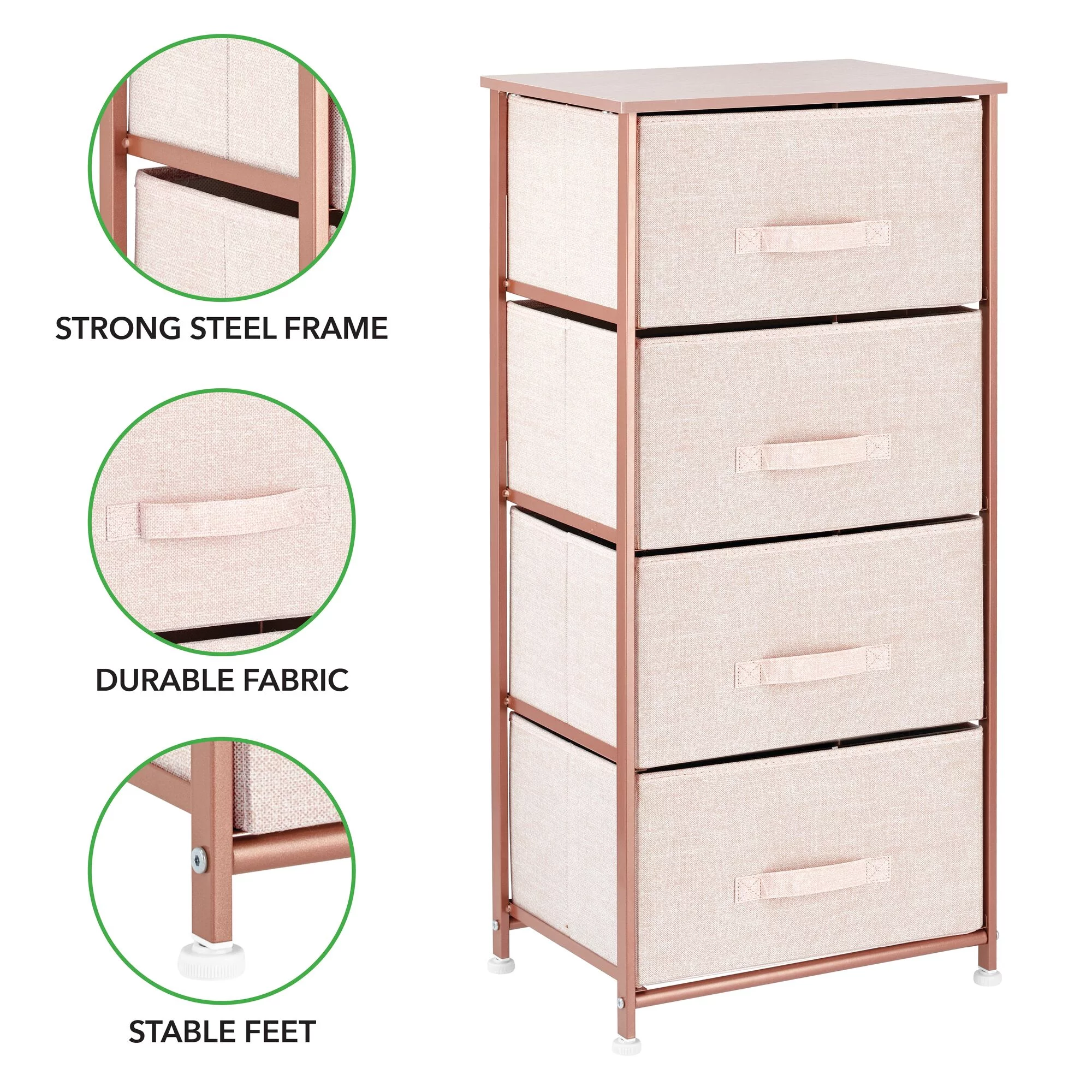 mDesign Tall Dresser Storage Tower Stand, 4 Fabric Drawers - Lt. Pink/Rose Gold