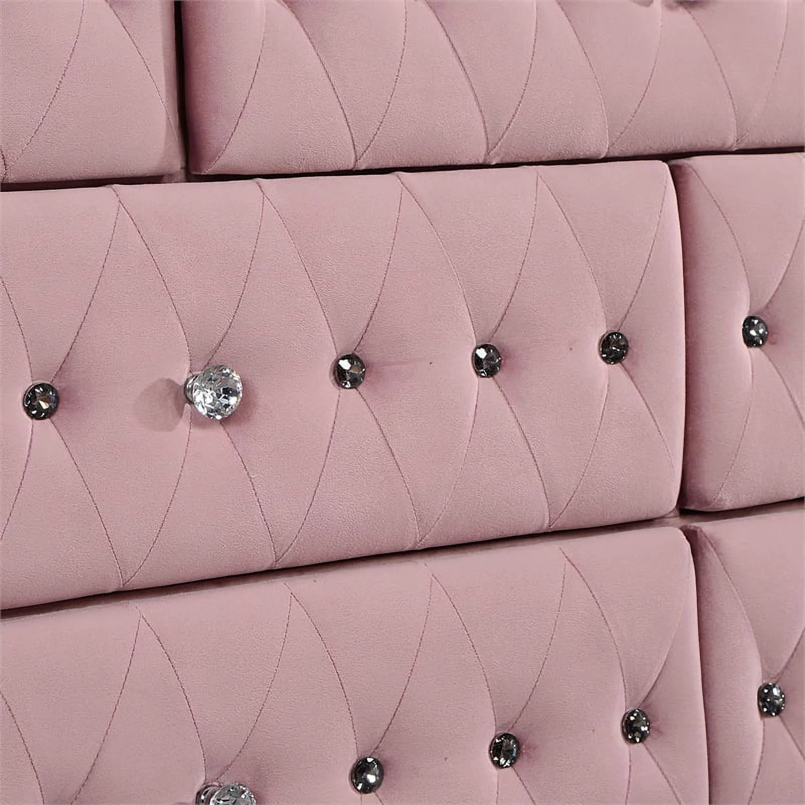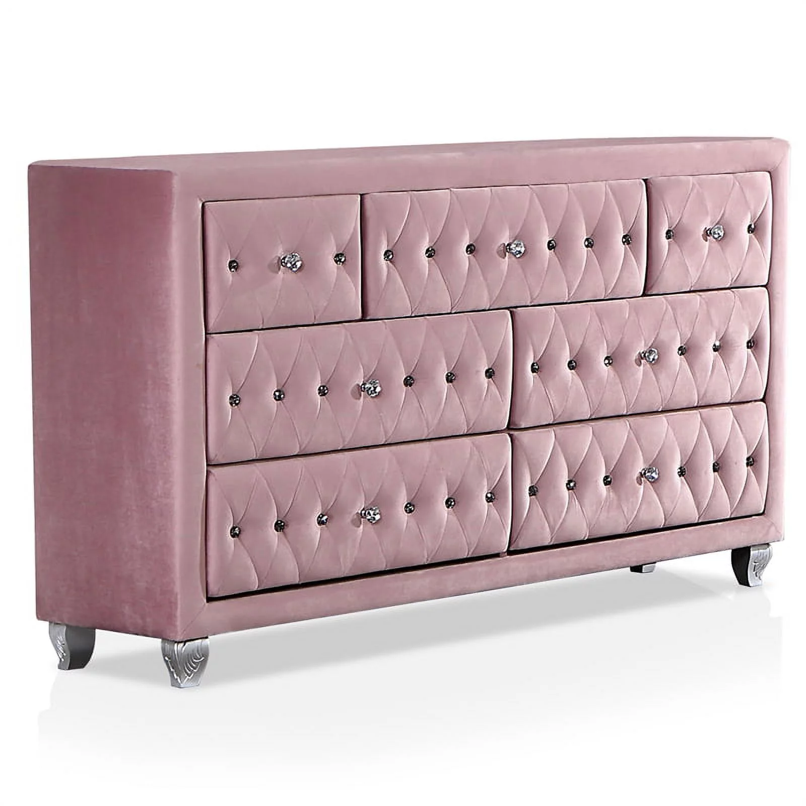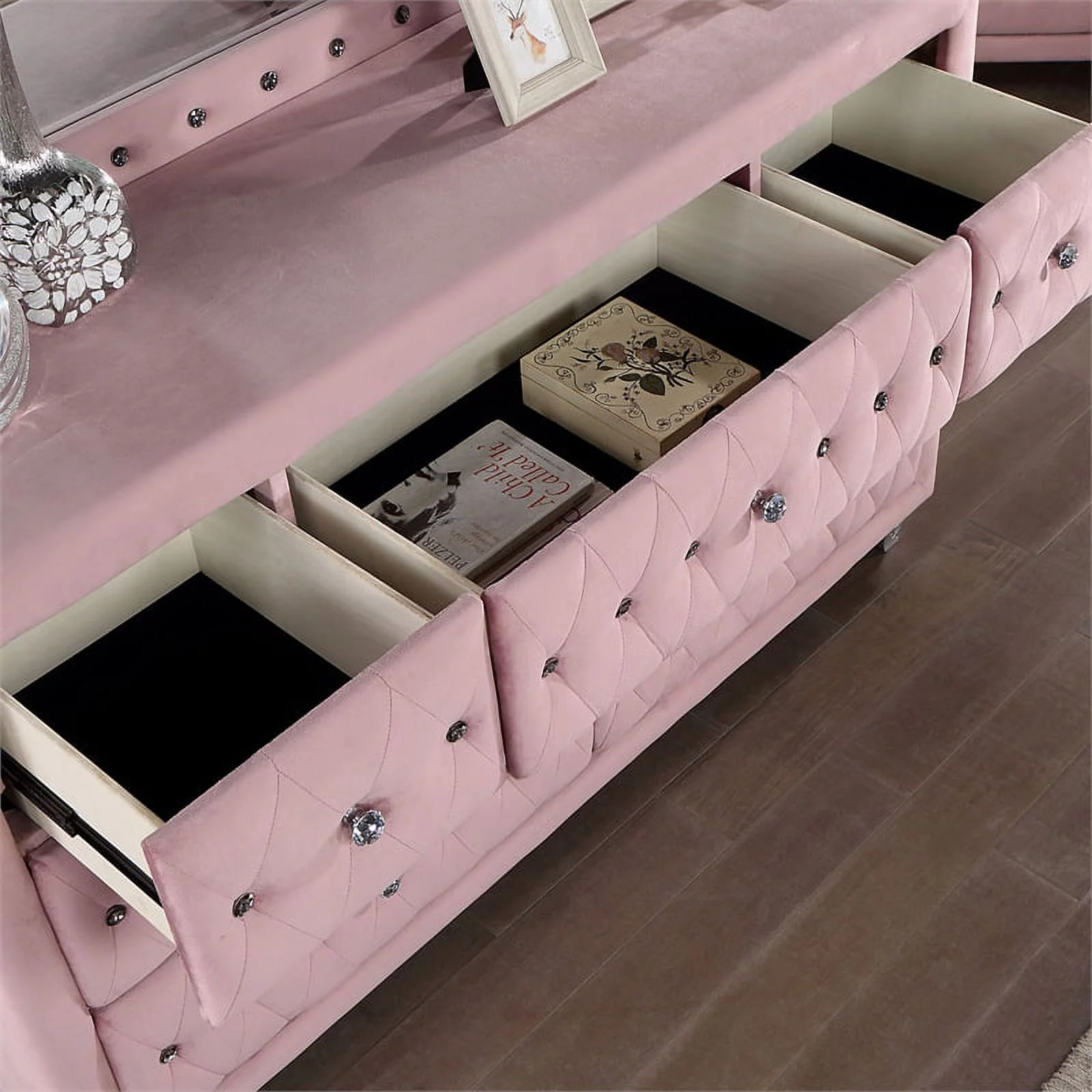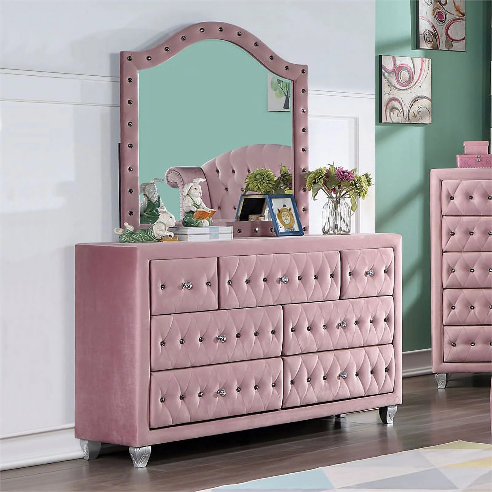 Furniture of America Cyndi Glam Fabric Pink Dresser with Mirror and Care Kit
