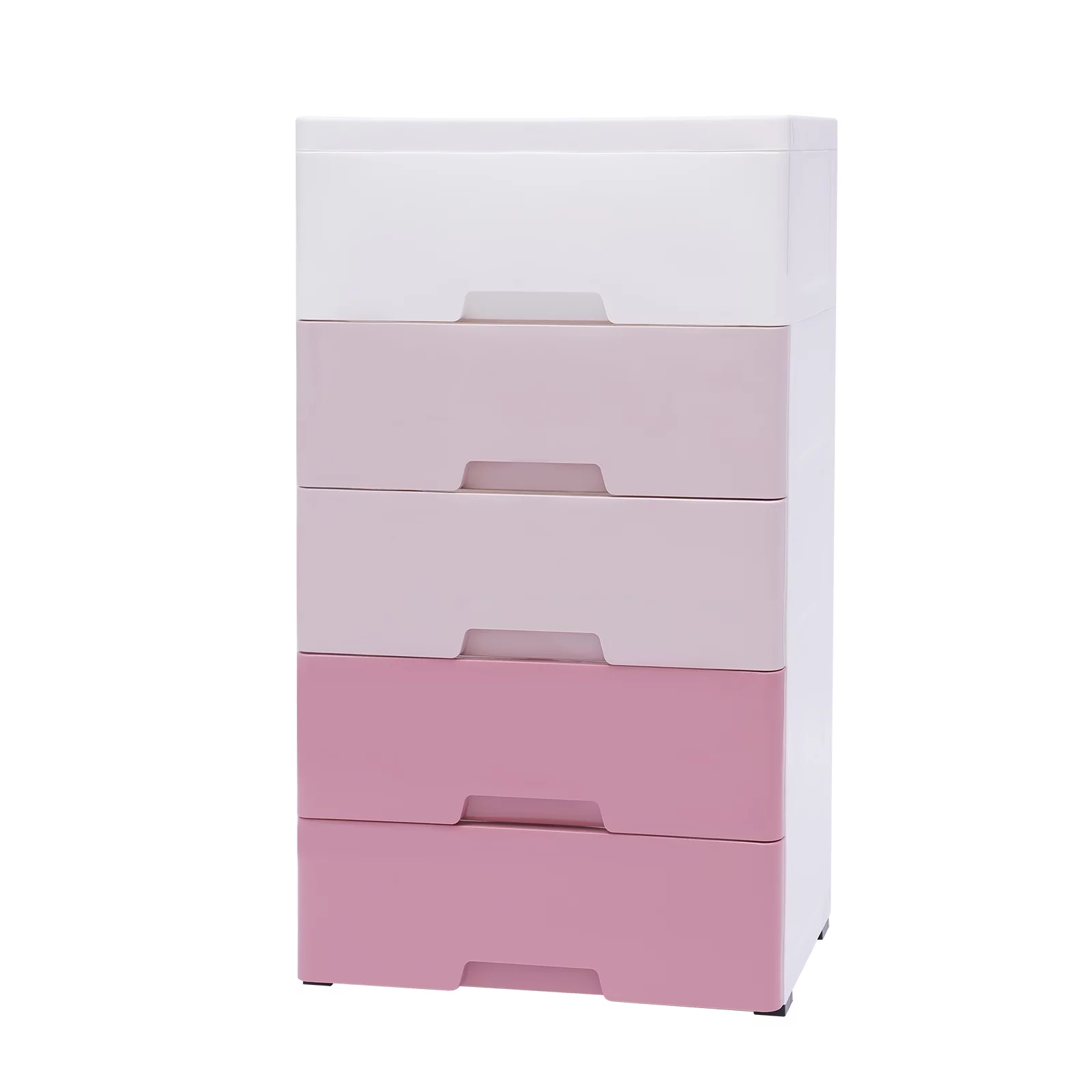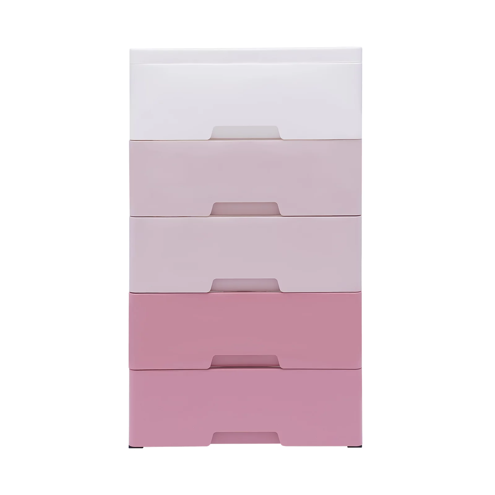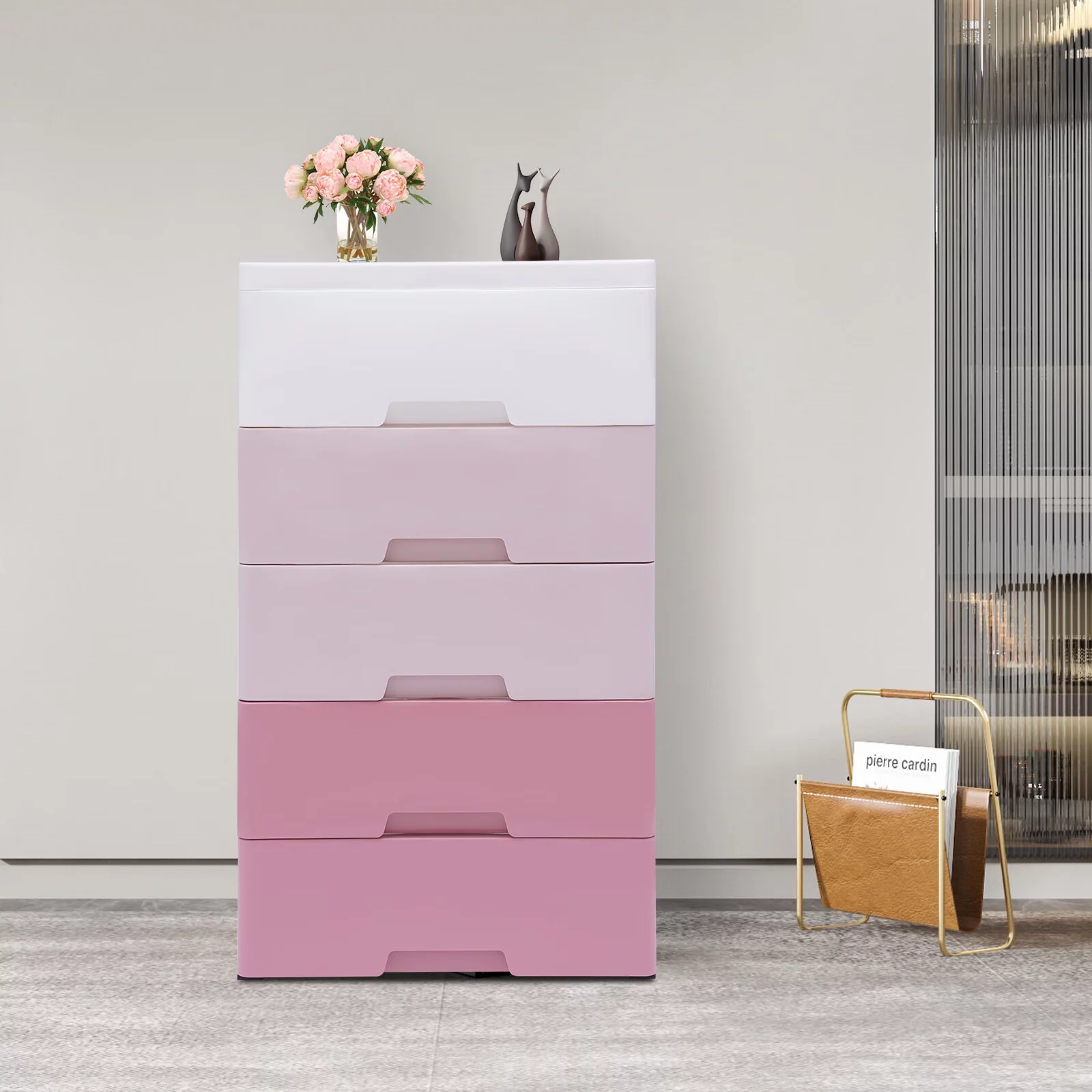 Loyalheartdy 5-Layer Dresser Storage Cabinat Plastic Drawers w/ Wheels Bedside Table Organizer for Clothes Toys (Pink)