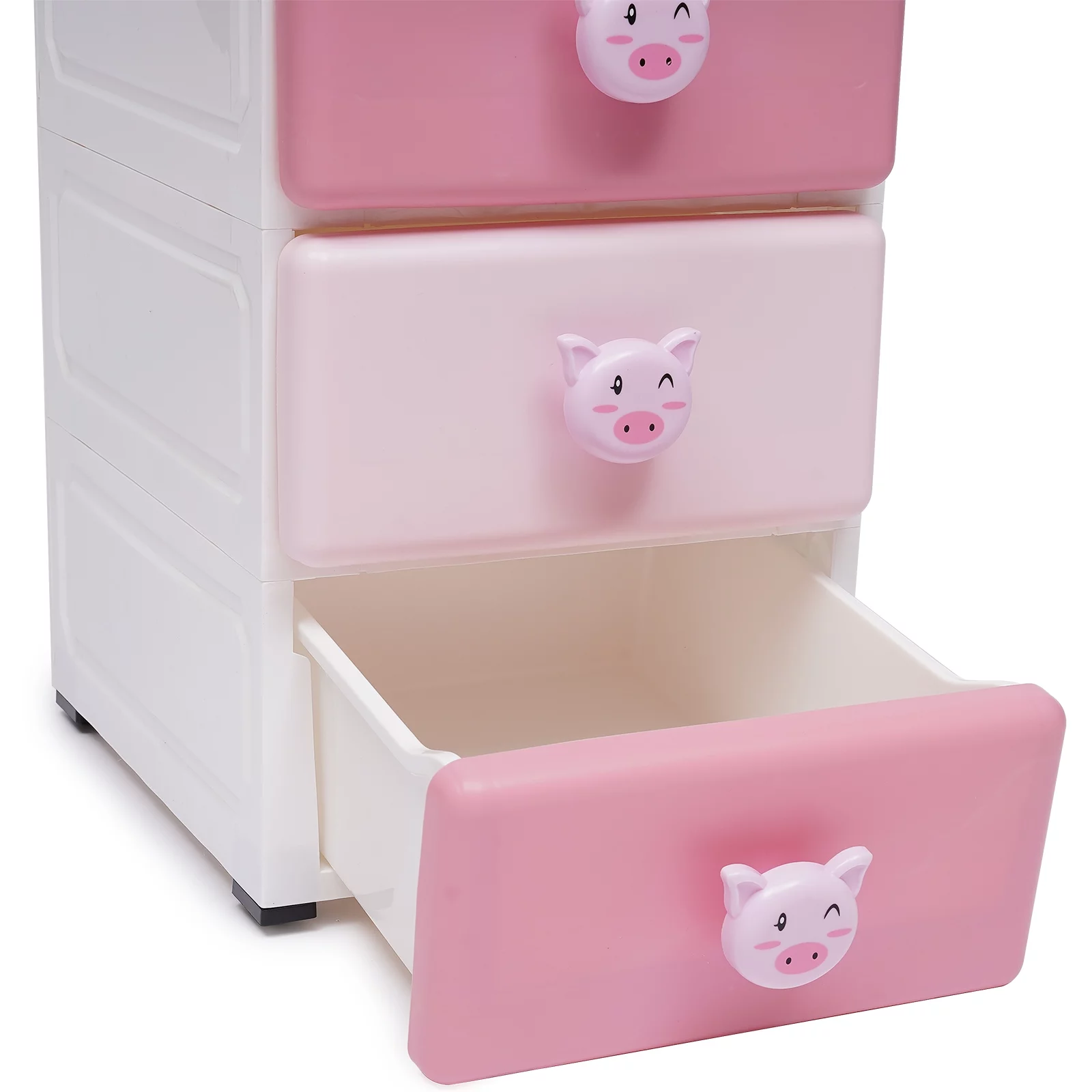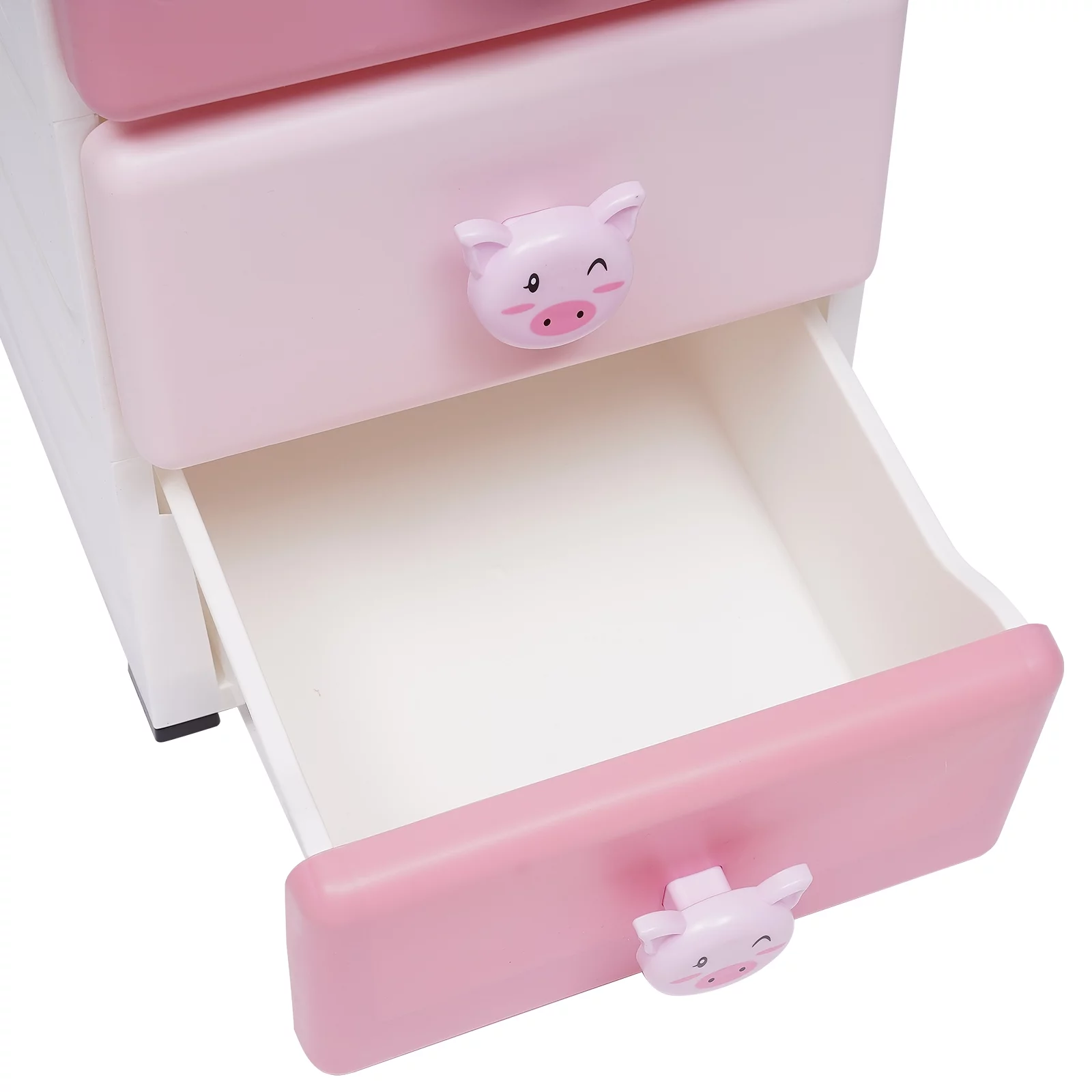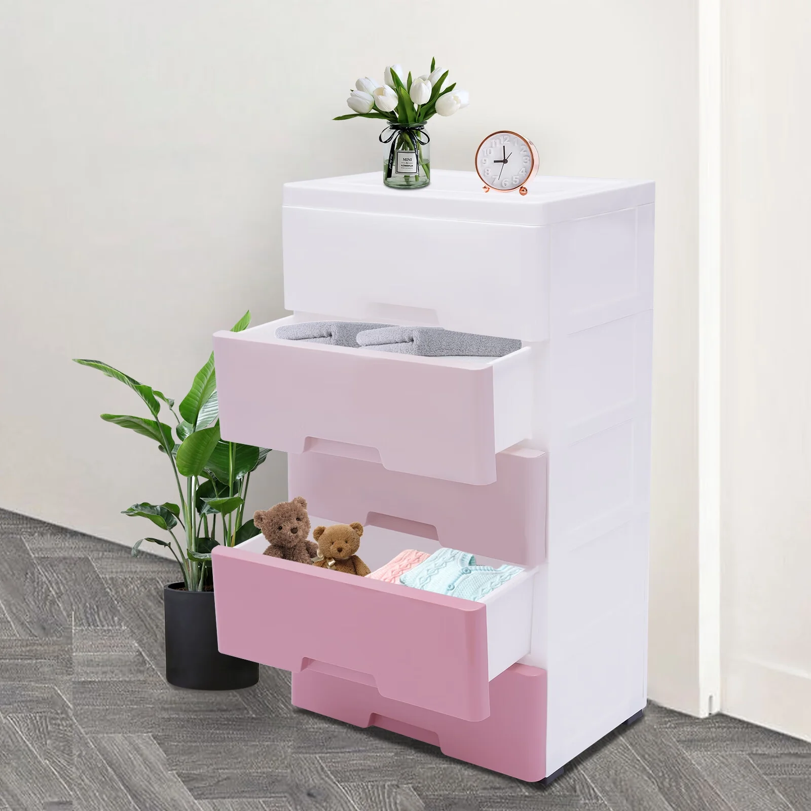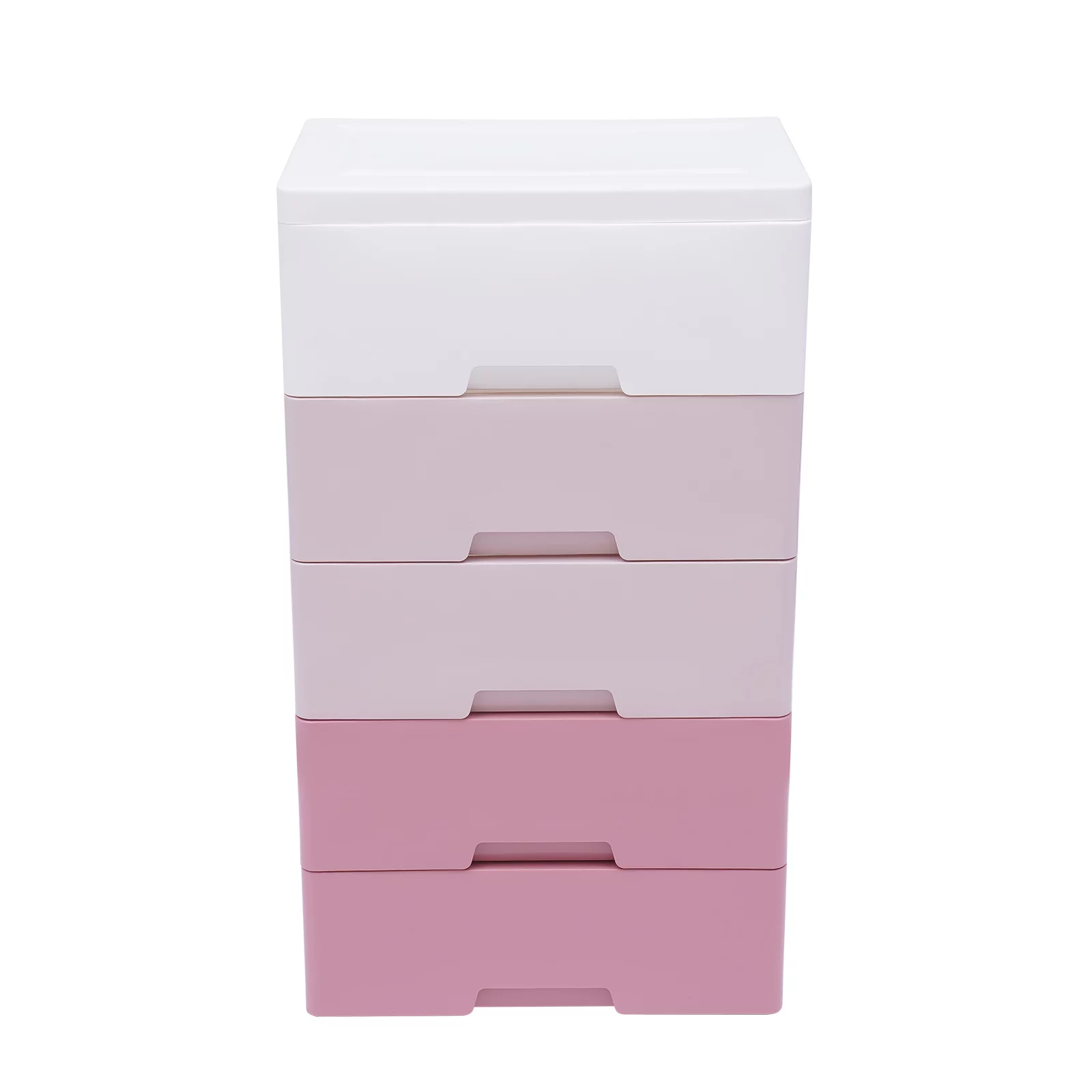 Loyalheartdy 5-Layer Dresser Storage Cabinat Plastic Drawers w/ Wheels Bedside Table Organizer for Clothes Toys (Pink)