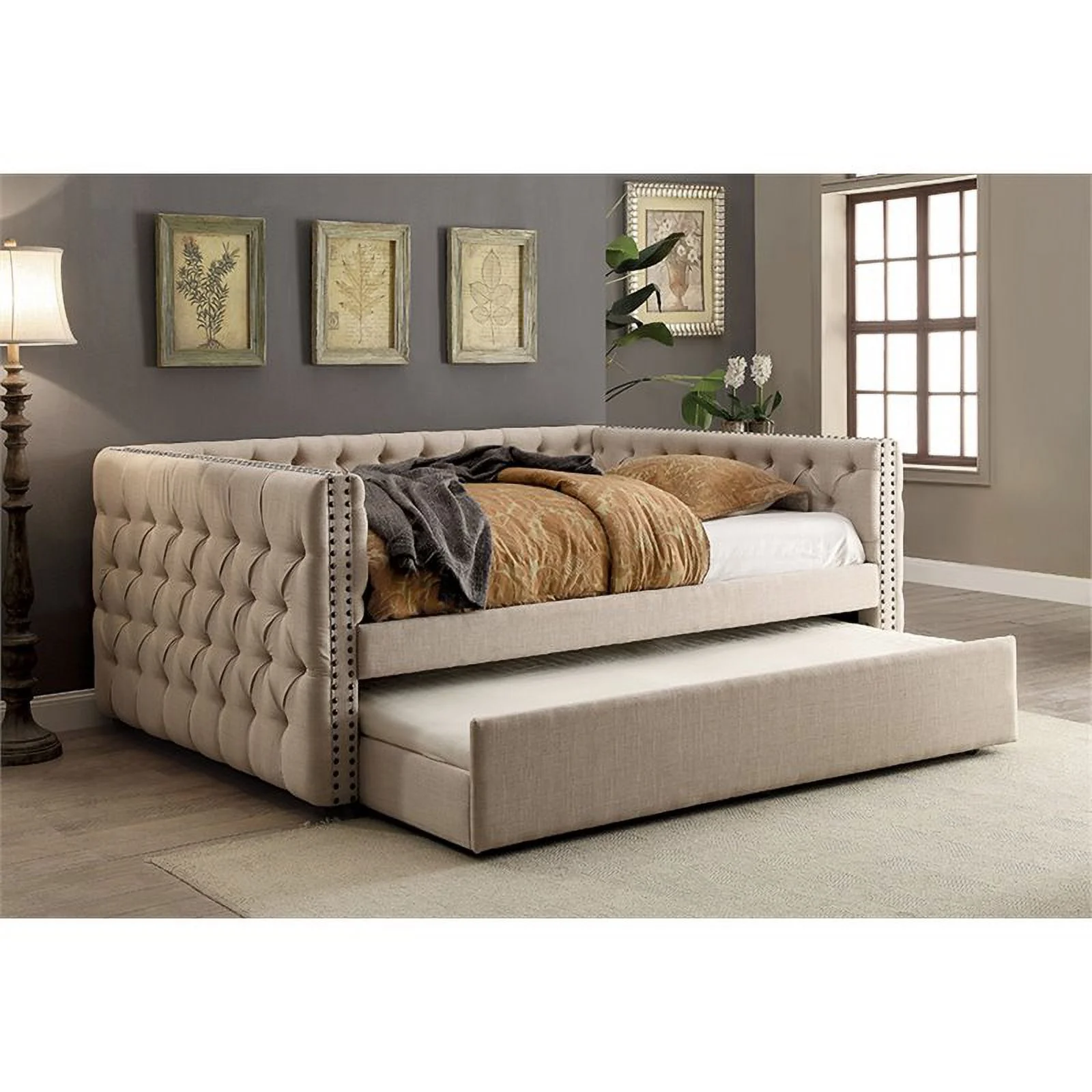 Furniture of America Levina Contemporary Fabric Twin Trundle in Ivory