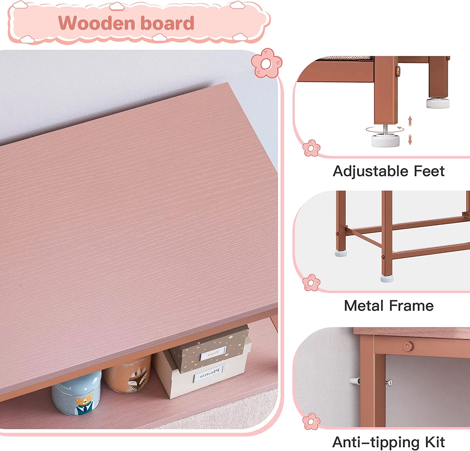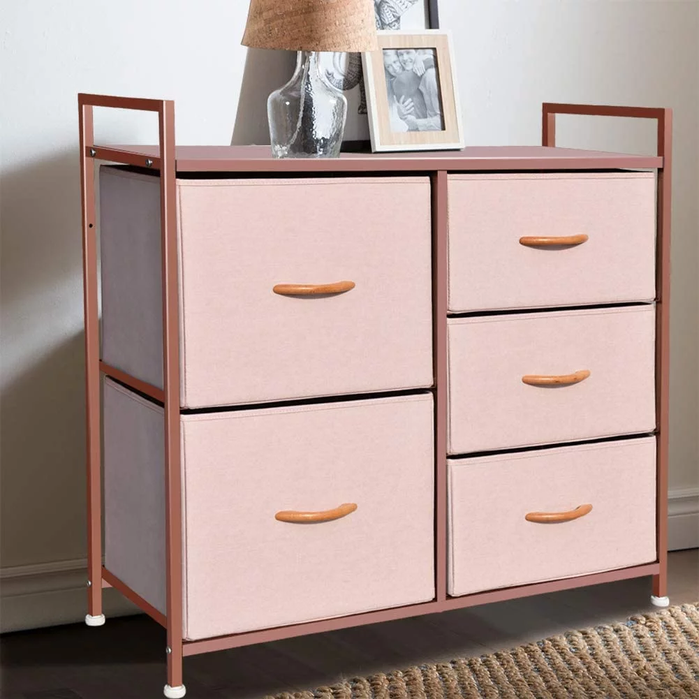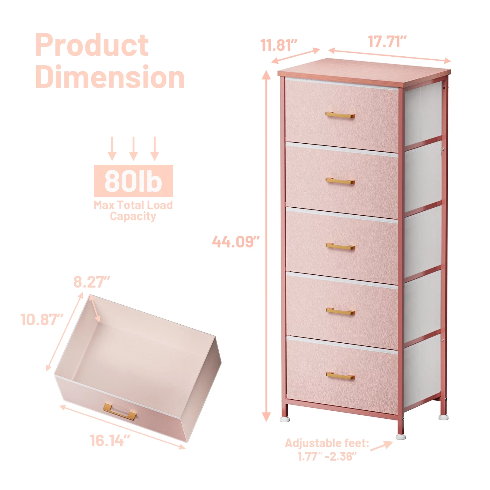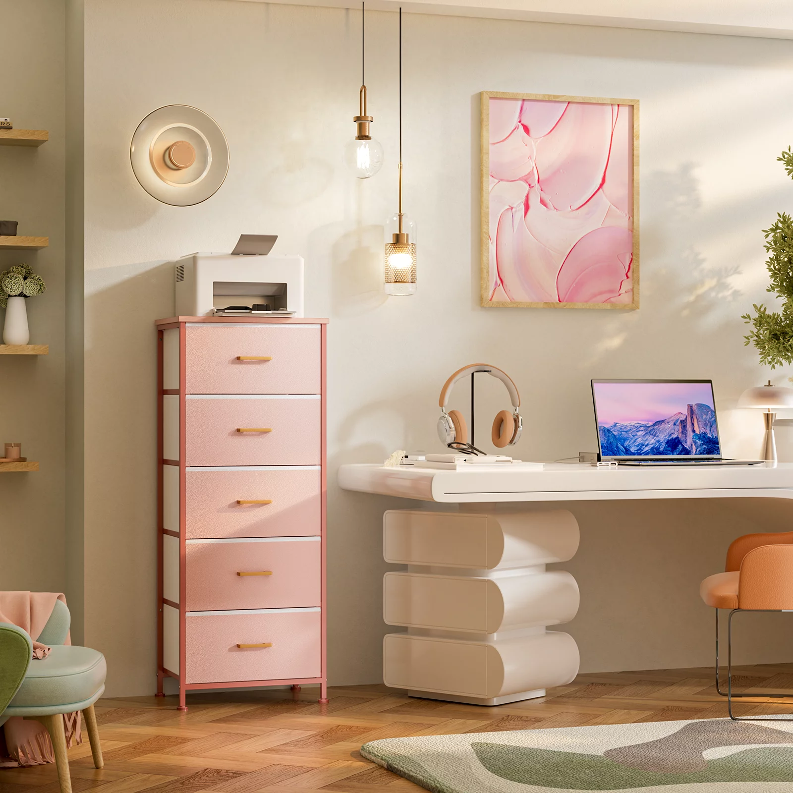 Prime Garden Modern Dresser Storage Tower with 5 Drawers Wood Top,Pink