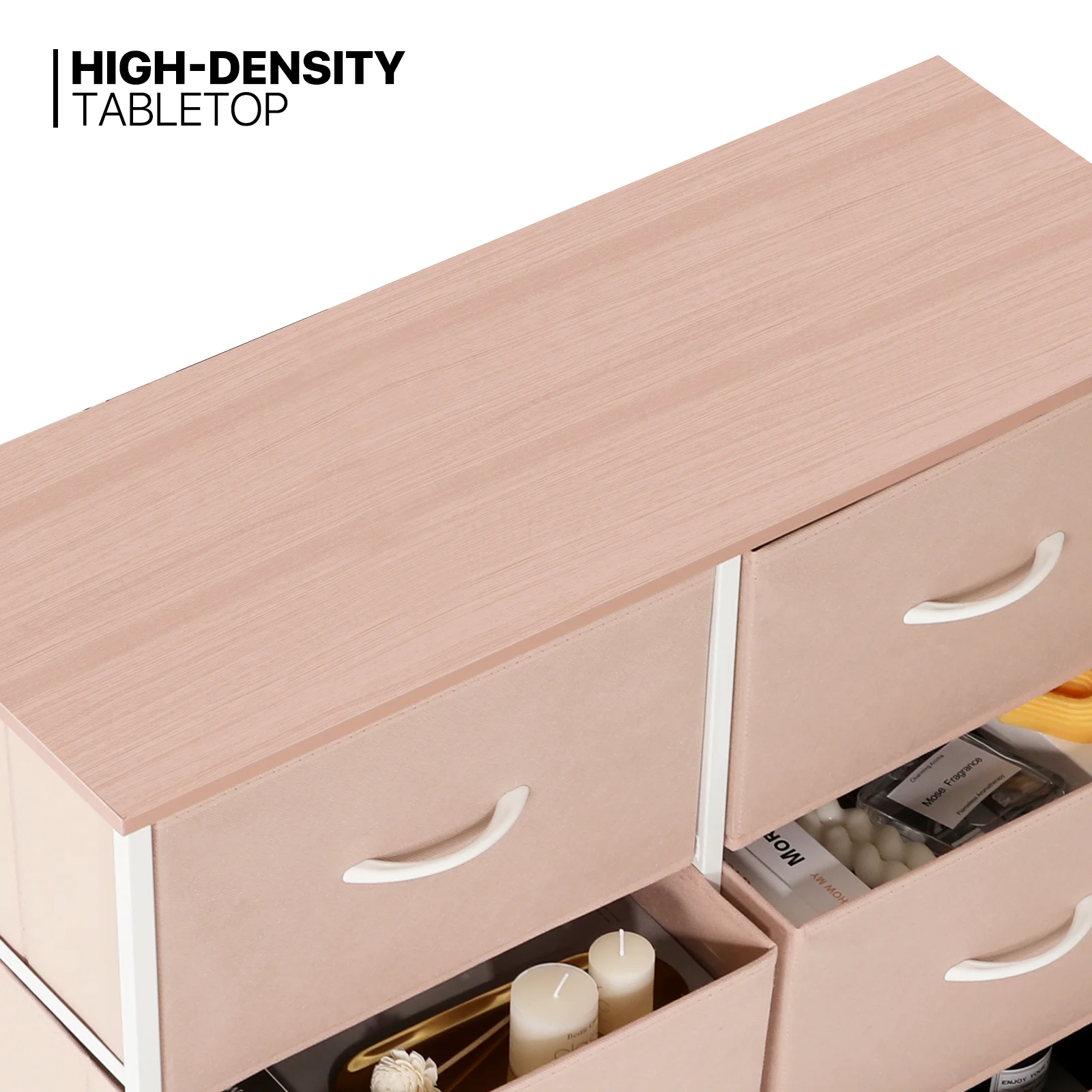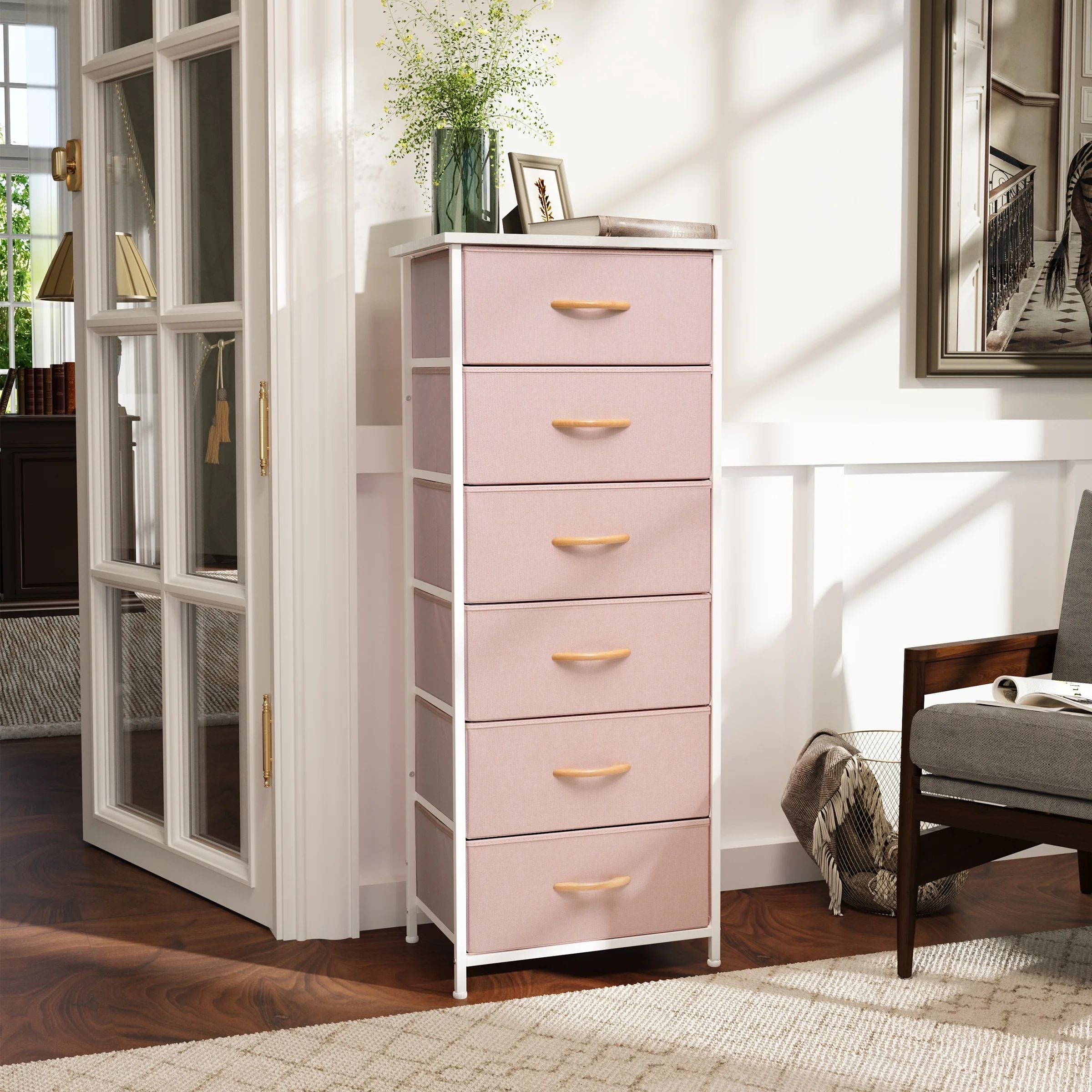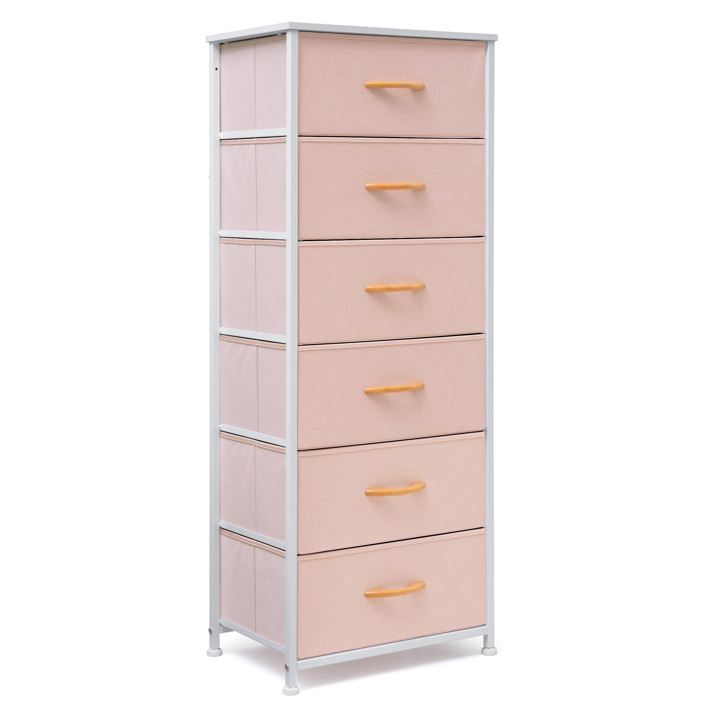 VREDHOM 6 Drawers Vertical Dresser Storage Tower Pink Textured Light Wood