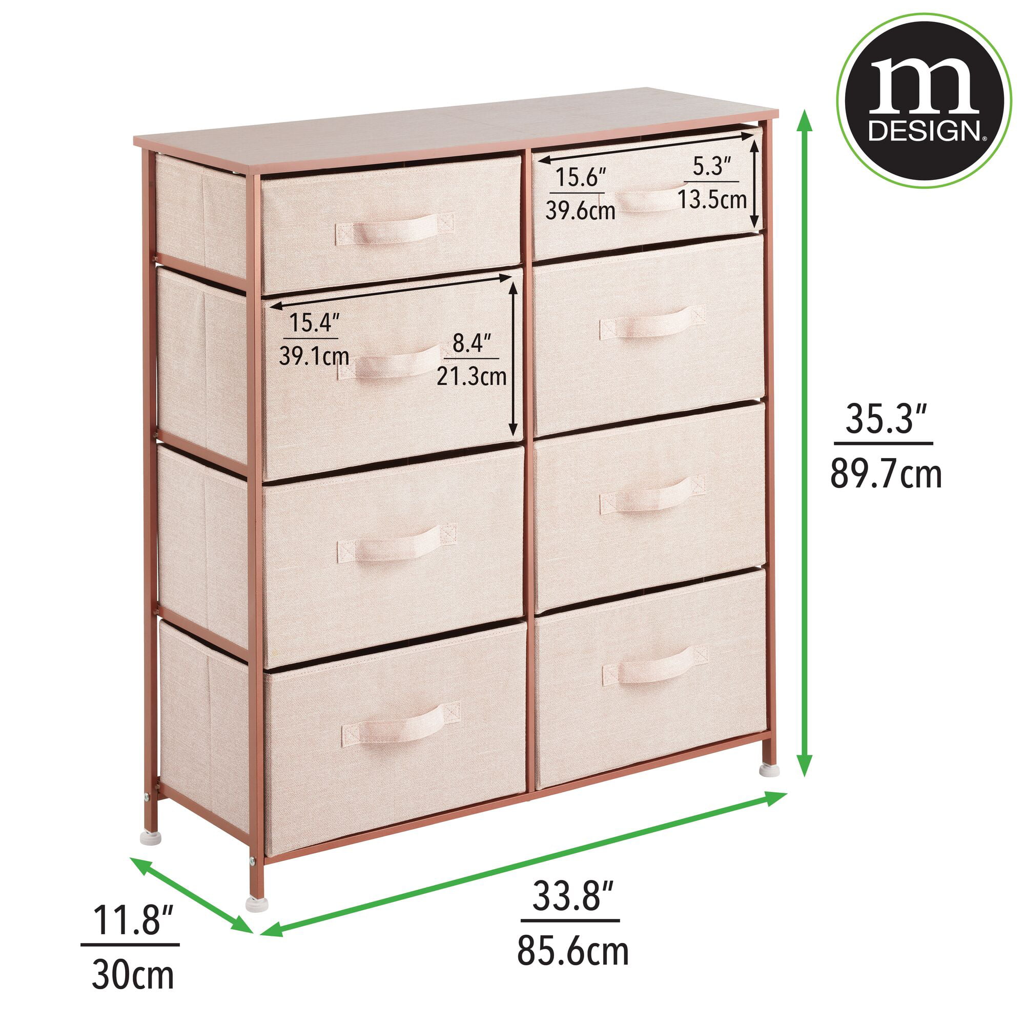 mDesign Tall Storage Dresser Furniture, 8 Slim Fabric Drawers, Lt Pink/Rose Gold