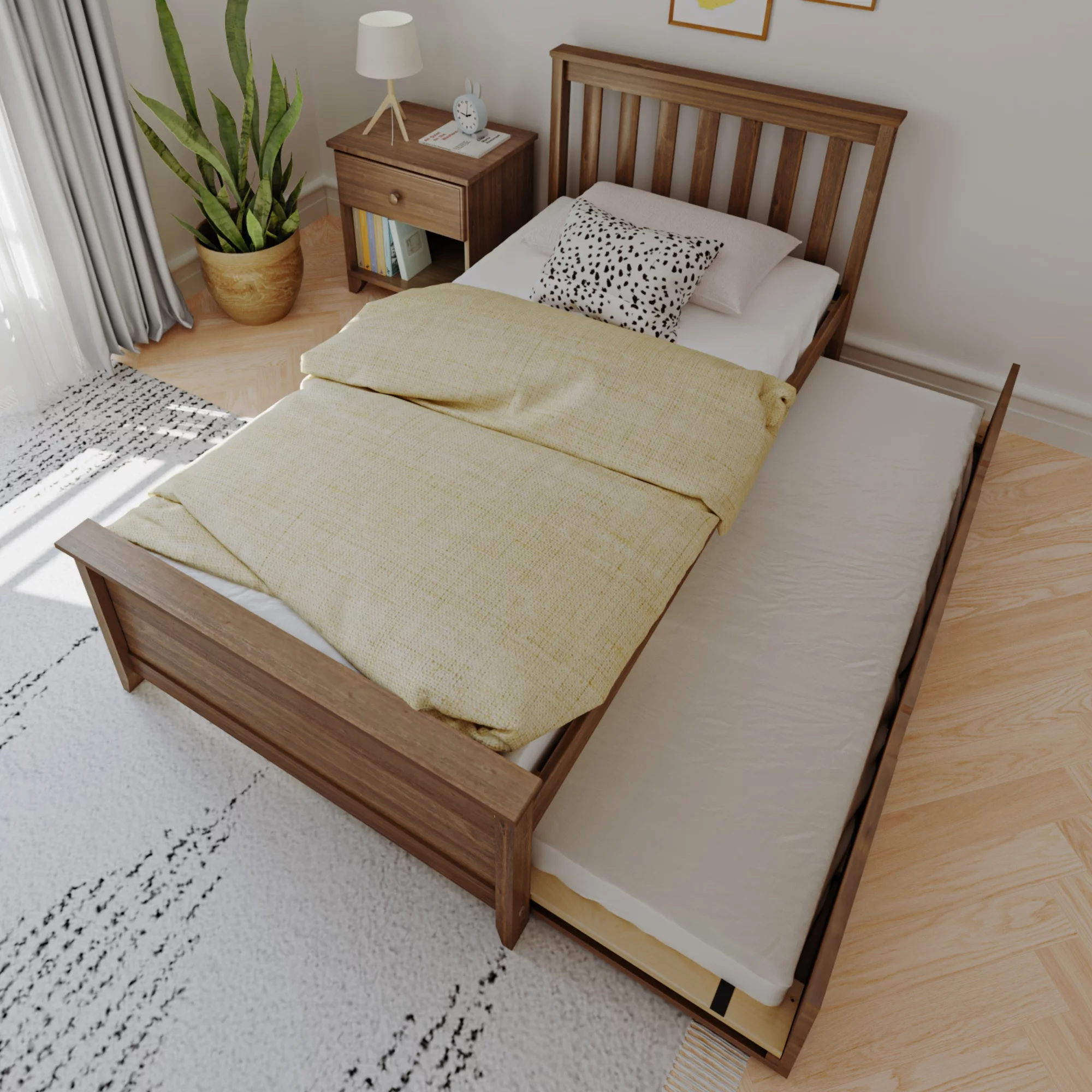Max & Lily Twin Bed Frame with Trundle, Classic Solid Wood Platform Bed with Storage, Walnut