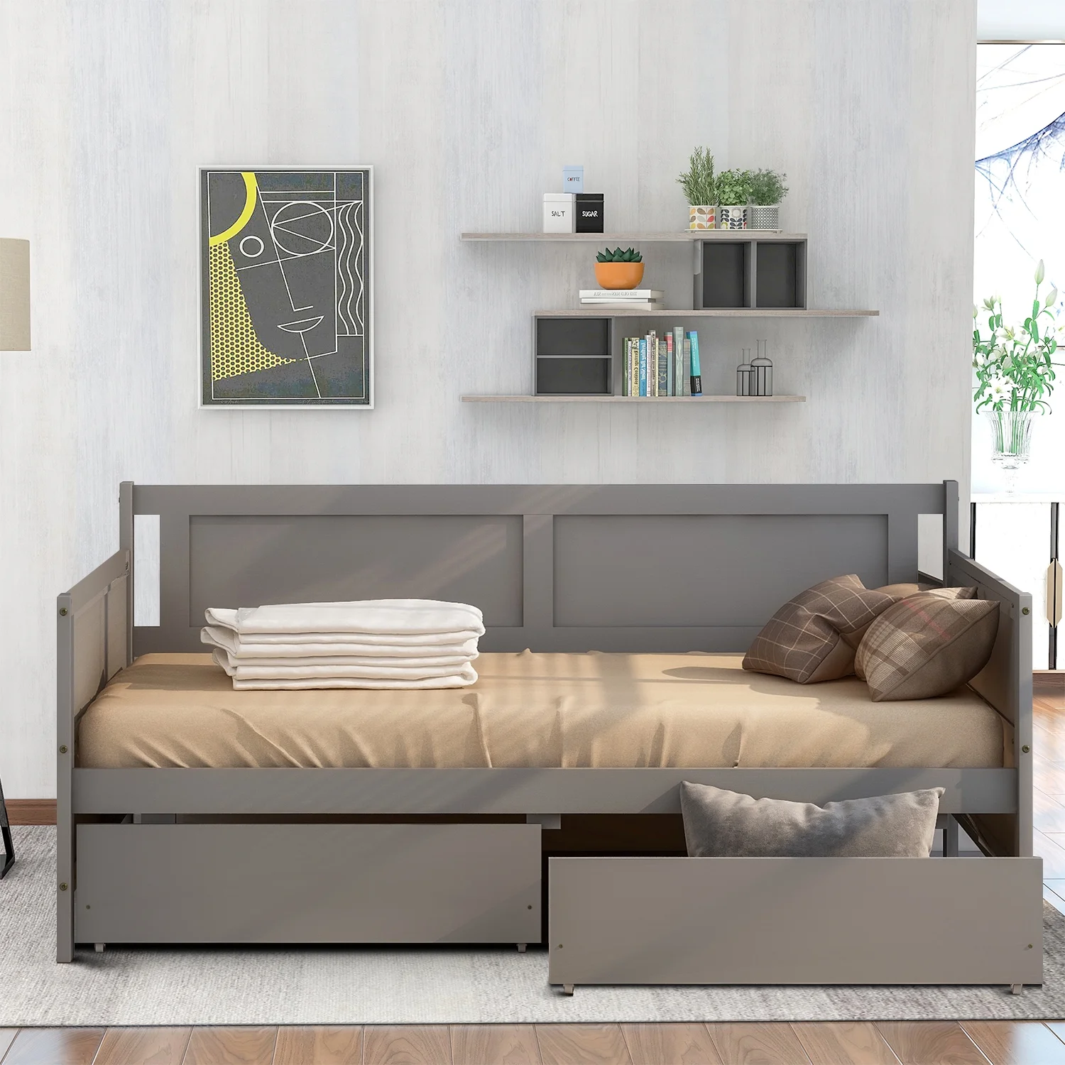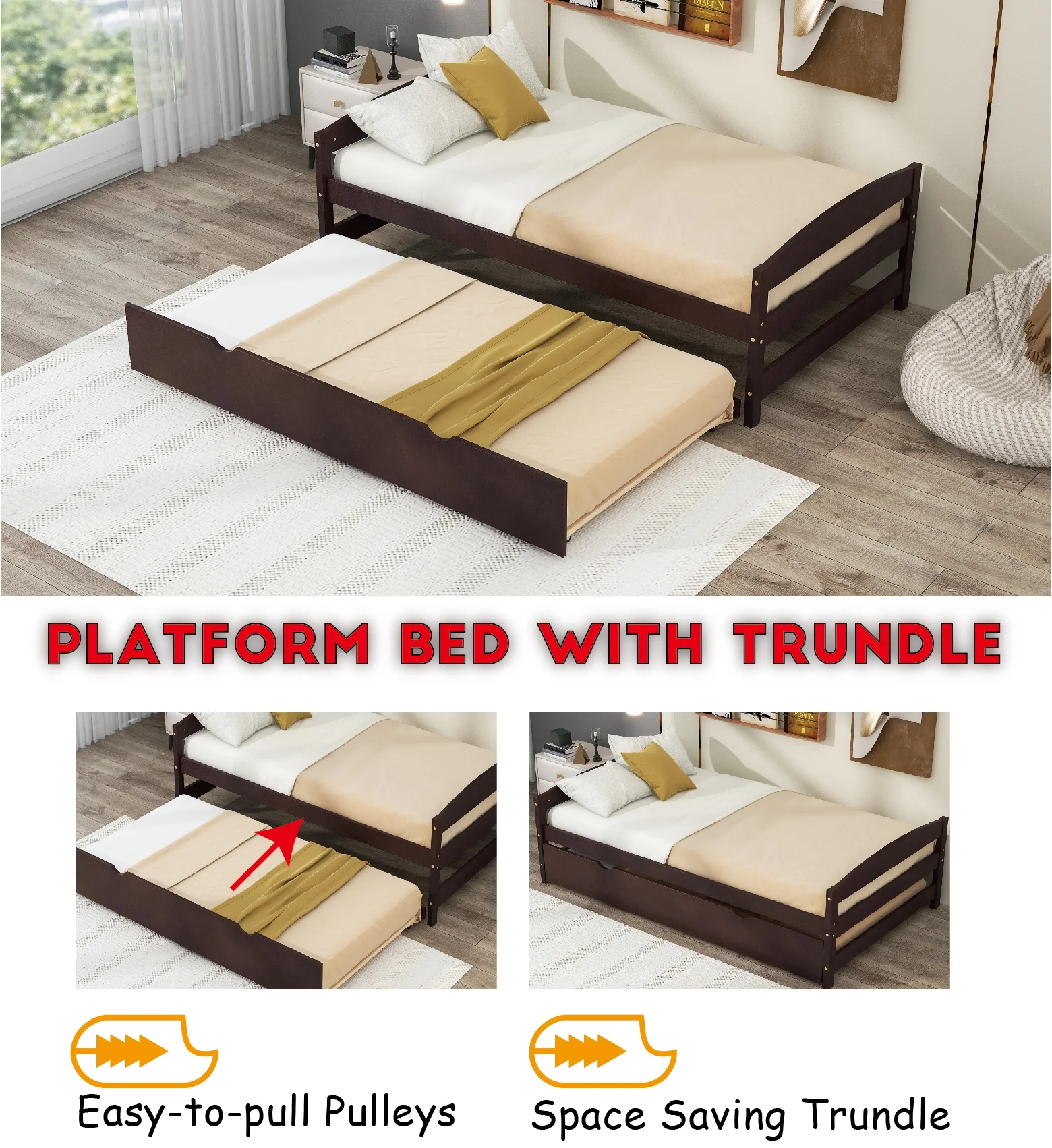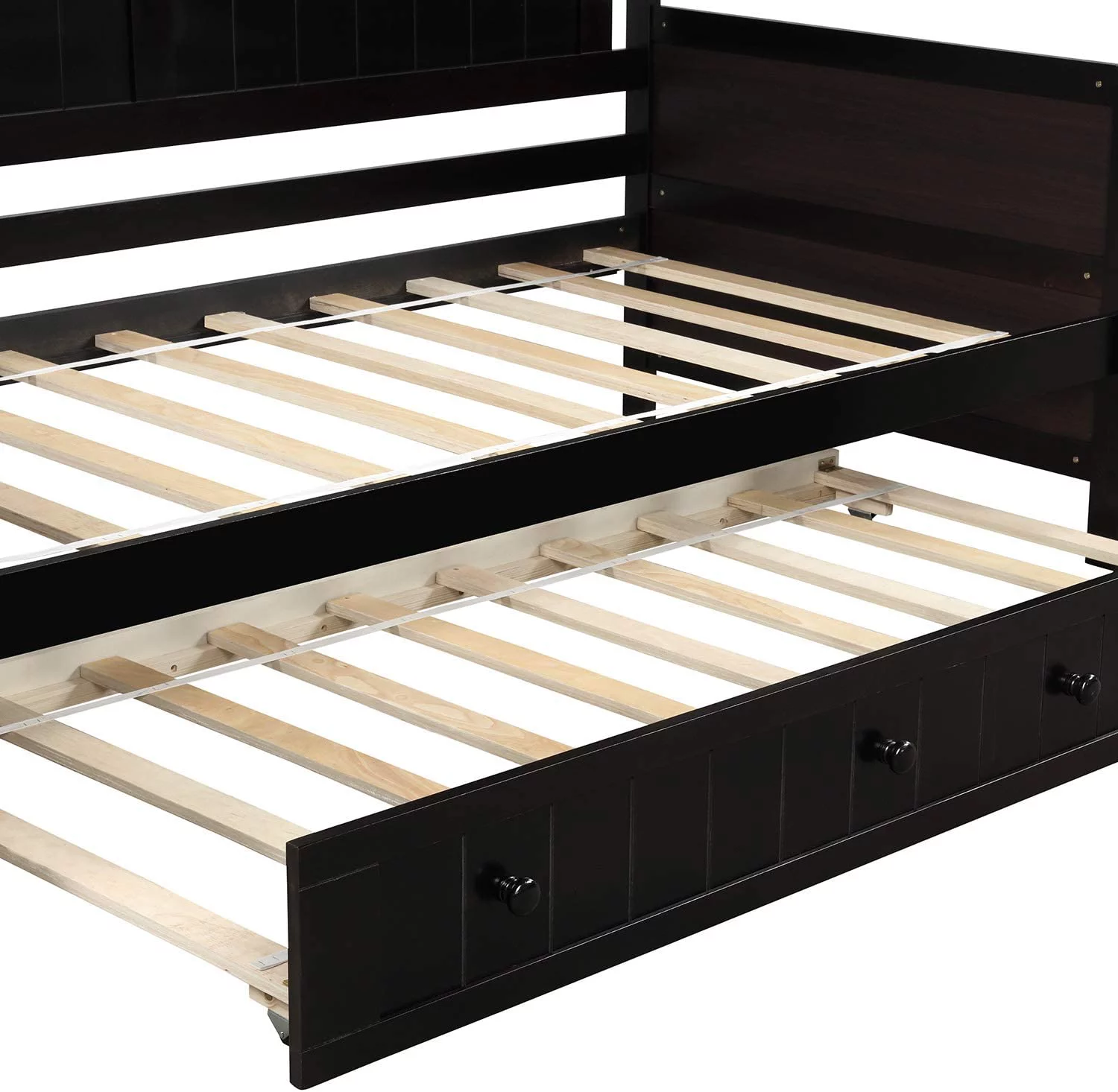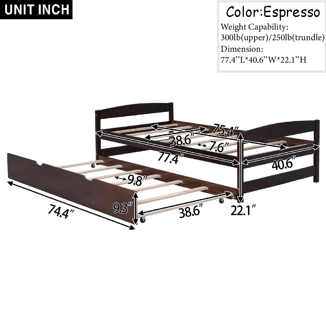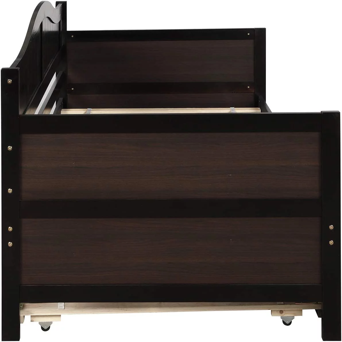 Modern Solid Wood Daybed, Multifunctional Sofa Bed,Twin Size Bed Frame, Espresso