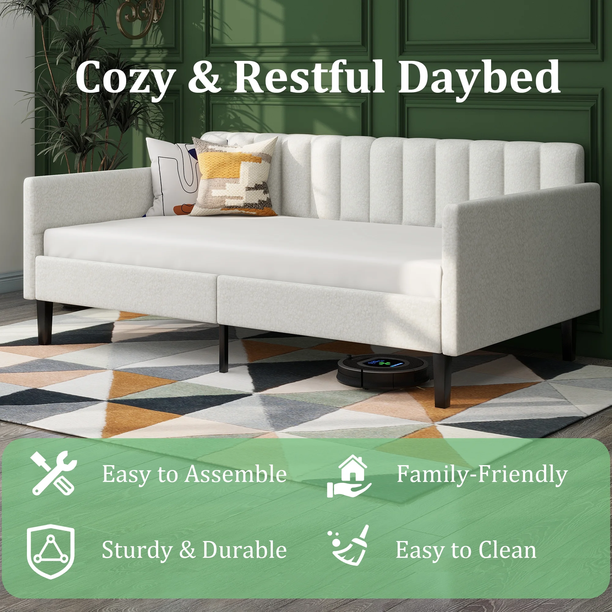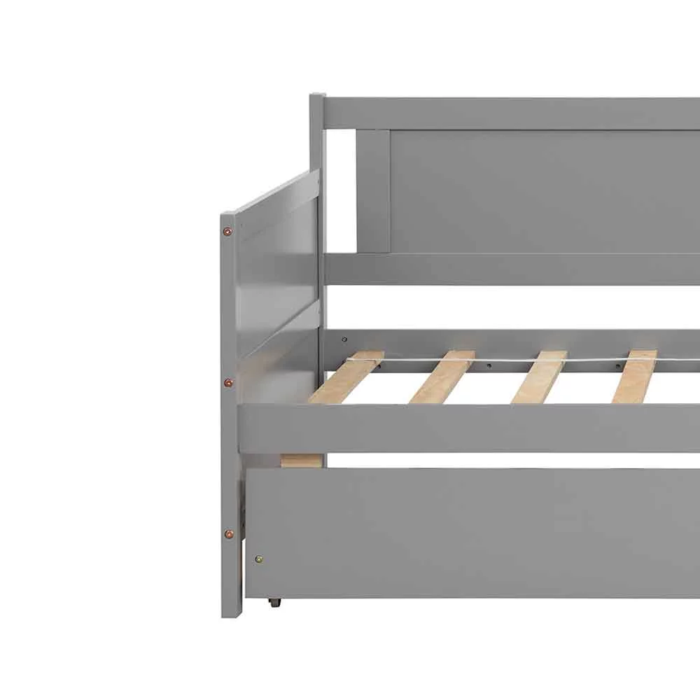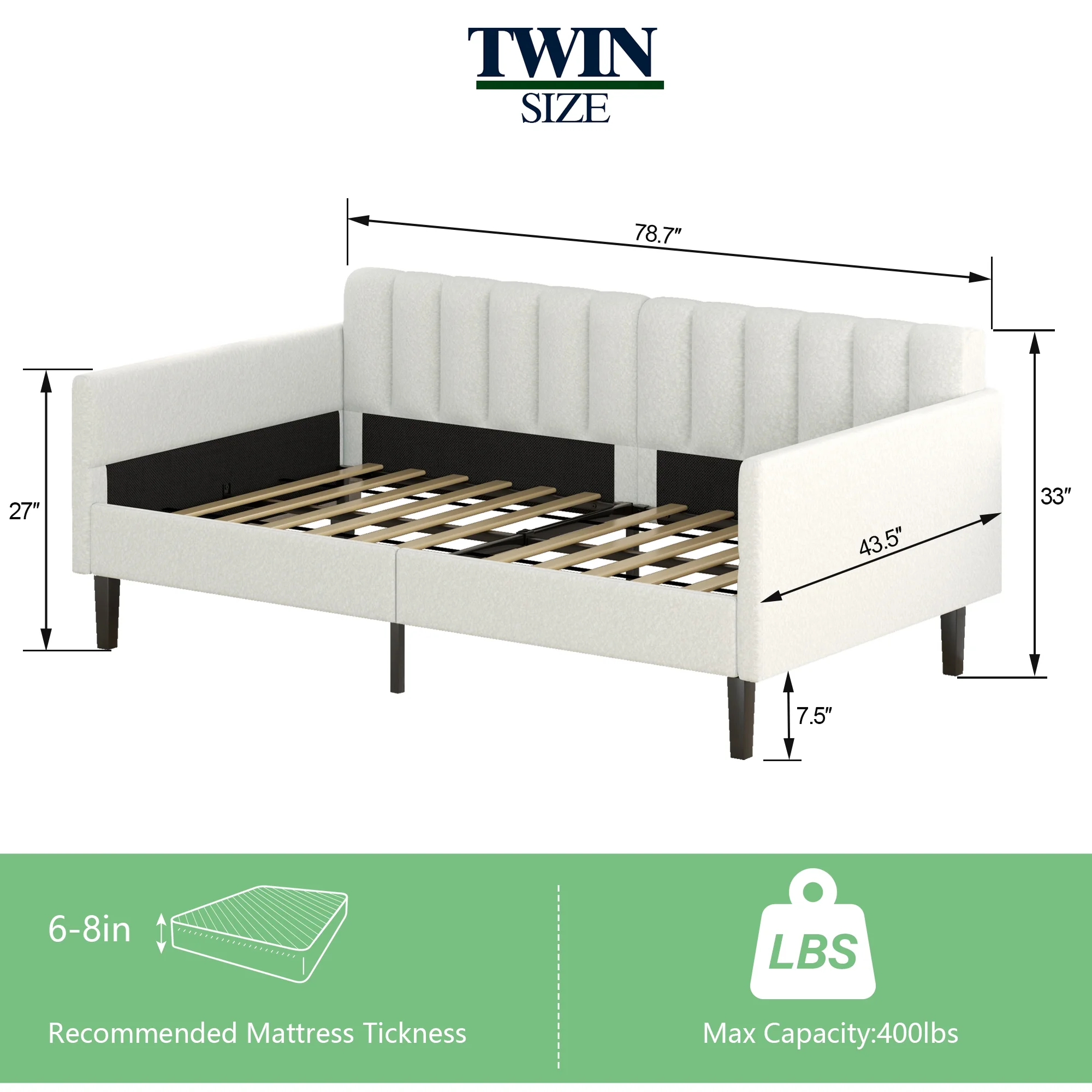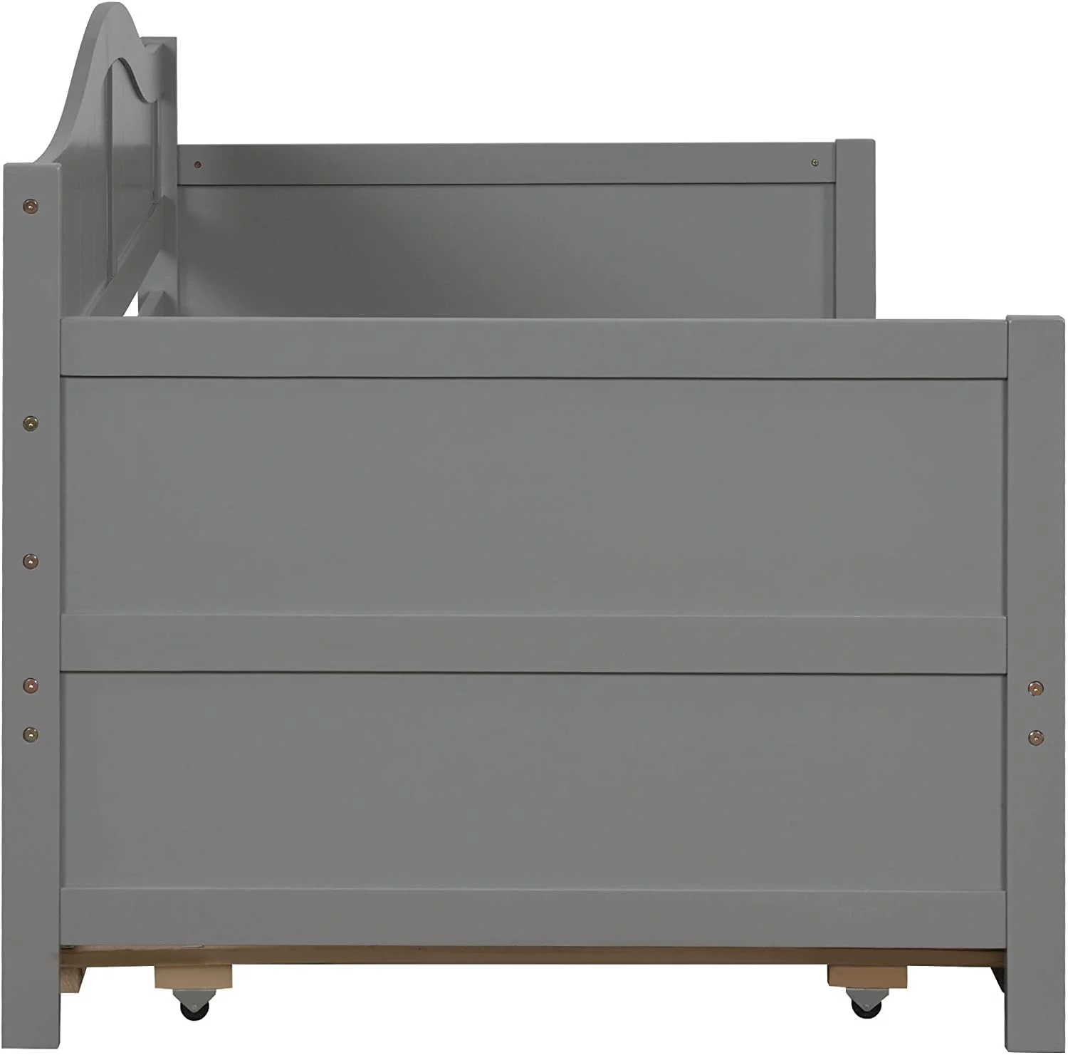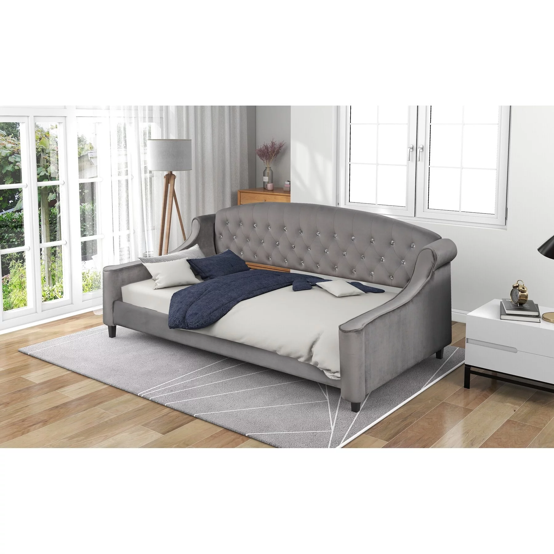 Modern Luxury Daybed with Button Tufted Upholstered Wingback and Tailored Piped Edges, Grey Twin