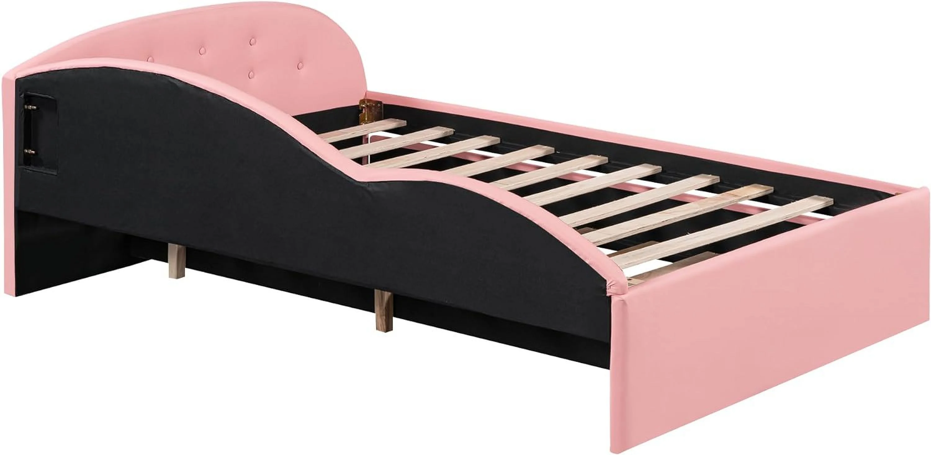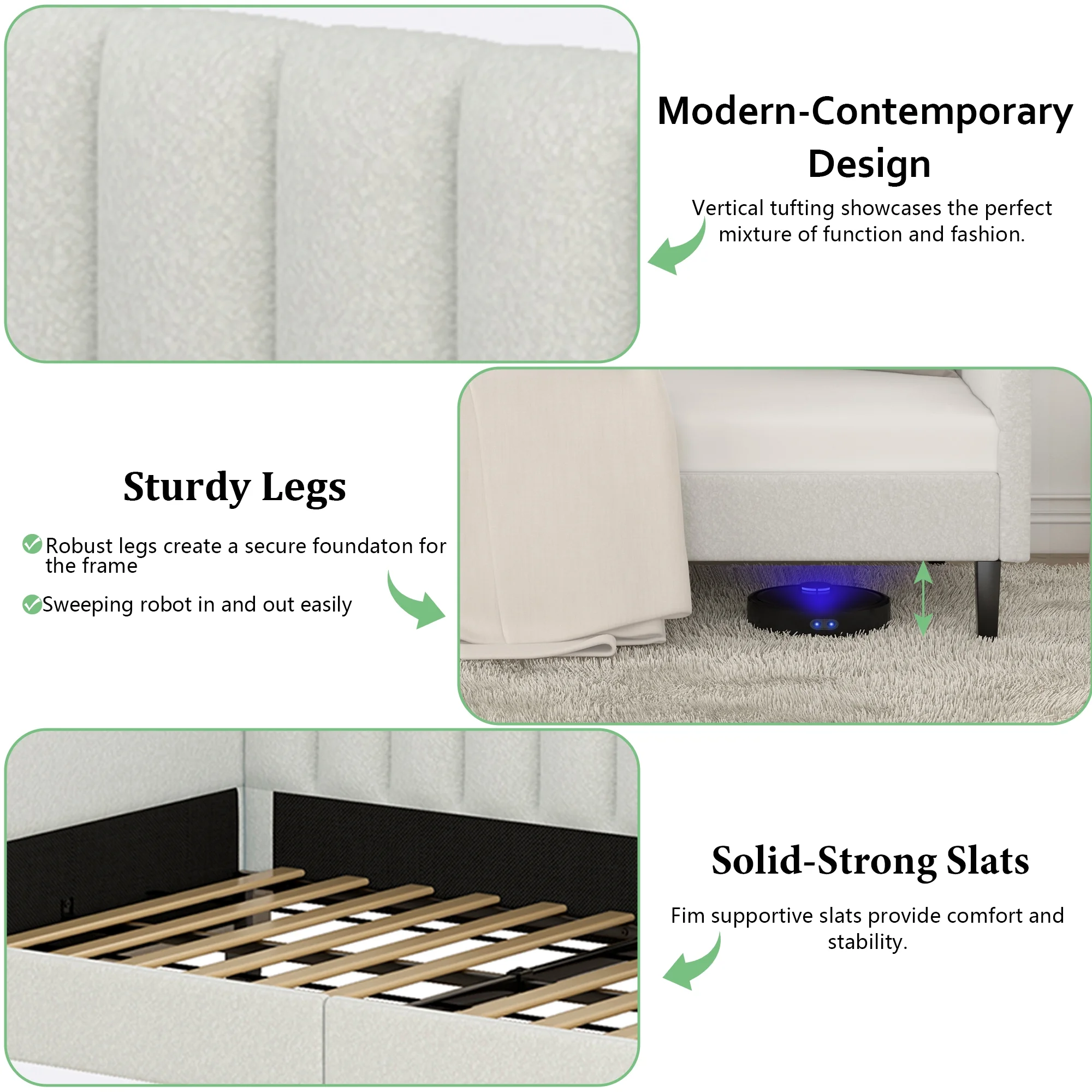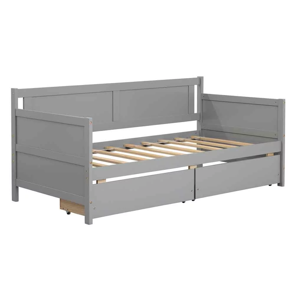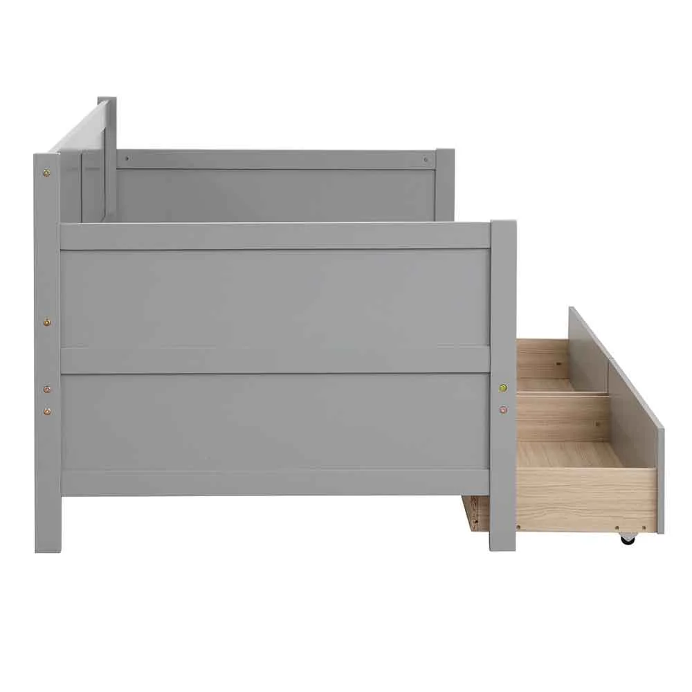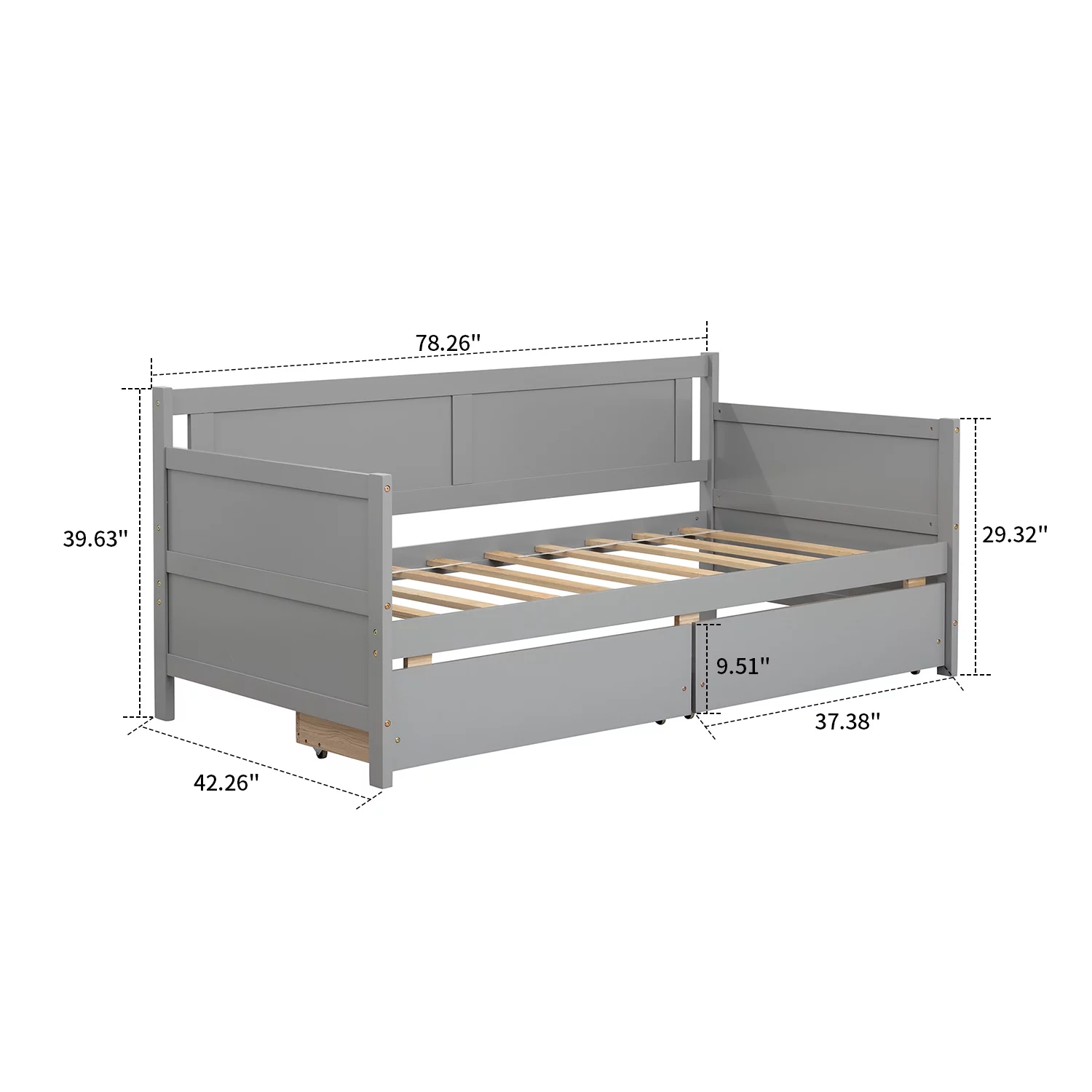 Modern Luxury Daybed with Button Tufted Upholstered Wingback and Tailored Piped Edges, Grey Twin