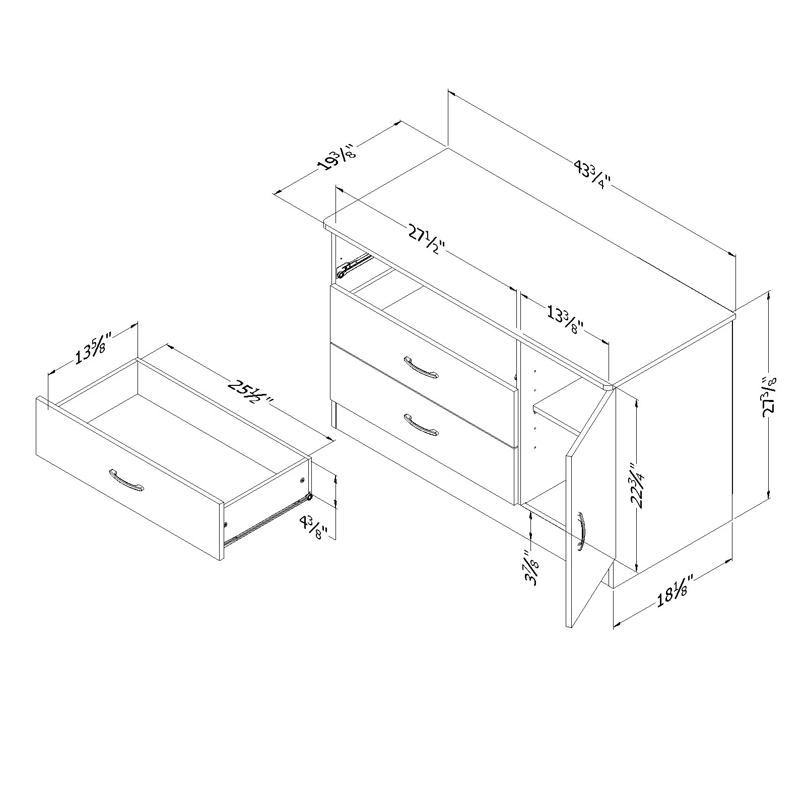 South Shore Smart Basics 3-Drawer Dresser with Door, Multiple Finishes