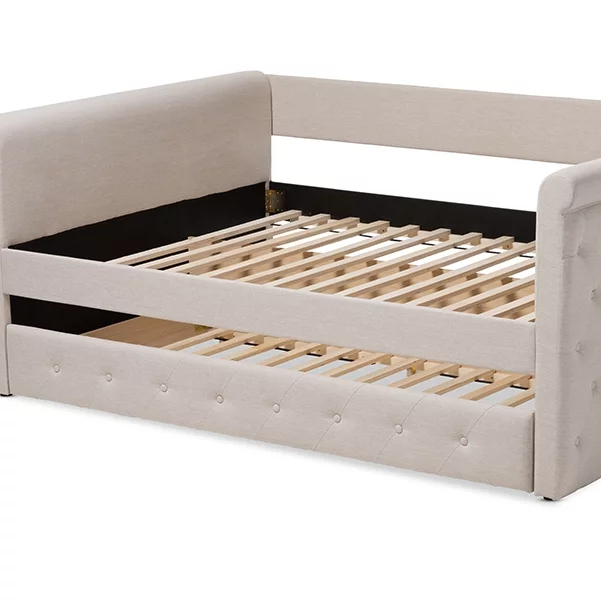 Baxton Studio Alena Modern and Contemporary Upholstered Daybed with Trundle, Multiple Sizes, Multiple Colors