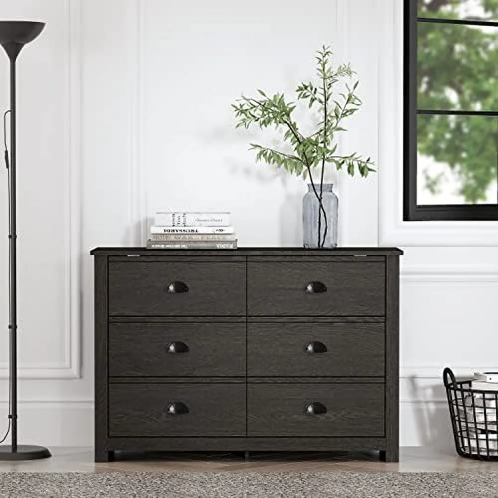 Pemberly Row Contemporary 6-drawer Farmhouse Wood Dresser in Barrel Oak