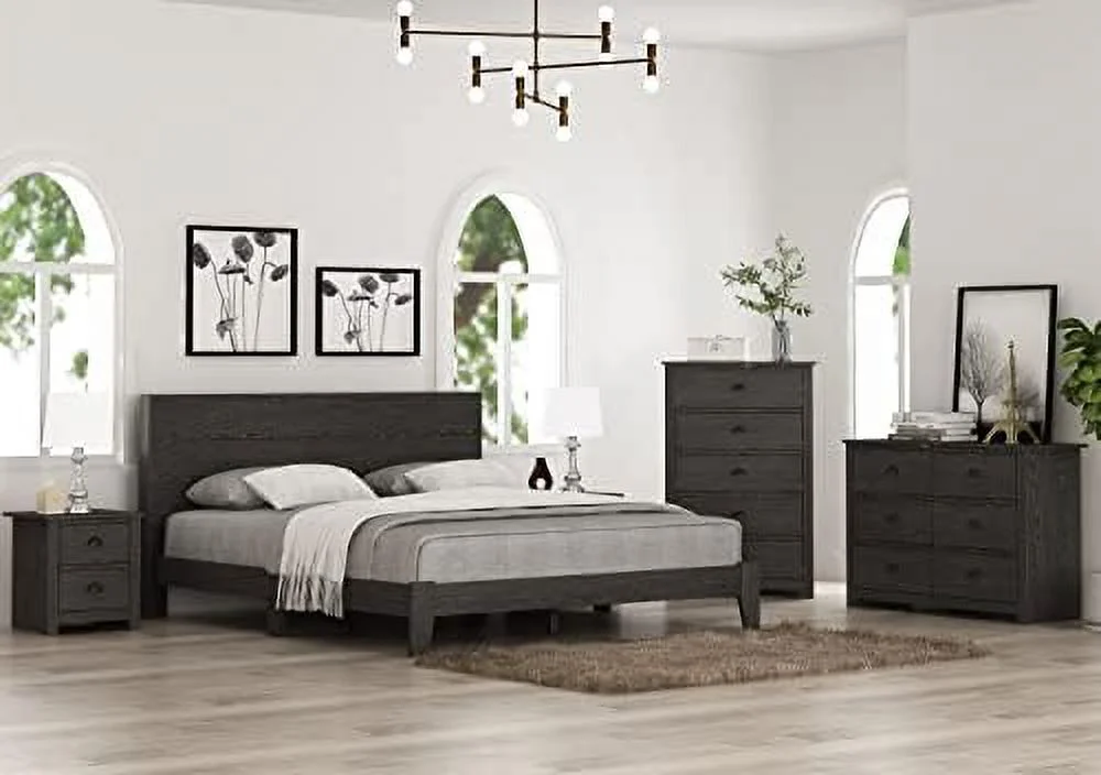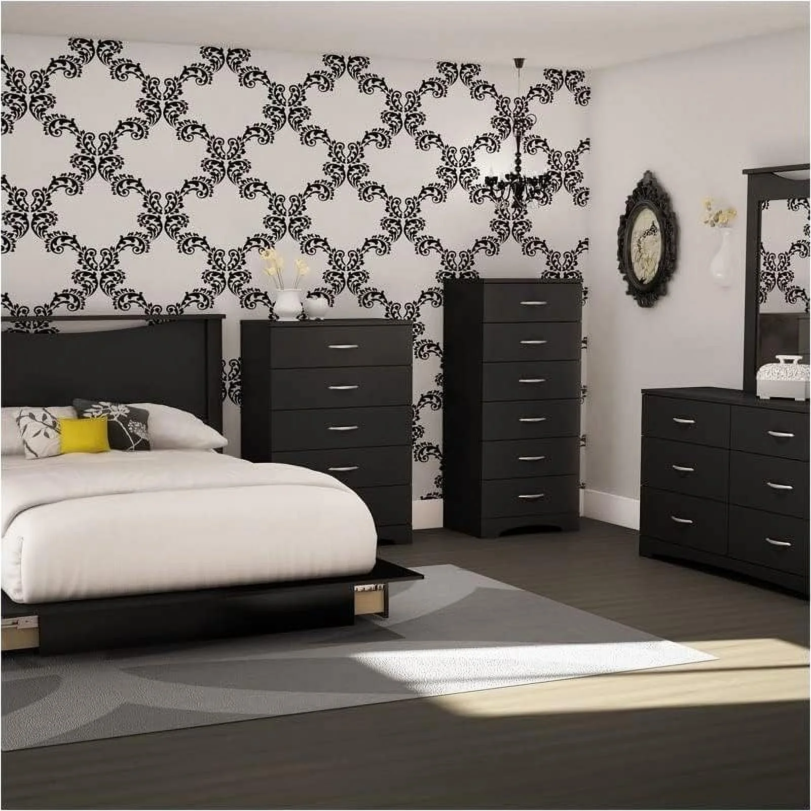 Pemberly Row Contemporary Wooden 56" Tall 5 Drawer Bedroom Chest Dresser in Black