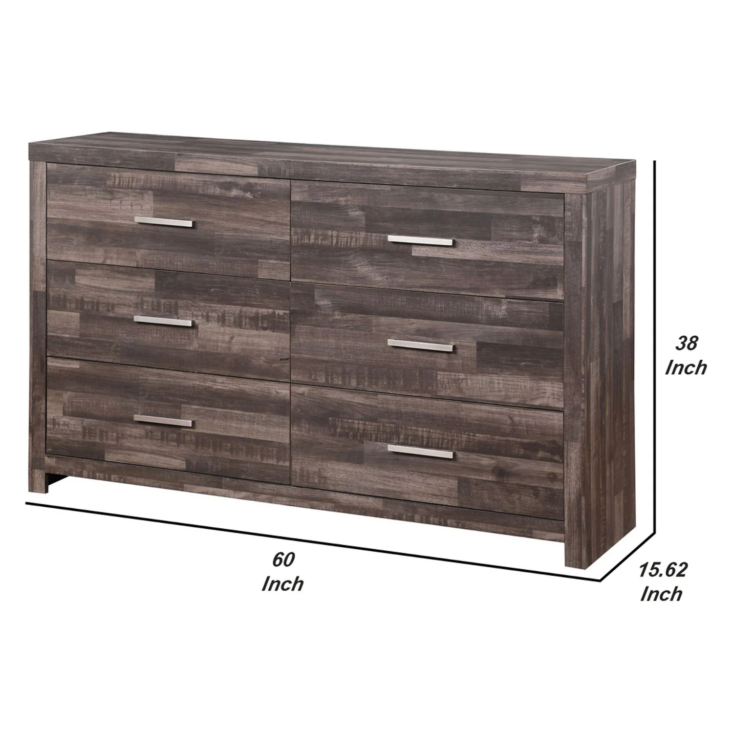 Benjara Dresser with Rough Hewn Saw Texture and Panel Base, Rustic Gray