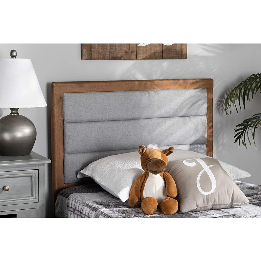 Baxton Studio Dexter Modern and Contemporary Light Grey Fabric and Walnut Brown Finished Twin Size Headboard,Wholesale