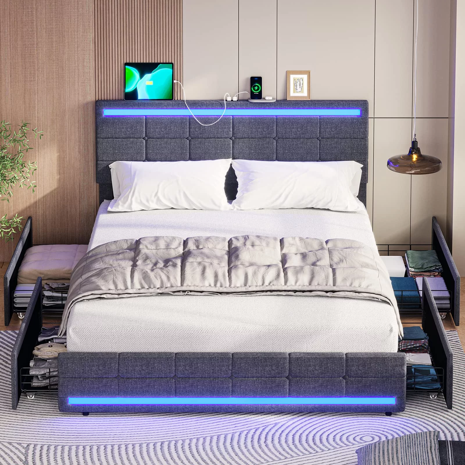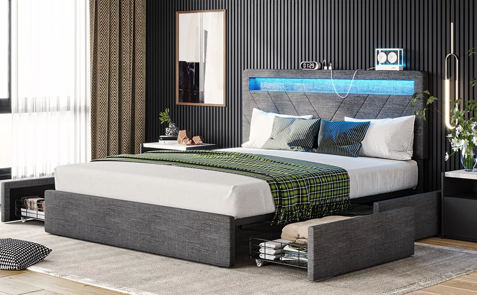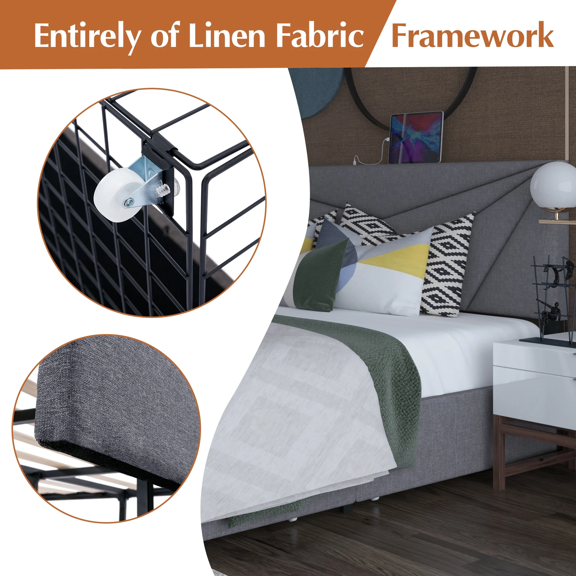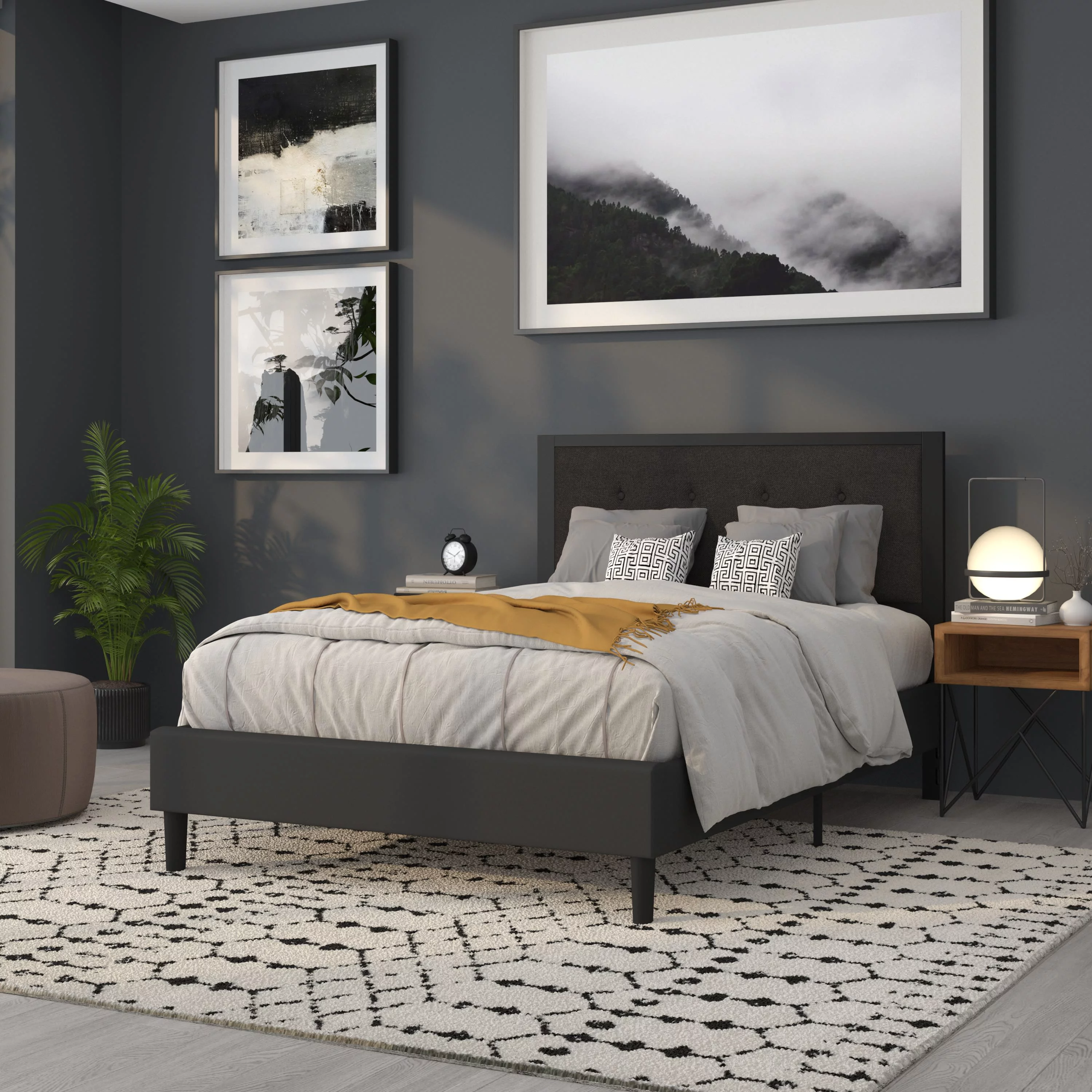 Baxton Studio Windsor Modern and Contemporary Dark Grey Fabric Upholstered Scalloped Buttoned Queen Size Headboard