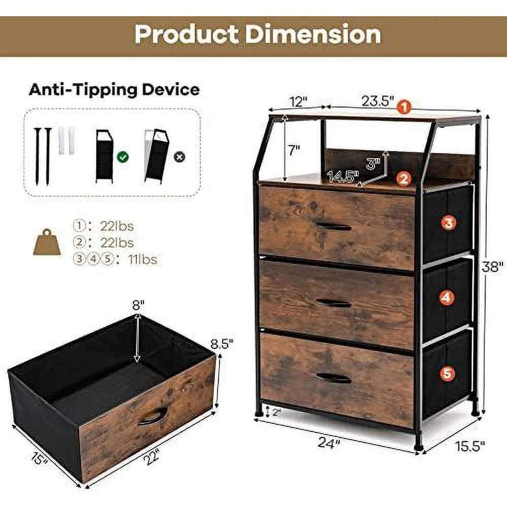 Home Elegance 1715-5 36 x 19 x 66 in. Holverson Dresser - Rustic Brown Milk Crate