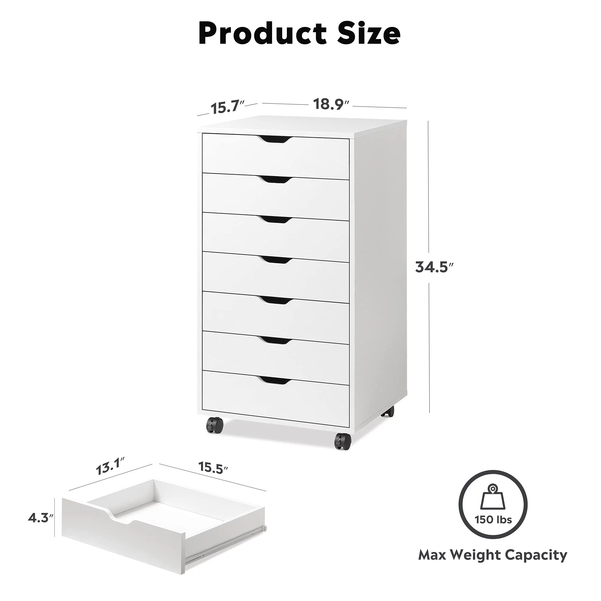 7 Drawer Dresser, Storage Cabinet for Makeup, Tall Chest of Drawers for Closet and Bedroom, White