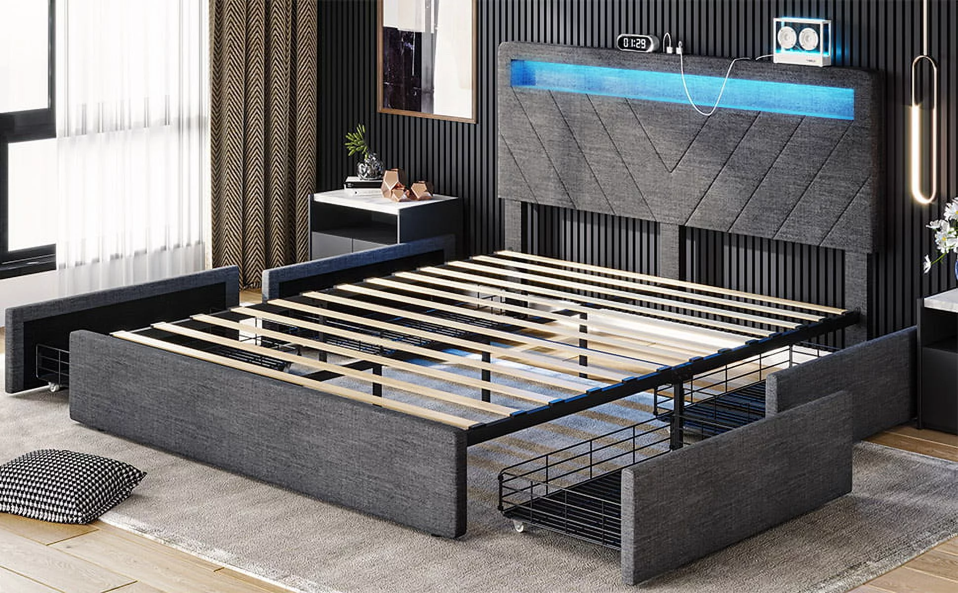 Baxton Studio Oren Contemporary/Modern Slat Back Support Engineered Wood Headboard, Queen, Ash Walnut