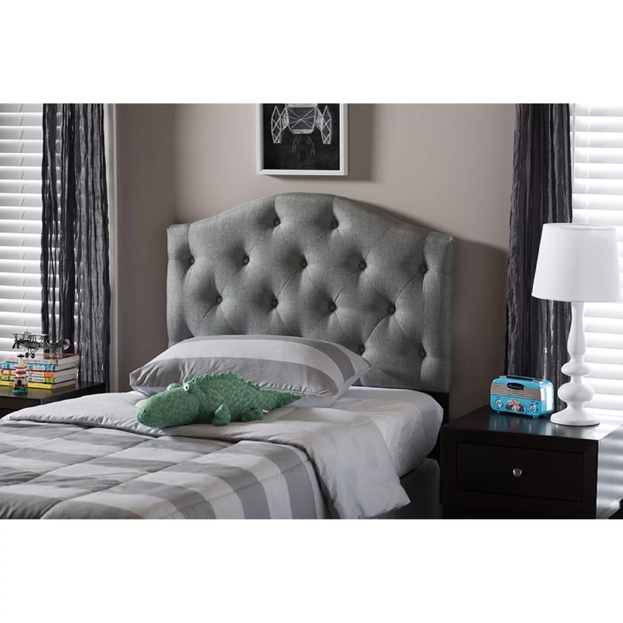 Baxton Studio Myra Modern and Contemporary Grey Fabric Upholstered Button-Tufted Scalloped Twin Size Headboard,Wholesale
